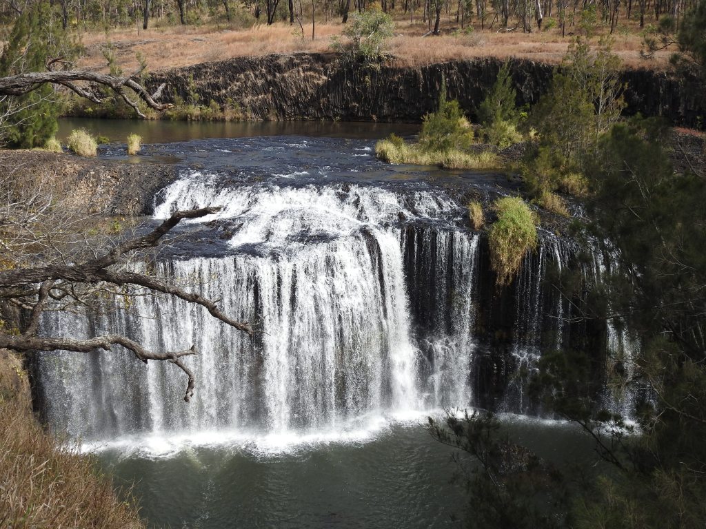 Enthused by these falls we decide to explore further & drive down to Ravenshoe, the highest town in Queensland at 930 metres above sea level. It is lunch time by now we stop into the Popular Café for a burger & coffee. Once again another giant burger that you can’t wrap your mouth around. They certainly know how to make great real old fashioned burgers in the outback, it’s a shame that in the cities they mainly have McDonalds & Hungry Jacks. The directions to Big Millstream Falls are not very clear & it takes us a few wrong turns before we find it. This has a very good inclined pathway down to a viewing platform and the falls are well worth the effort, they are magnificent as well. They are reputedly the widest single drop falls in Australia. The climb back out is a little taxing, we stop a few times to catch our breath.