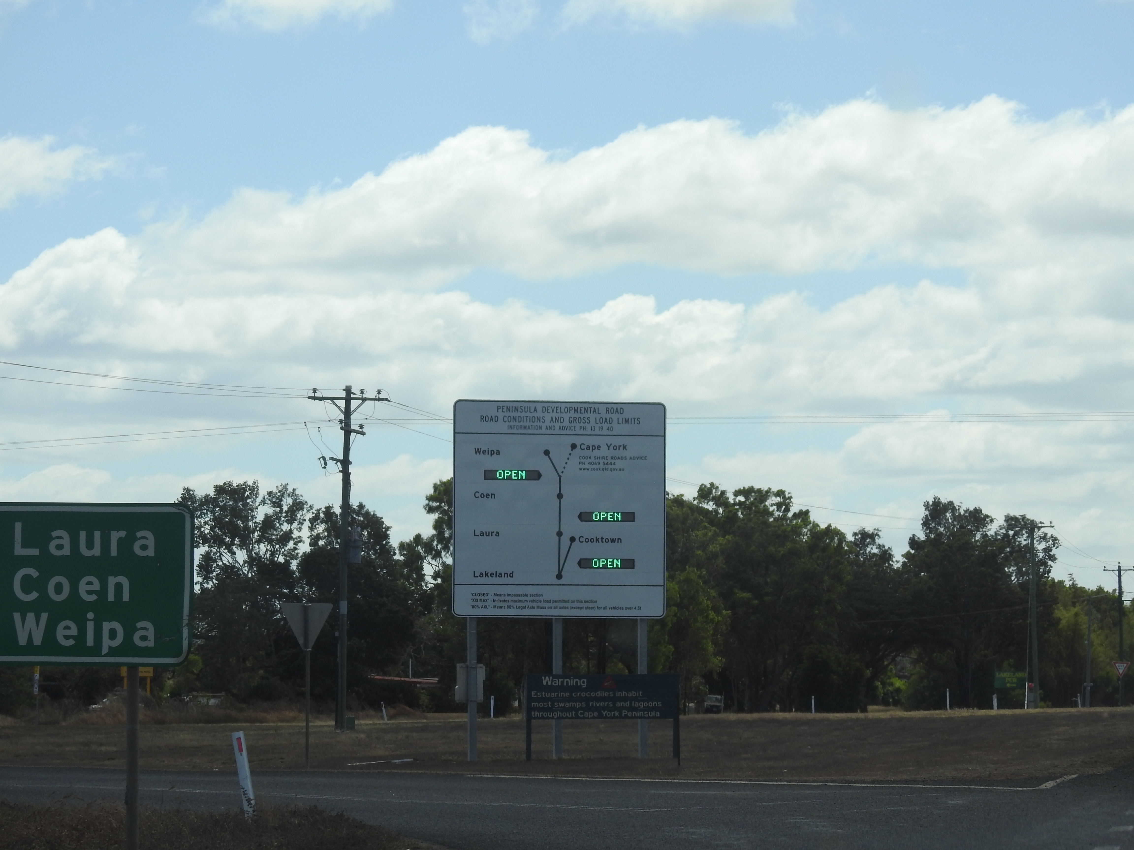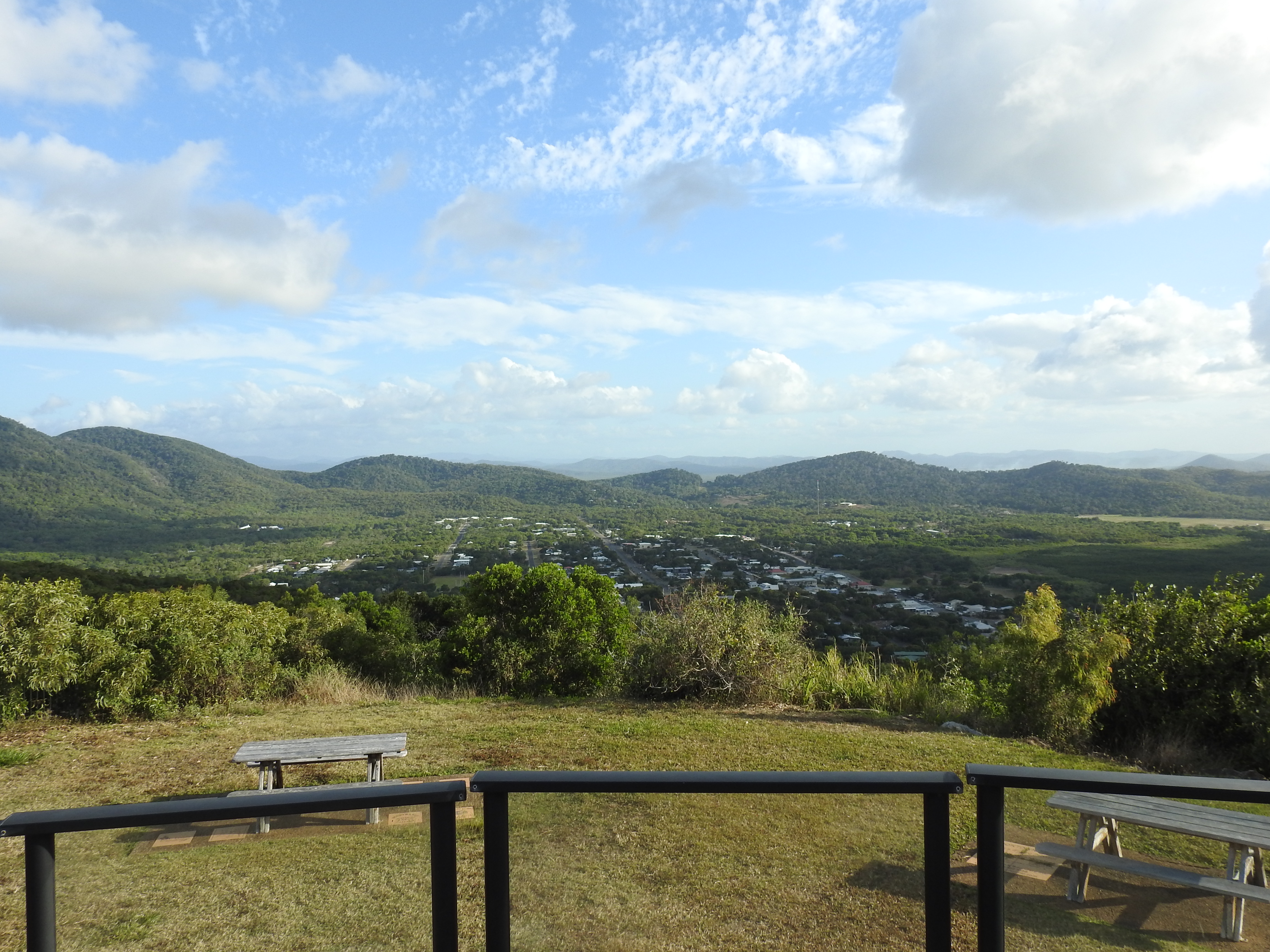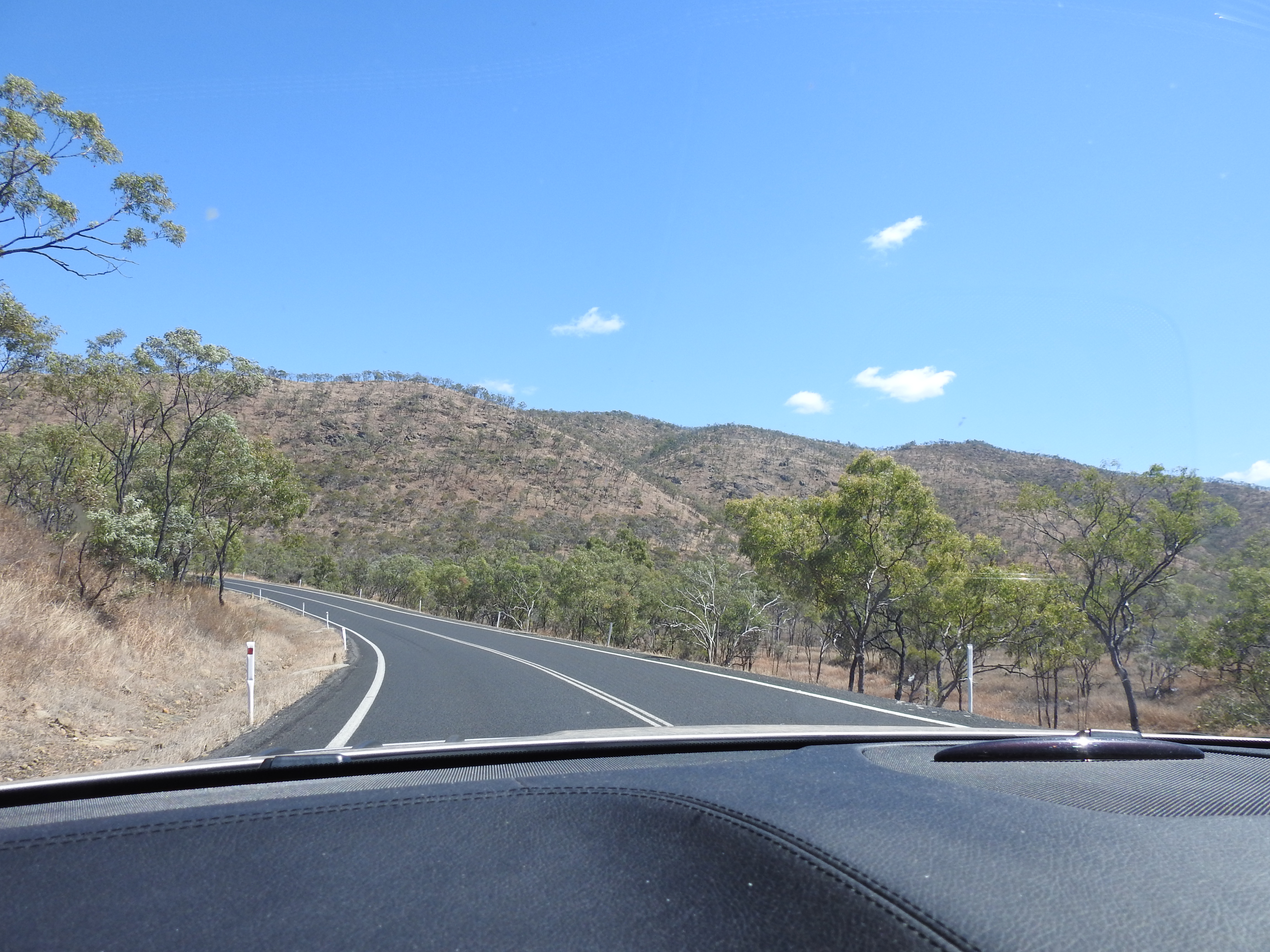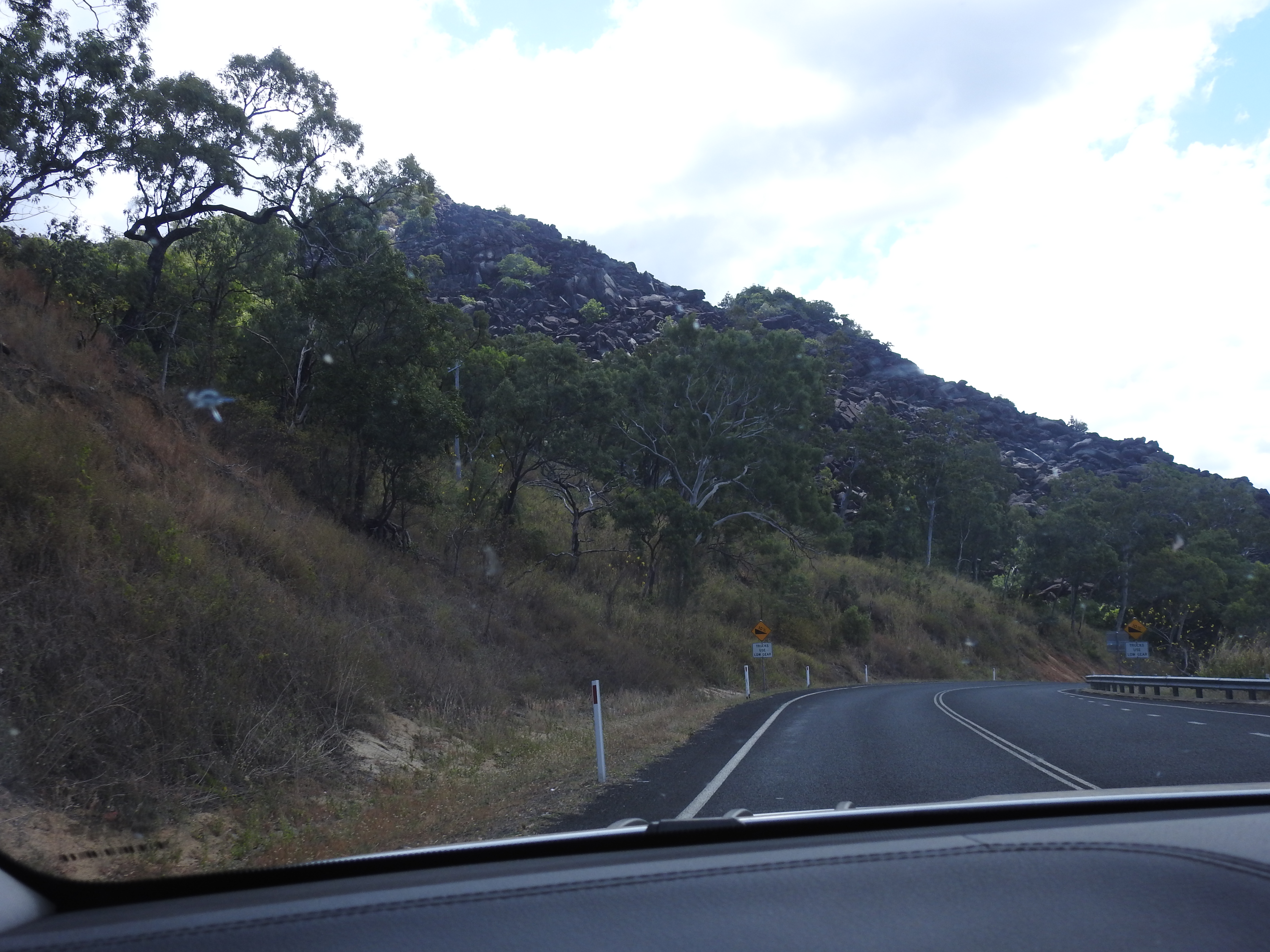 We got away a bit after 9am & wound our way out of Malanda & through Atherton on the road towards Cooktown. North of Atherton there was a lot of roadworks so we travelled at 60km/hr or 80 km/hr for a long time. There are lots of banana & mango plantations and these get less as we get to Mareeba. The countryside changes from rainforest to dryland savanna again and we see lots of red dirt covered cars and caravans coming south. A lot of these have been on the road from Cape York. There is a lot of long straight road & we pass a large dam before we get into the mountains & spend a lot of time climbing & winding our way up & down again. We pass the turn-off to Cape York & the oncoming traffic lessens noticeably.