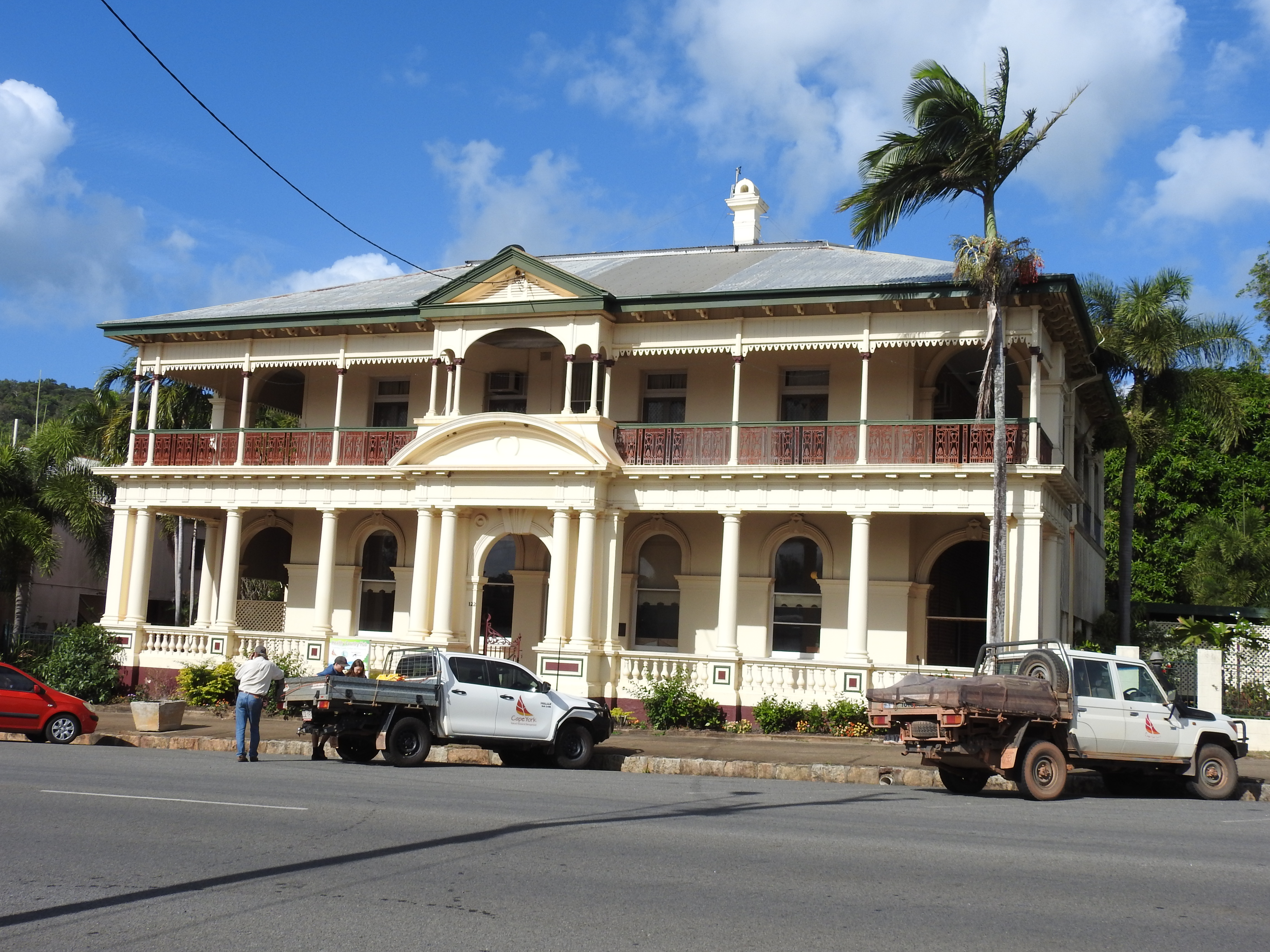 We started with a walk down the length of the main street, stopping at a few shops & enjoying the ambience. There are some very nice old buildings in Cooktown reflecting the wealth of the gold-rush days. Walking back I stopped into the local garage & bought some Ad-Blue to top up the tank in the car, it is used as an anti-pollution additive. Next we drove to the lookout & lighthouse on the top of Grassy Hill, the spot that James Cook walked to after his ship, the Endeavour, was beached in the river for repairs more than 250 years ago. It was so windy on top of this hill, the views are amazing though. A couple up there for the sunset had their dinner blown off the table.