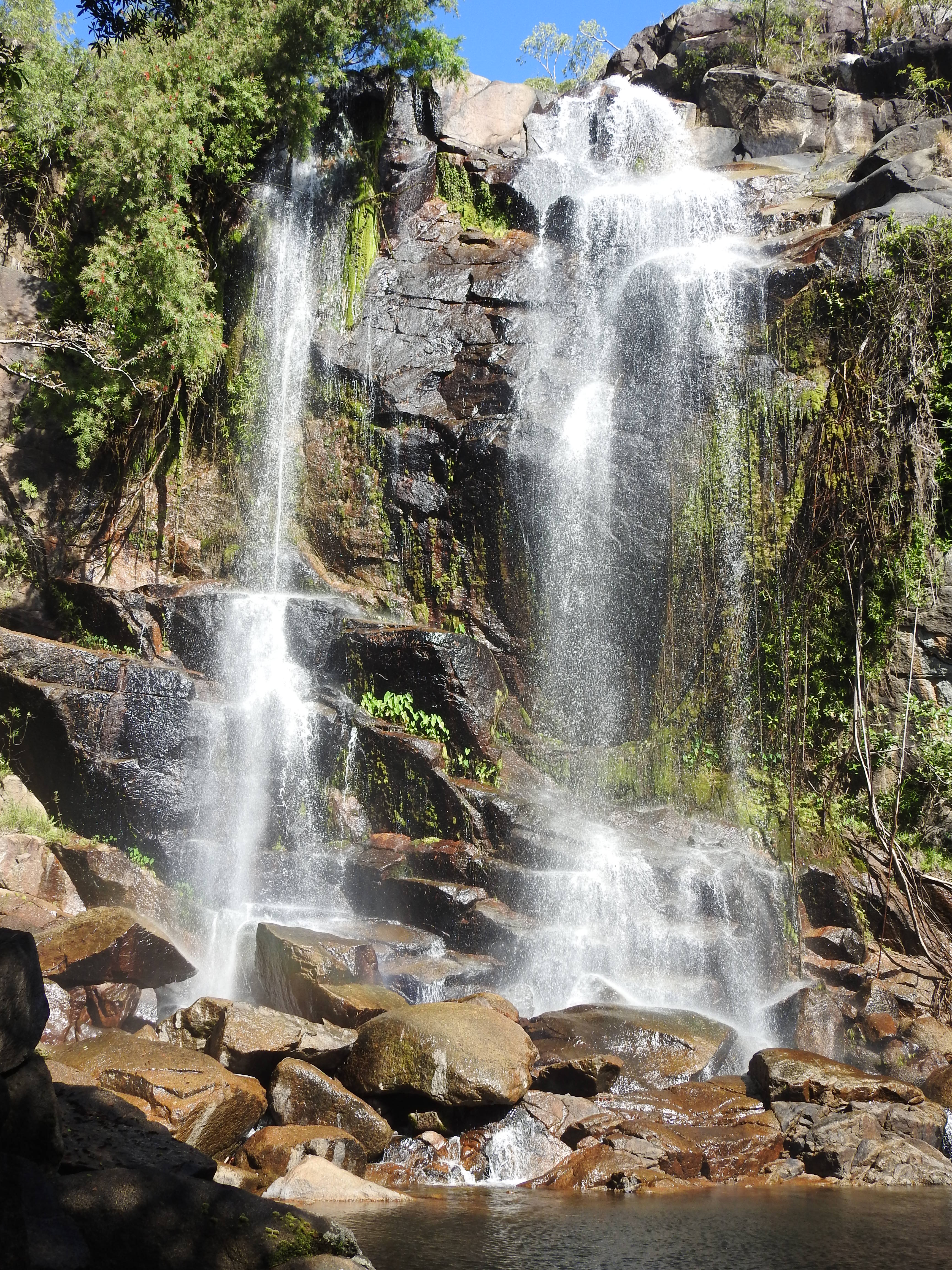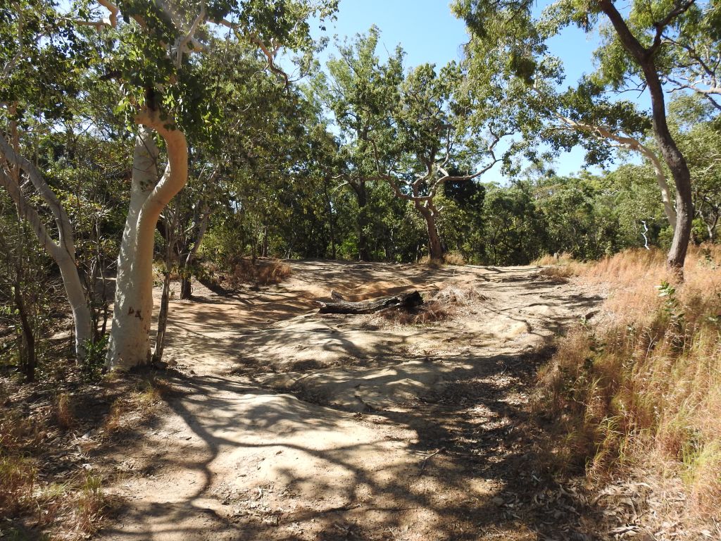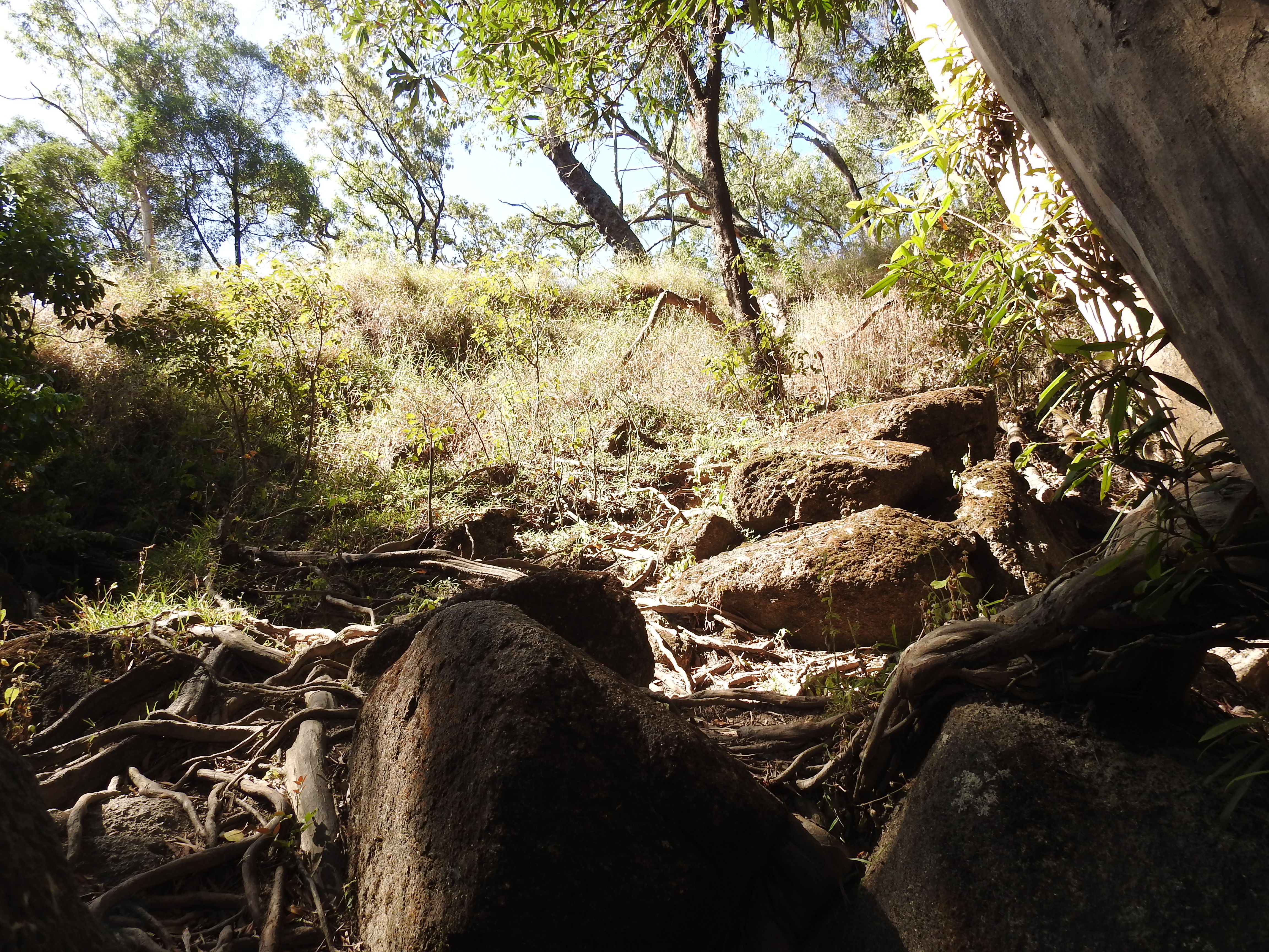 Next was an adventure out to see Trevethan Falls, named after a forebear of one of our good friends in Canberra, Mike Trevethan. The nearby rock covered mountains are covered with Trevethan granite. The turn-off is a bit south of Cooktown & the dirt road is good for around 10km, before we turn off at a hand-painted sign & down a dirt road that gets worse. After the next turn the road gets worse again then becomes a rough track winding through the bush, with exposed tree roots & rocks & ruts & hollows. We stop as the track starts heading up hill & gets even worse again. As we walk the last 200 metres we are glad we stopped where we did. The track gets really bad & then the walking track up to the falls is very bad & rough. The Trevethan Falls are worth it though, stunning & dropping into a deep pool, surrounded only by nature. The walk out is just as bad & the road was no better.