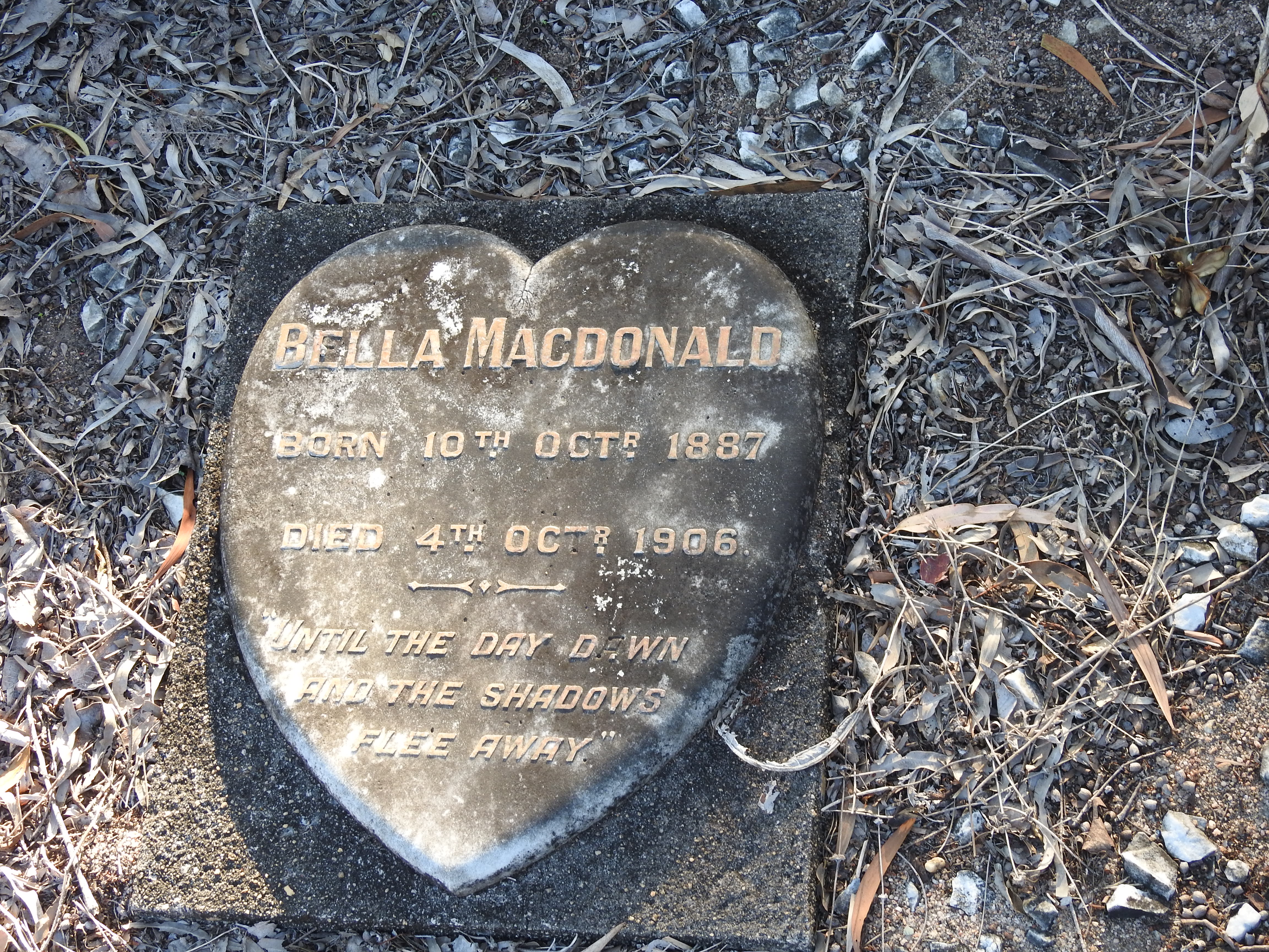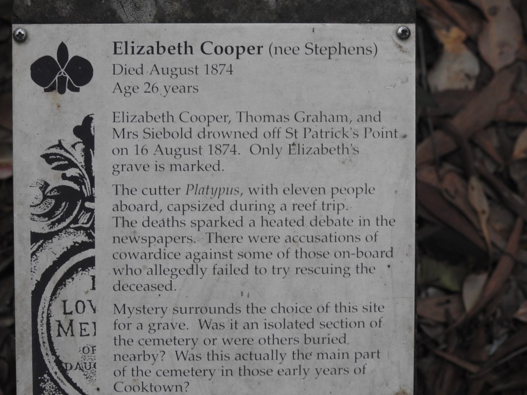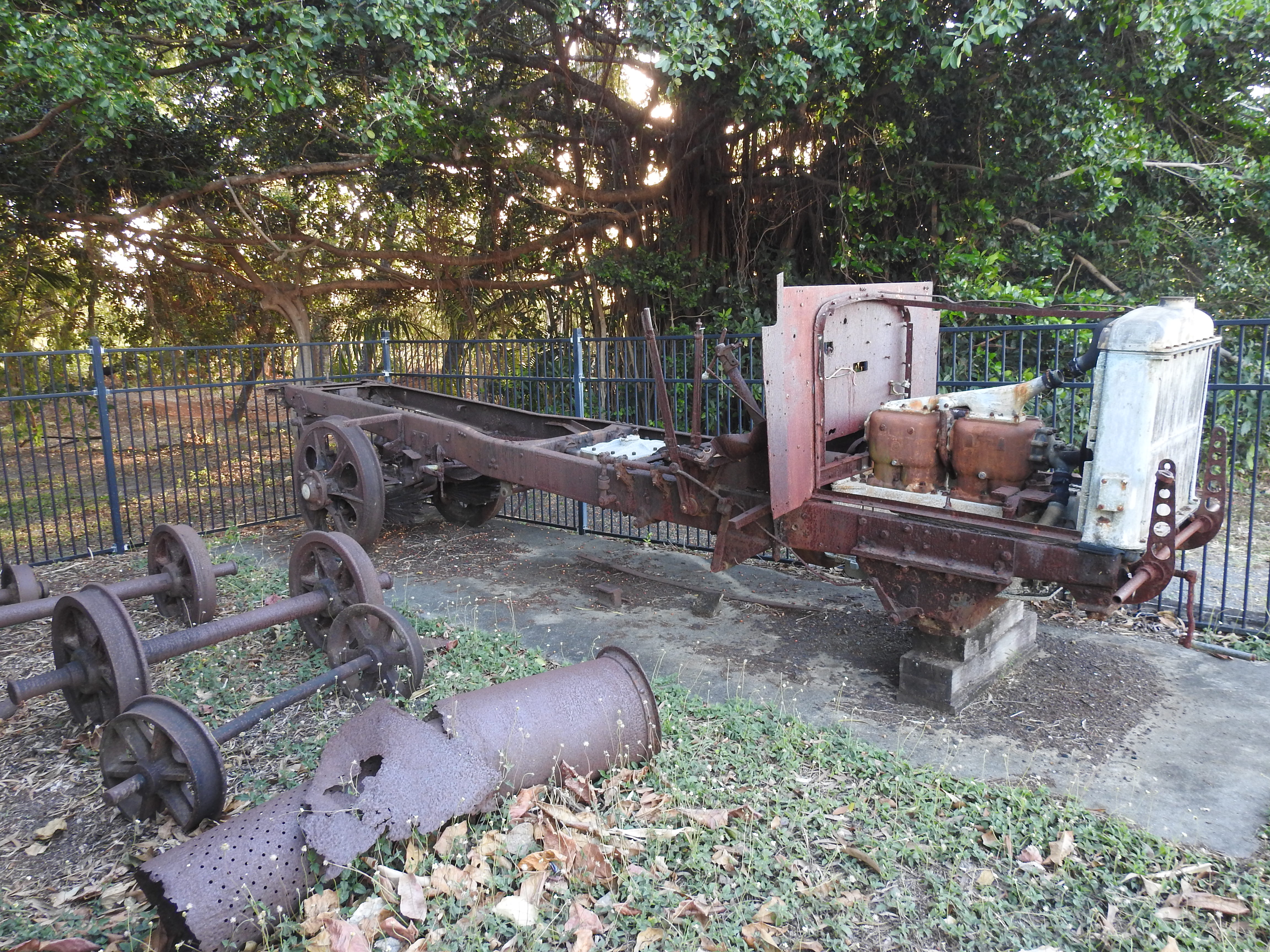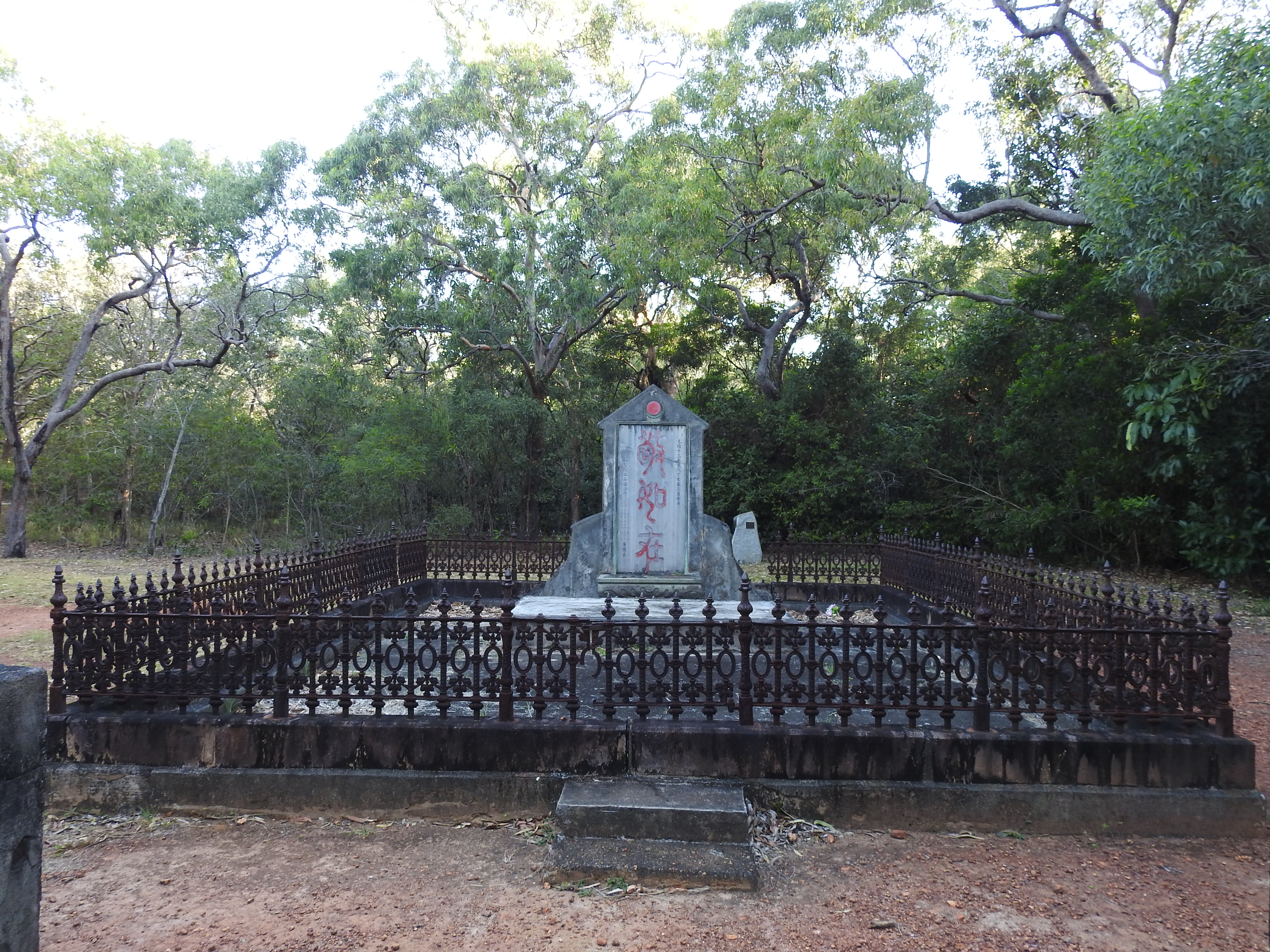 Back at camp we decided to walk to the old cemetery along the old railway track to Laura. We passed where the old railway yards where & saw the ruins of the old yards plus the wreck of the old rail motor car. An elderly couple were working on keeping the old bits & pieces in some sort of order. The walk along the old railway track is very pleasant with mangroves on either side before we branch off across the mudflats then through the trees to the old cemetery. We look at some of the old headstones then walk the track down to the old Chinese shrine, separate to the other cemetery. There is a lone grave a little further on of a woman that died out to sea just off Cooktown. The walk back is just as pleasant & we are tired when we get back to our van.