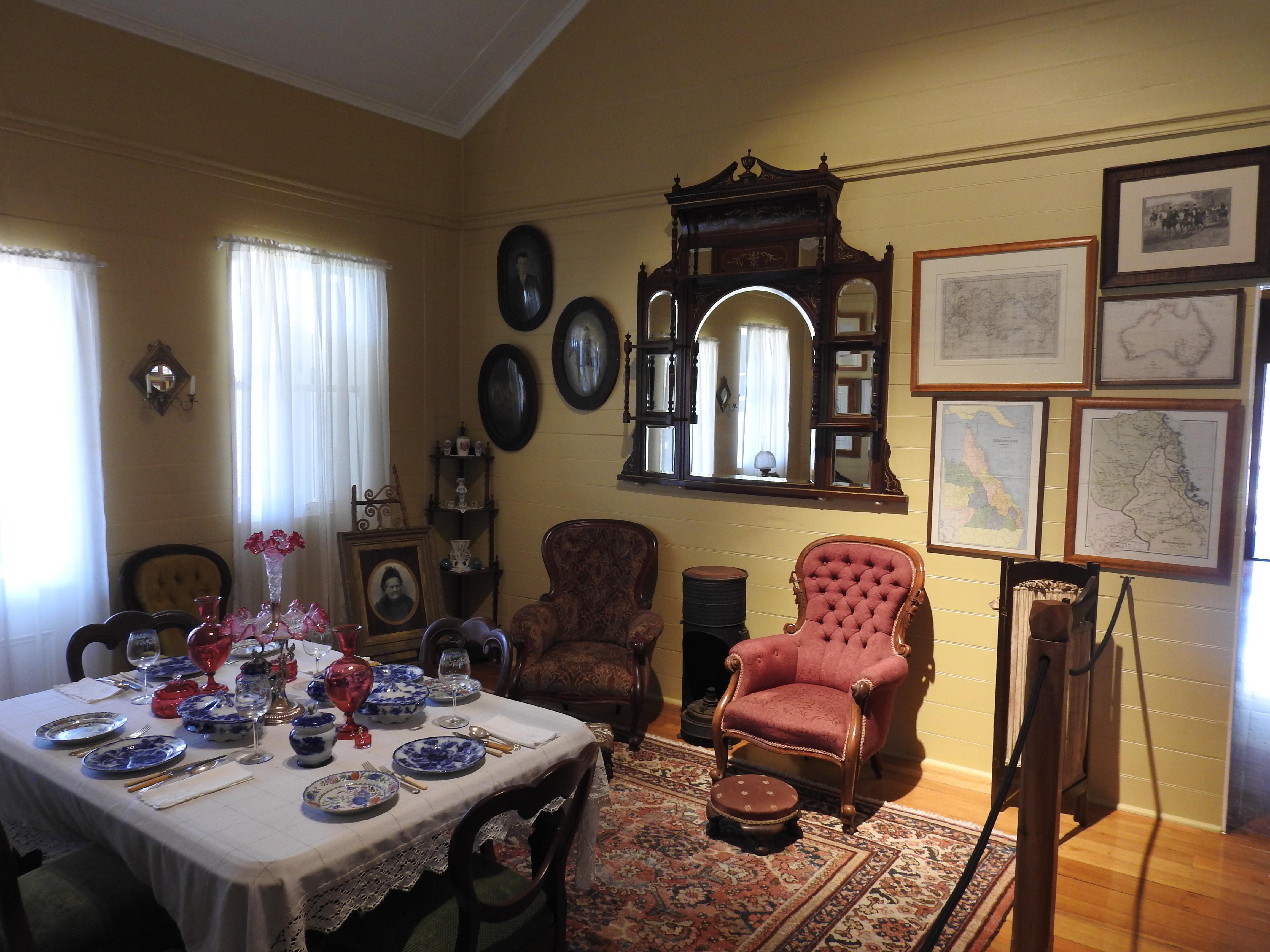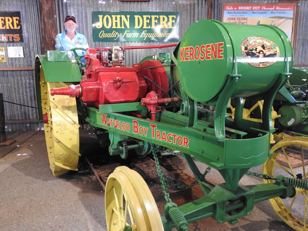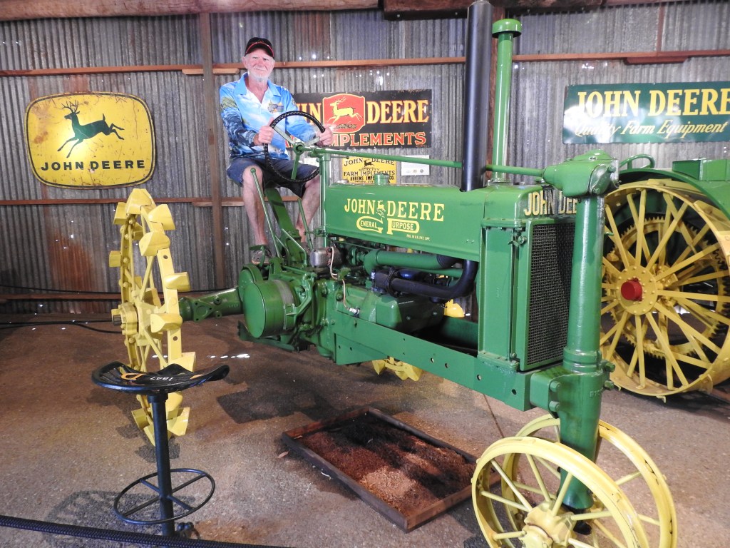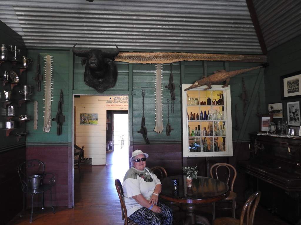 On our drive to Herberton we spot a fire on top of a small volcanic hill sending plumes of smoke into the sky. The Herberton Historic Village is an amazing place, we spend around four hours exploring the 16 acres of buildings & relics & that is not enough, we missed some of the displays. There are over 60 buildings (we really tried hard to see most of them), many have been moved from old towns or rural properties & relocated here. Even an old sawmill has been relocated to here. The display of fully restored & running John Deere tractors is amazing, the sound is unbelievably loud. The displays of relics & items in common use from the 1800s & early 1900s is amazingly comprehensive, there are lots of items I can remember from my grandparent’s farms and houses. Also very many items I have never seen before. Some items I can only guess at what they may have been used for. It truly is an extraordinary place to visit & we wished we had more time. We had to leave because we had to get to our appointment with our KKOG group for supper. This village is all museum, the only place that is used for eating/drinking is the old Bakerville pub (relocated to here) and set up as a museum showpiece where we enjoyed a vegetarian lunch. There are not many people visiting this museum at all, we can only imagine how busy it must have been pre-covid as it is such an extraordinary place.