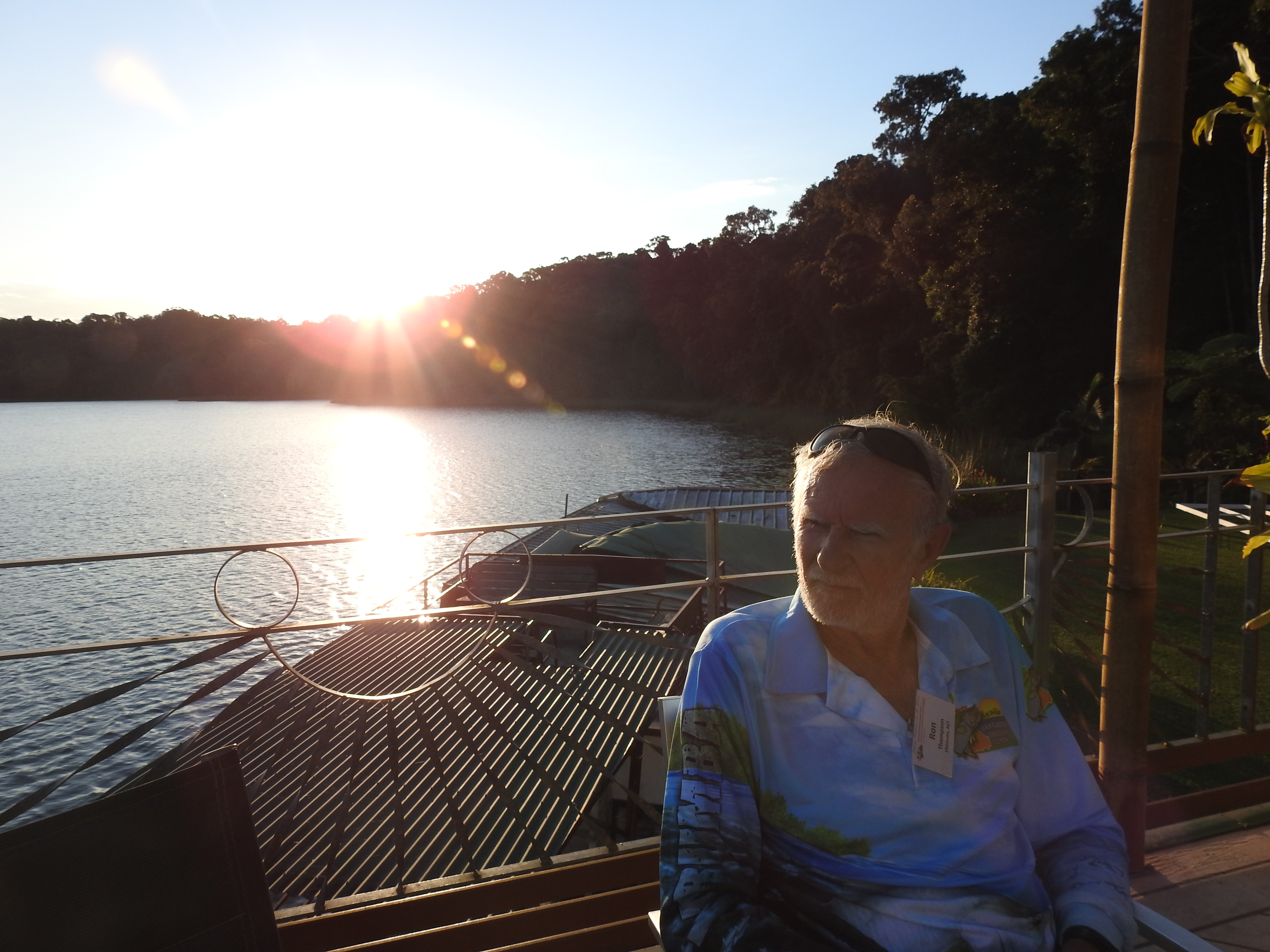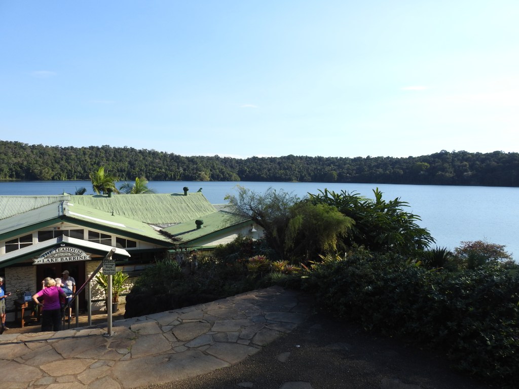 On the drive to Lake Barrine we drive past two small fires, both cleaning up rubbish in farm paddocks. Lake Barrine is a perched crater lake on the road to Cairns from Yungaburra & the Tea House on the shore was our destination this afternoon for supper with the KKOG crowd. We sat on the deck & sipped on home-made Kombucha that was very tasty and chatted to others in the group. The finger food was also tasty along with the local cheese selection. The very proud owner Steve Curry told us the story with lots of photographs about how this establishment has survived 4 generations (he has some children who are keen to keep this wonderful place going). We watched the sun set over the lake before heading back to camp. Another great day to be alive.