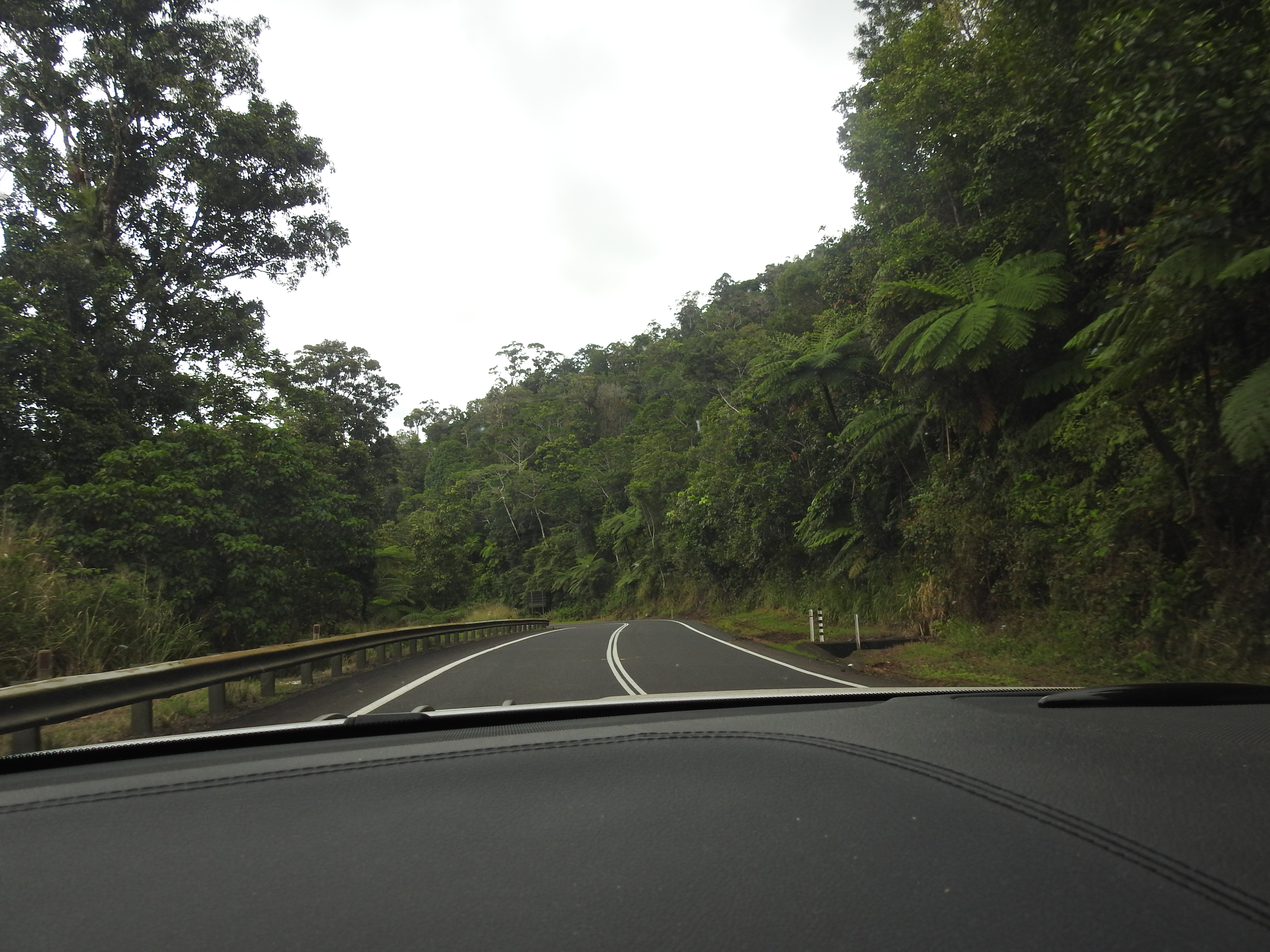We get away around 10.30 am & drive back through Yungaburra, then Malanda & Millaa Millaa before turning towards the coast. The scenery is very green with lots of rolling green hills and farms. Beautiful. The descent down the coastal range off the Atherton Tablelands we take slowly and carefully, there are lots of bends & long drop-offs over the edge. At the bottom of the range we come across one of the KKOG members that left before us, he is on the side of the road with wheel studs torn off the hub, with the passenger side wheel on the ground. He has another KKOG van stopped with him so we keep on driving as it is a dangerous place to stop and there are two cars very close behind me.
