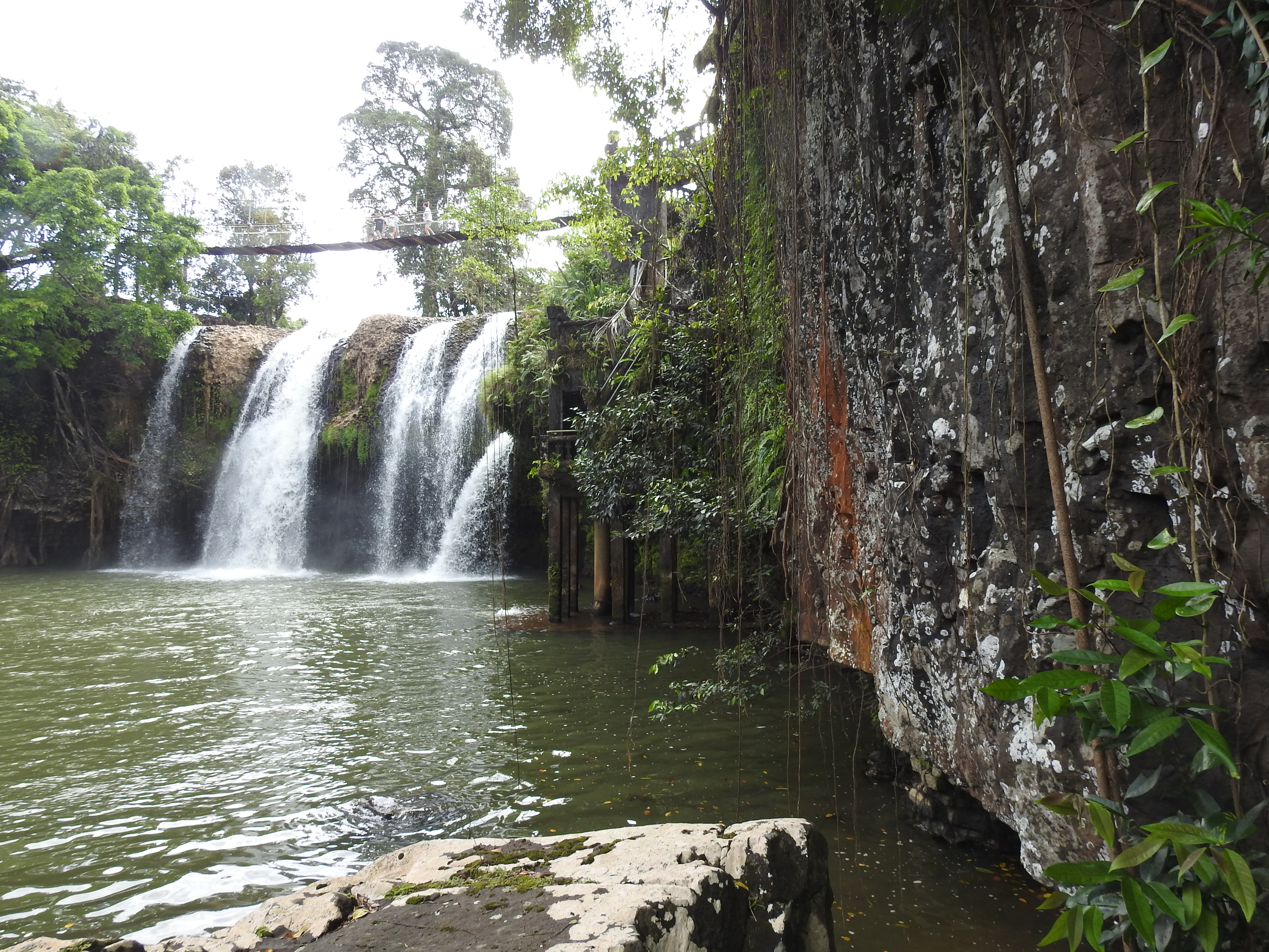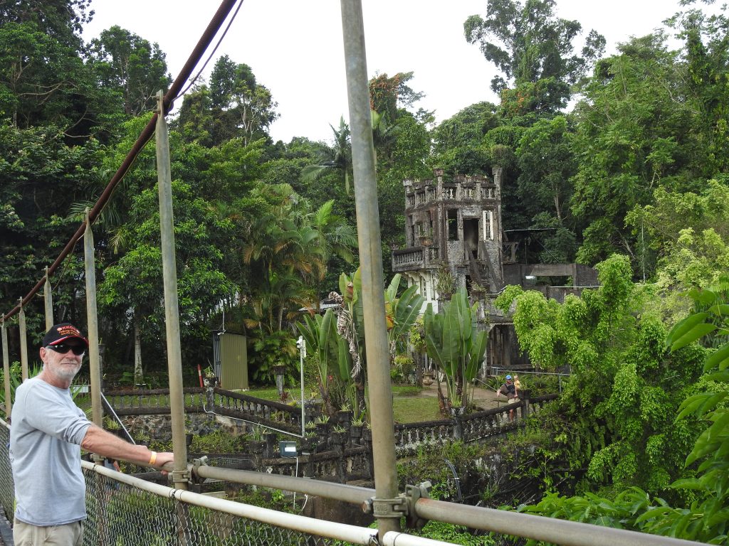 We start our day tour within 15 minutes and our eyes are opened by this amazing story. Paronella Park was built below Mena Creek Falls by a Spanish migrant called Jose Paronella as a way to make money from hospitality. He built impressive buildings in the Spanish style with balustrades and crenelated walls. They provided food & entertained paying guests. He built swimming pools, gardens & walkways plus the very first hydro-electric power station in Queensland to provide power for his enterprise. Floods & cyclones severely damaged the buildings and gardens over the years & after Jose died the family continued on for a while before selling. The site was abandoned before being found & resurrected as a tourist destination. The current owners have done a great job of restoring the gardens, preserving the remaining building structures & restoring the hydro-electric system which provides power for the whole site plus some other buildings in town. We enjoyed the story and seeing the property & imagining how it must once have been. One man’s dream is in sad decay, but still kept alive by clever present day owners with Jose’s story.