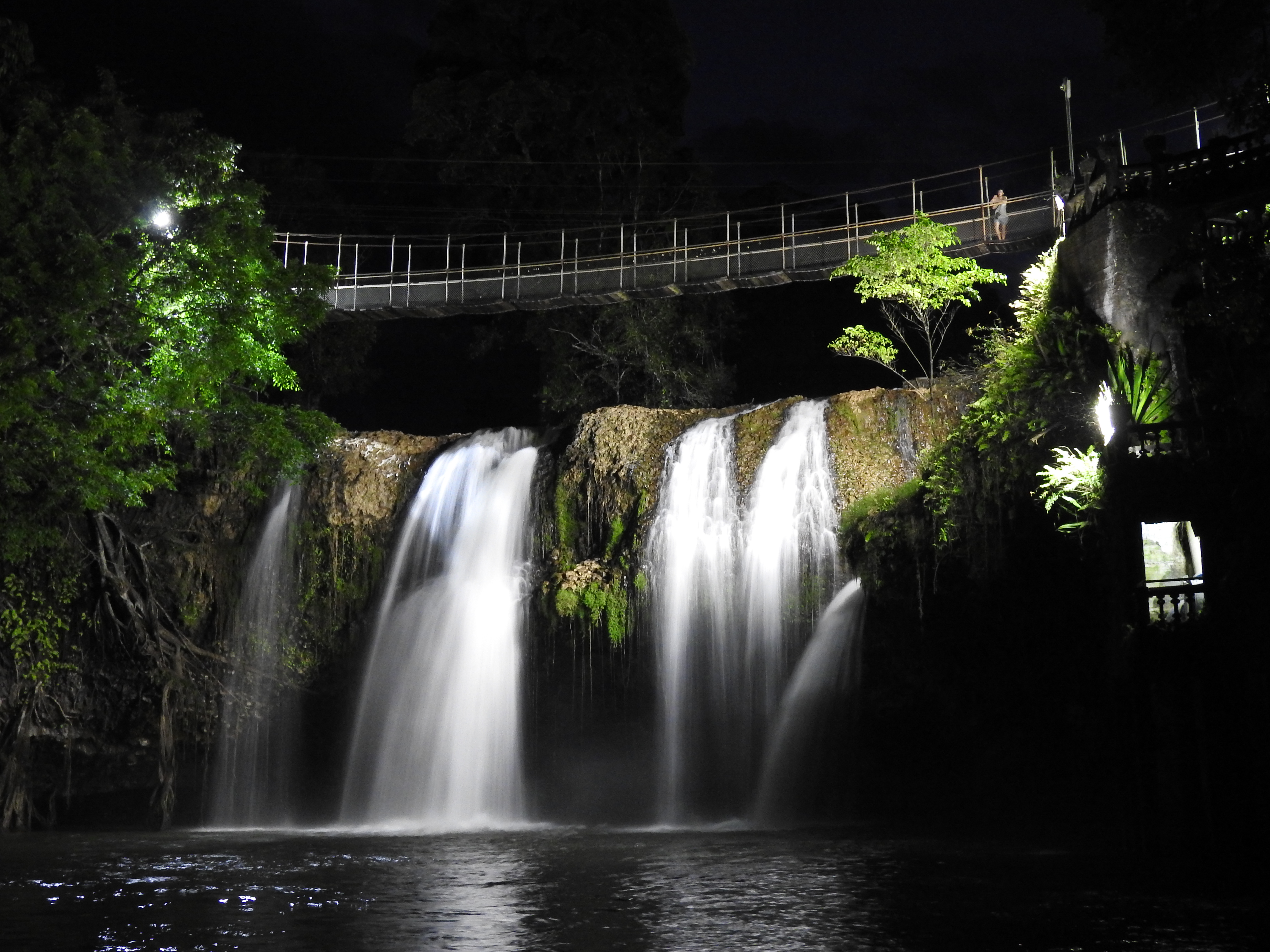 After dinner we were back at Paronella Park at 6.15pm for the night tour. This tour is so different, with the grand ballroom lit up as well as Mena Creek Falls, they look even better at night under lights. After this we are taken to the old tennis courts and look back at the old dining room that has lighting showing off the old building to great effect. We listen to classical music especially written for Paronella Park and watch a great light show that is timed & themed with the music. It is very good & finishes too soon. Another great day.