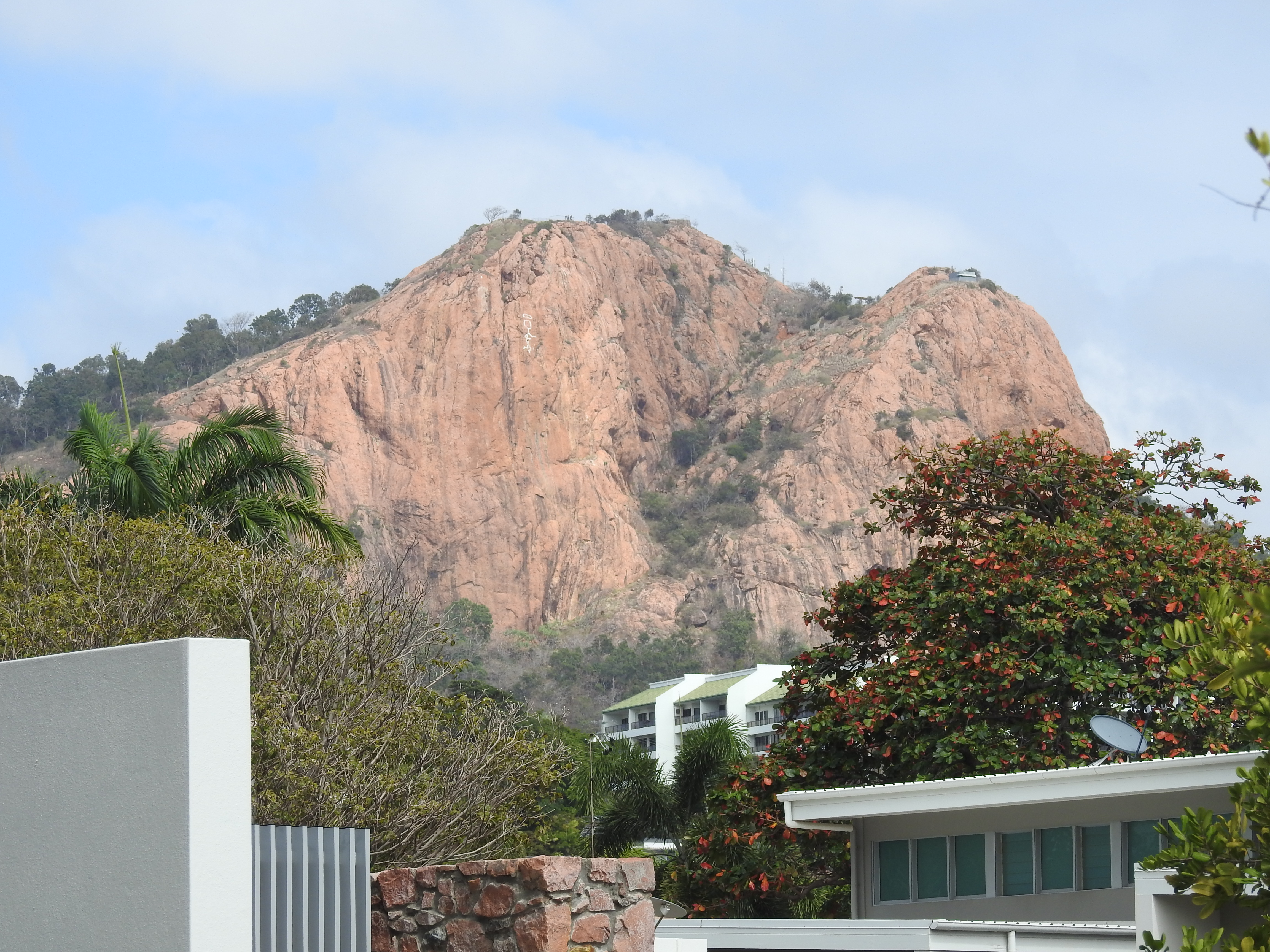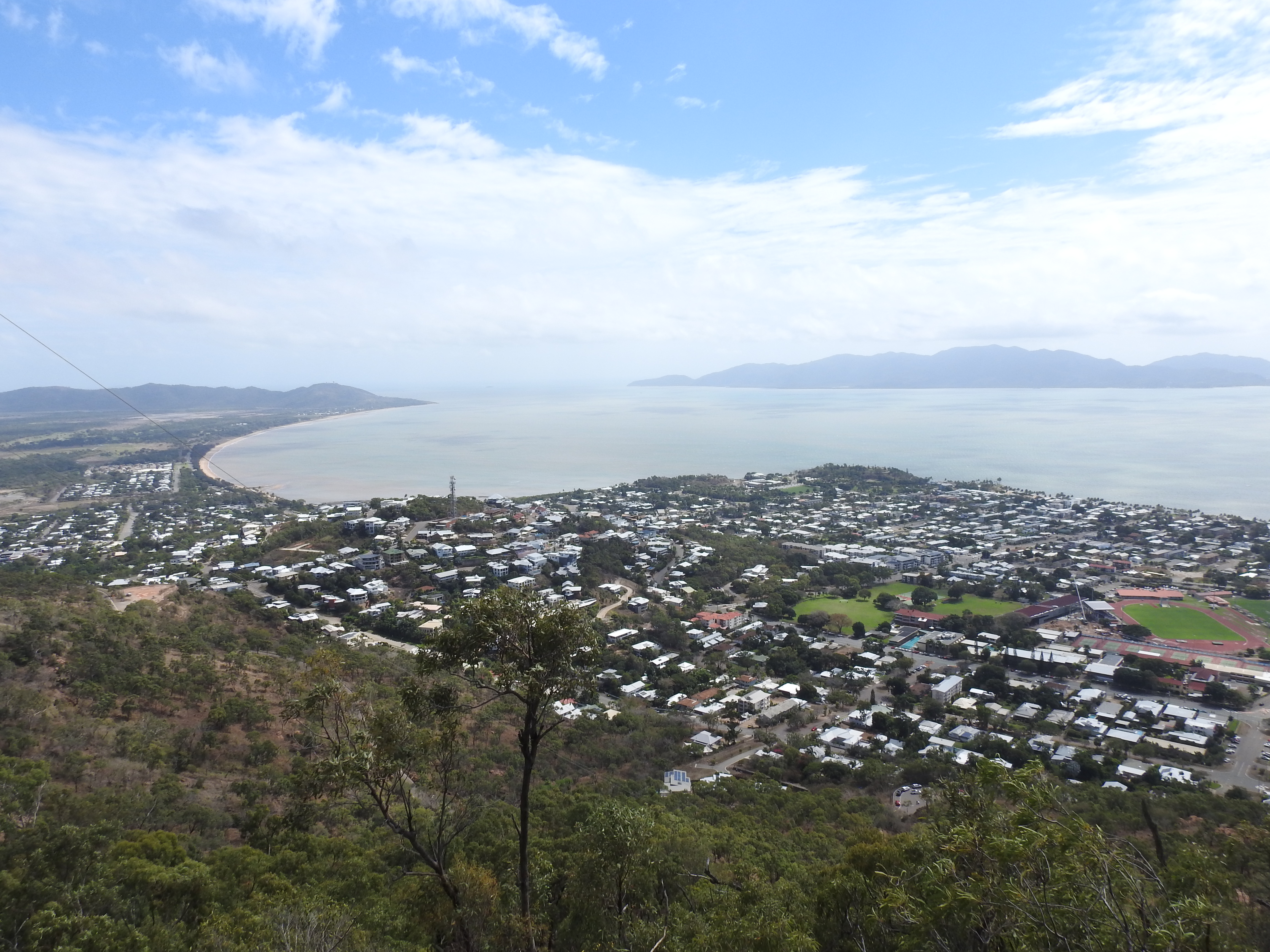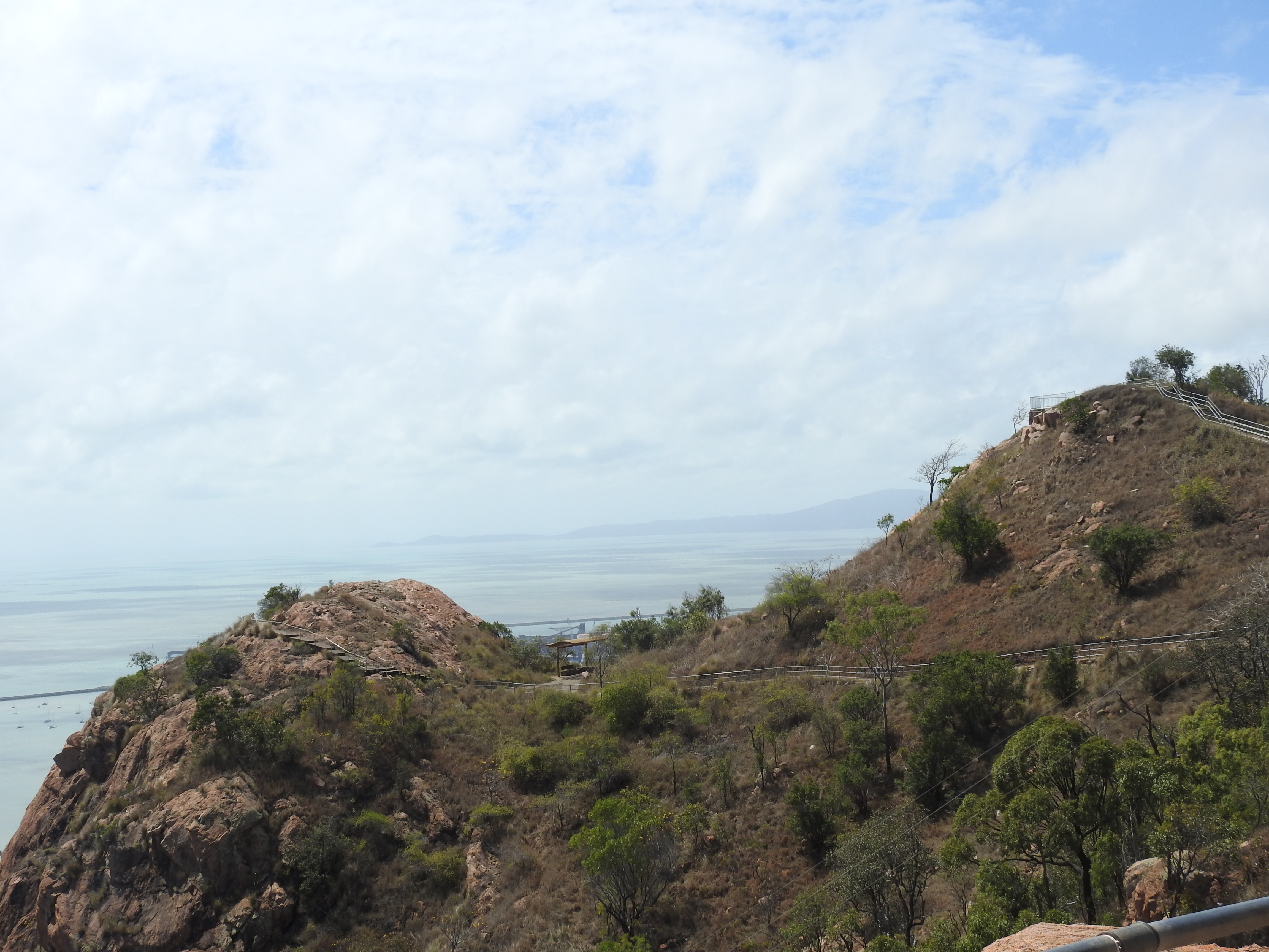 The walk back to the car is pleasant & our friends drive us up to Castle Rock, a prominent very large hill overlooking Townsville. The road up is steep & windy, however, that does not deter lots of people walking, jogging & cycling up the hill, even some women pushing prams. At the top the view is magnificent out over the Coral Sea & Magnetic Island with Townsville stretching off into the distance in all directions. Townsville has grown to be a large & vibrant city. The wind at the top is very strong & cools us down nicely, threatening to blow our hats off.