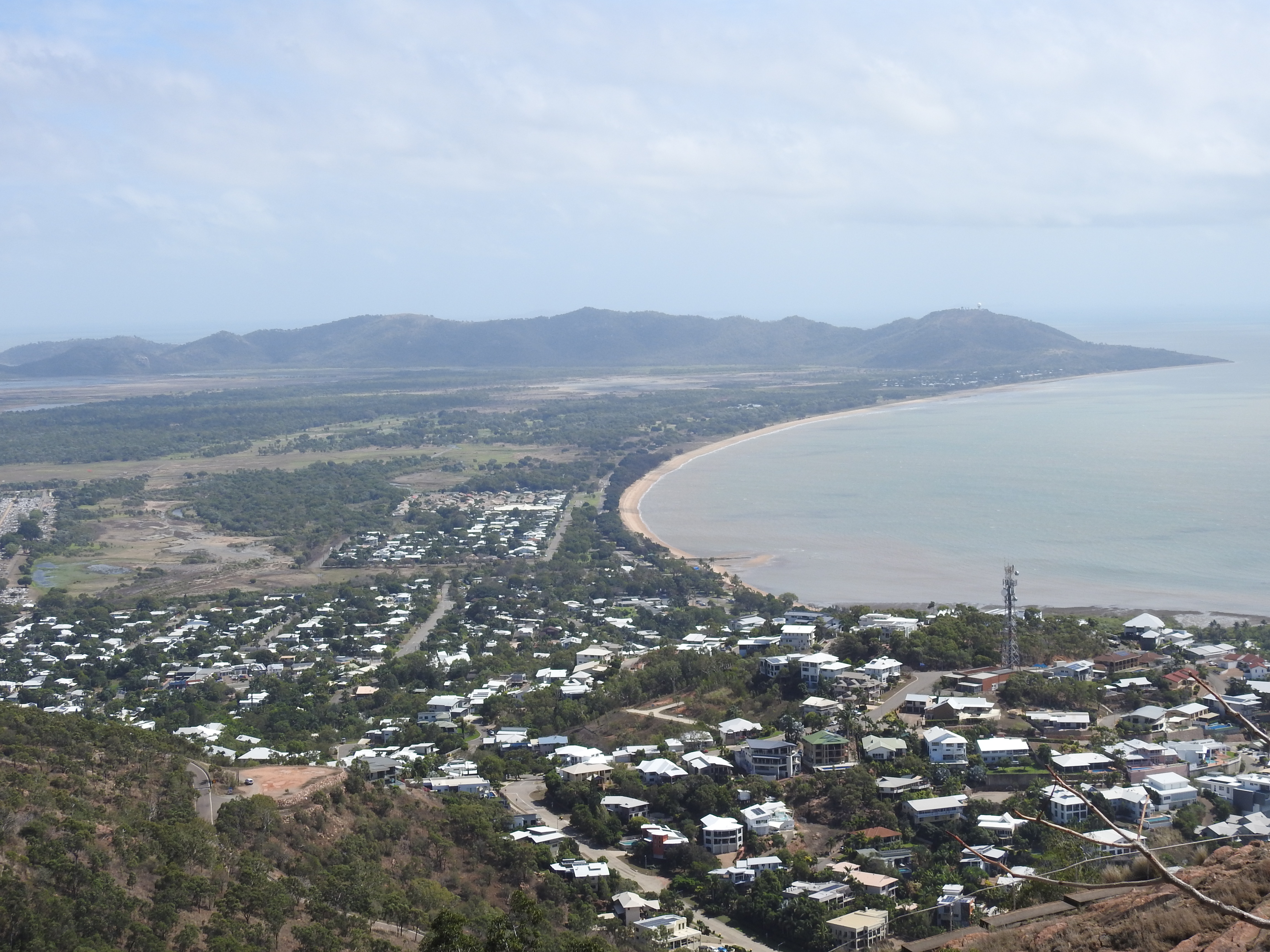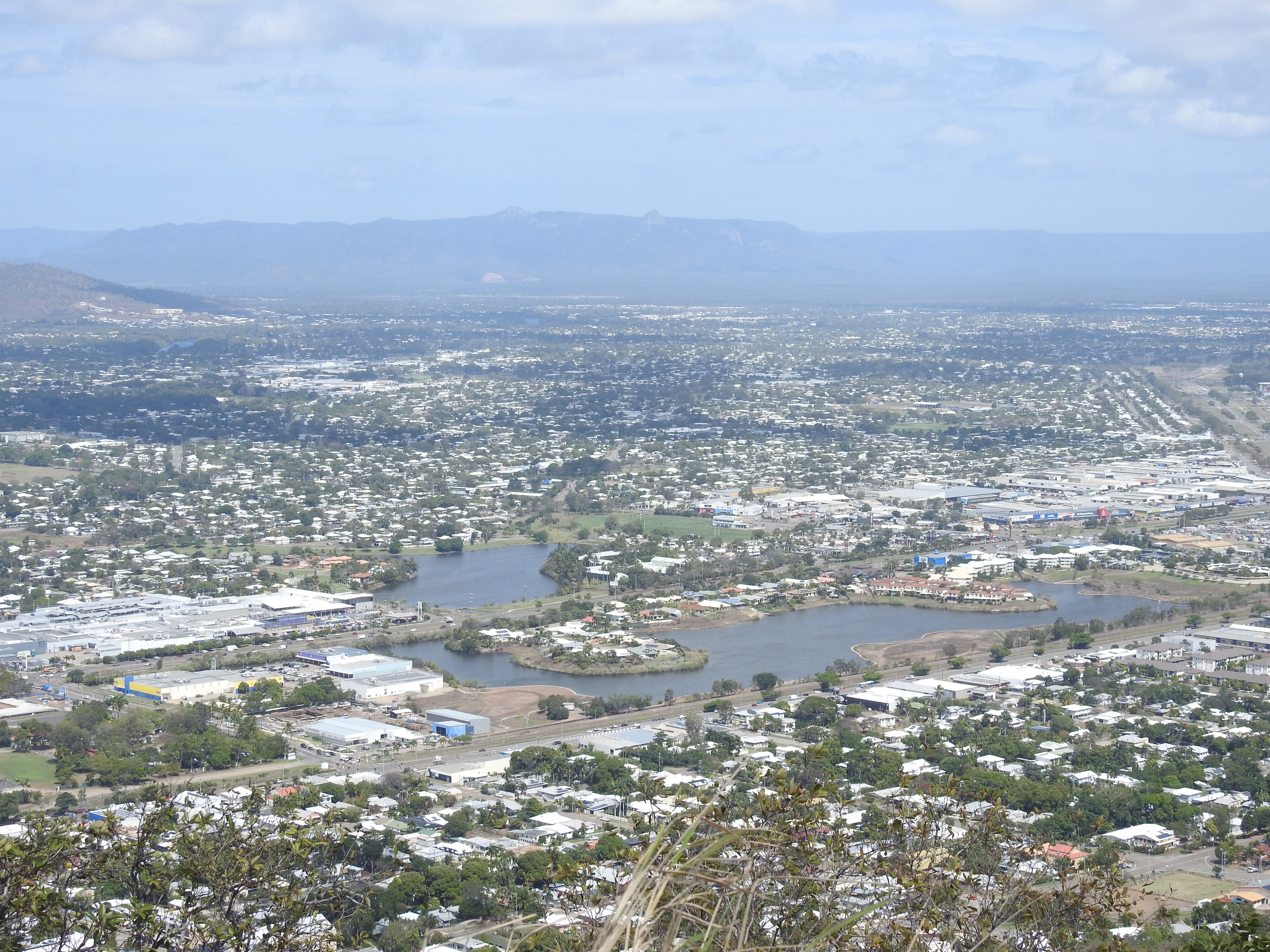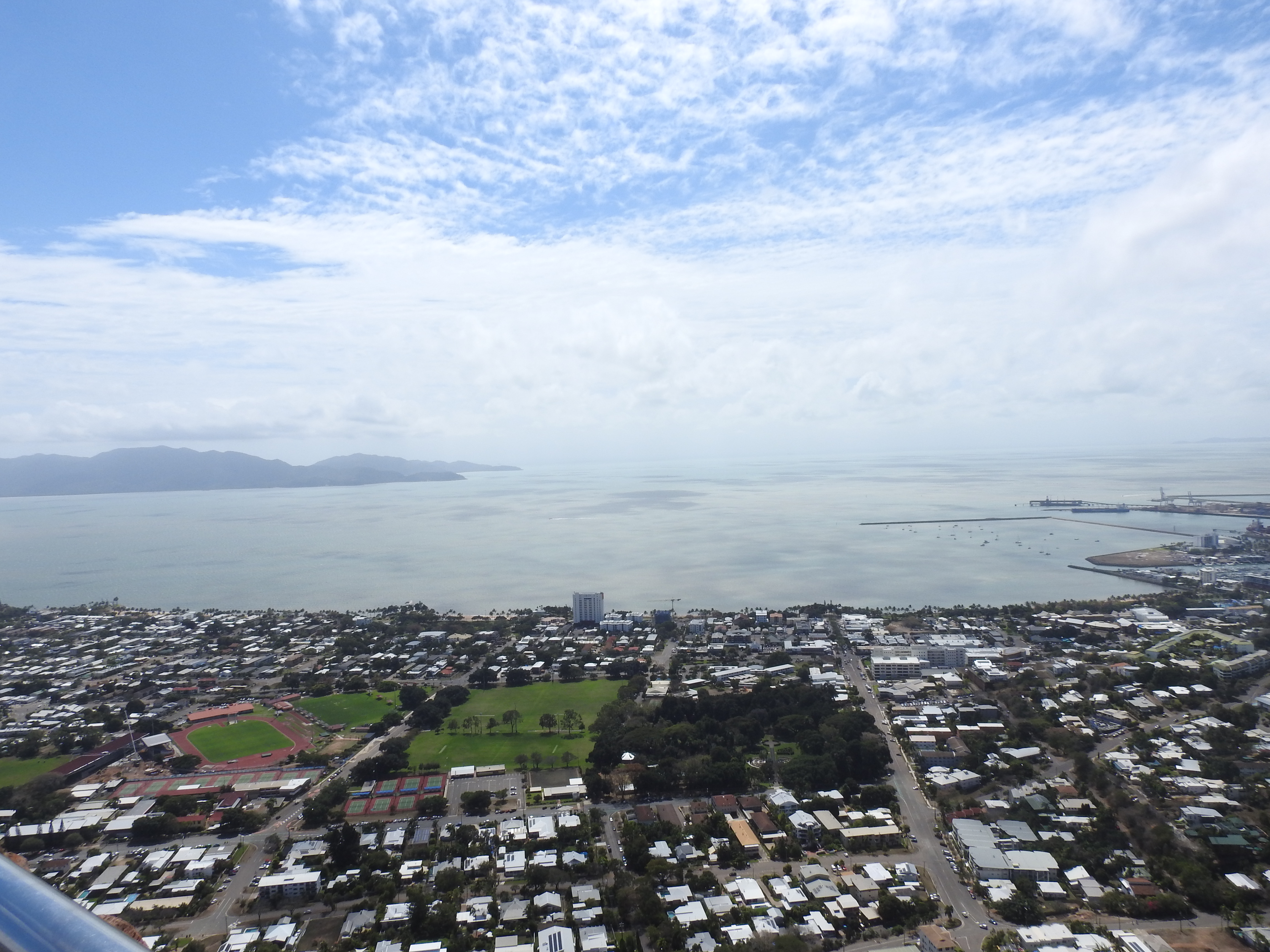 The walk back to the car is pleasant & our friends drive us up to Castle Rock, a prominent very large hill overlooking Townsville. The road up is steep & windy, however, that does not deter lots of people walking, jogging & cycling up the hill, even some women pushing prams. At the top the view is magnificent out over the Coral Sea & Magnetic Island with Townsville stretching off into the distance in all directions. Townsville has grown to be a large & vibrant city. The wind at the top is very strong & cools us down nicely, threatening to blow our hats off.