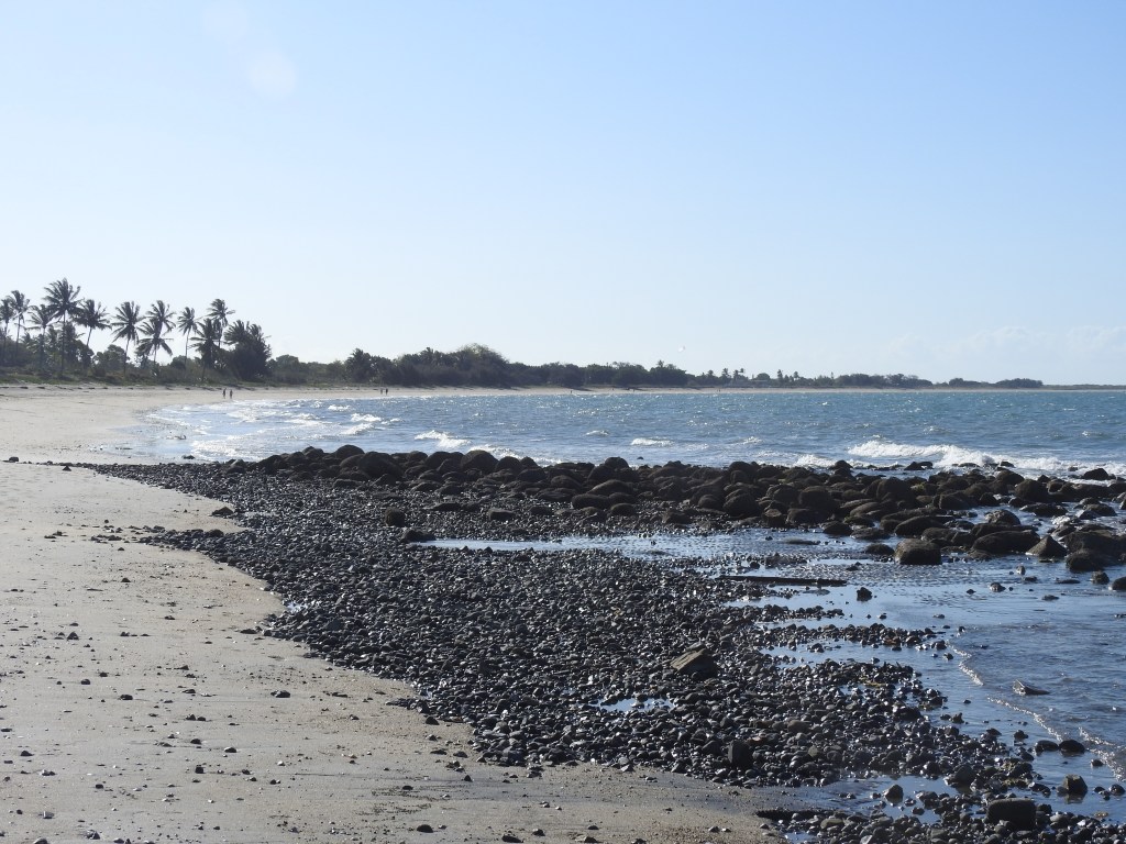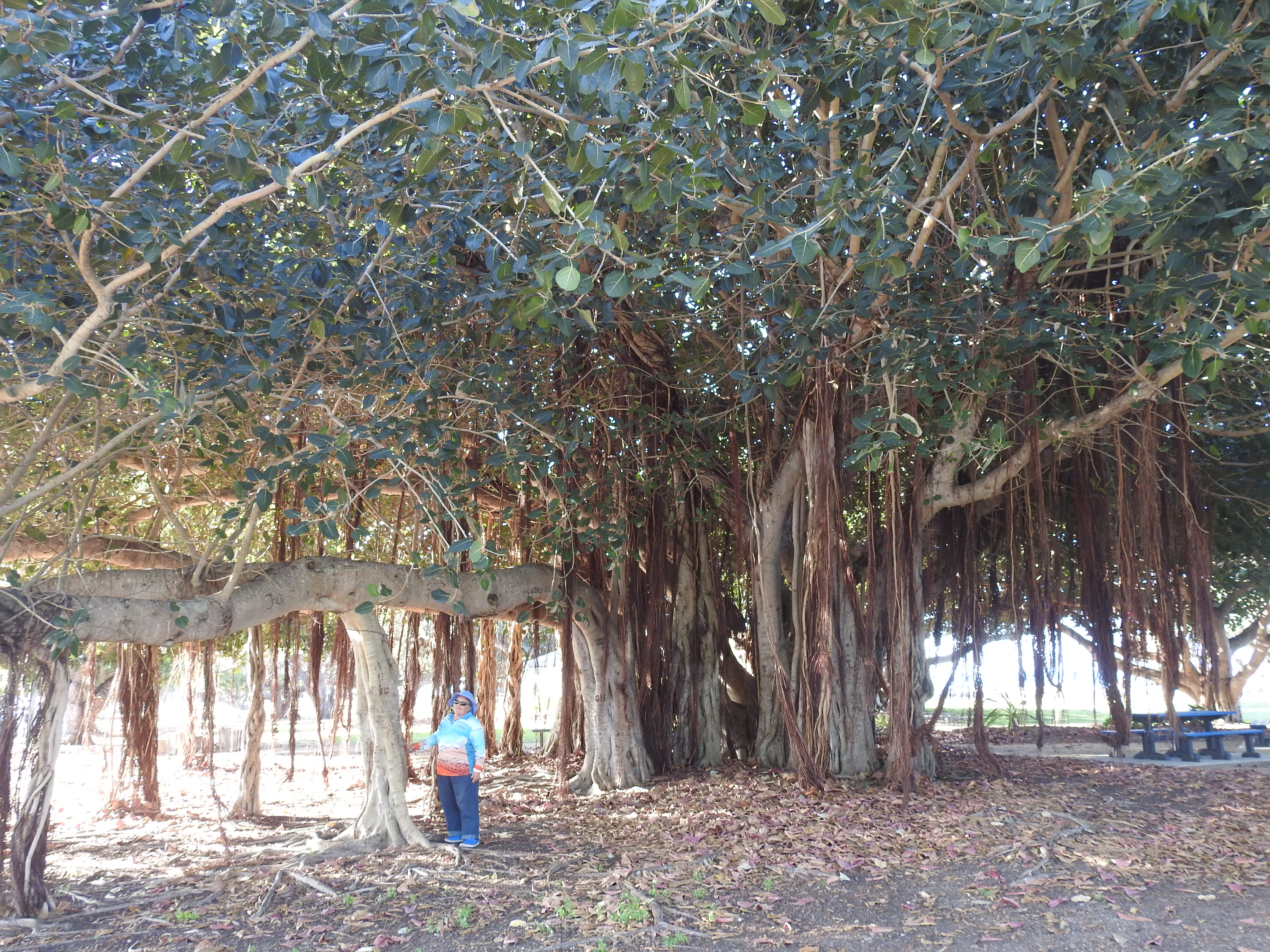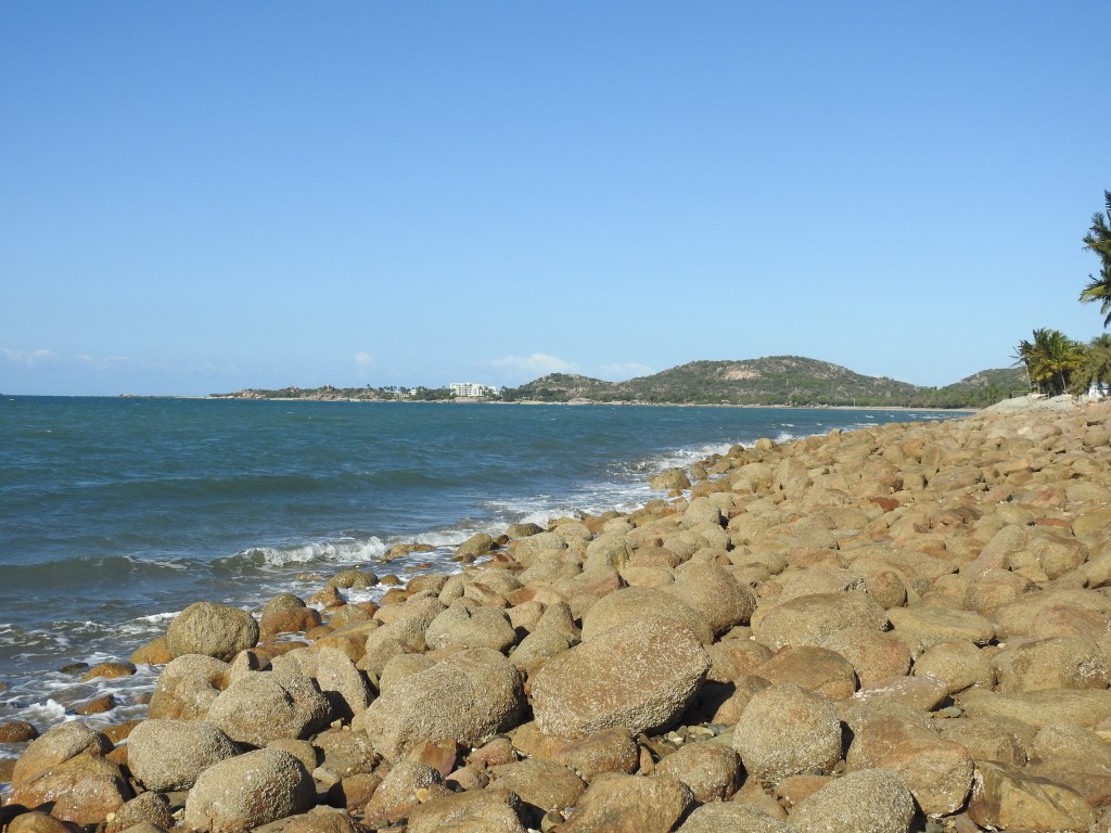 We find our caravan park in Bowen easily, book in & set up on our site. There is a beautiful bougainvillea at the back of our van site. Lunch is next (at 3pm, but we had some snacks while driving) then a walk out the back gate of the van park & onto the very long Queens Beach. There are a number of people out kite-boarding on foiling boards, they are travelling very fast over the water. We walk as far south on the beach as we can go, stopped by rocks at another caravan park. The tide has turned. We walk back past the van park we are in. We turn off the beach at the surf club & admire a massive spreading fig tree that has some amazing twisted branch supports. A walk along the path through the park & we are at the gate of our van park again. We sit outside & enjoy some cheese & bikkies with a glass of red while playing cards & then have a chat with our friends Sue & John in Canberra. Canberra is still in lockdown, 30 new Covid cases. A hot shower, a bite to eat, a big come down from yesterday’s feasting. Another great day.