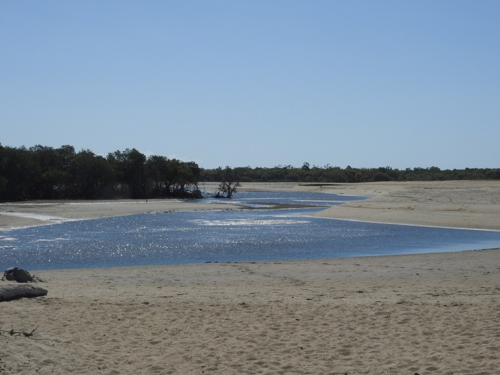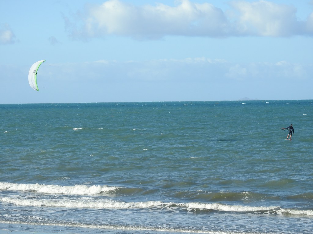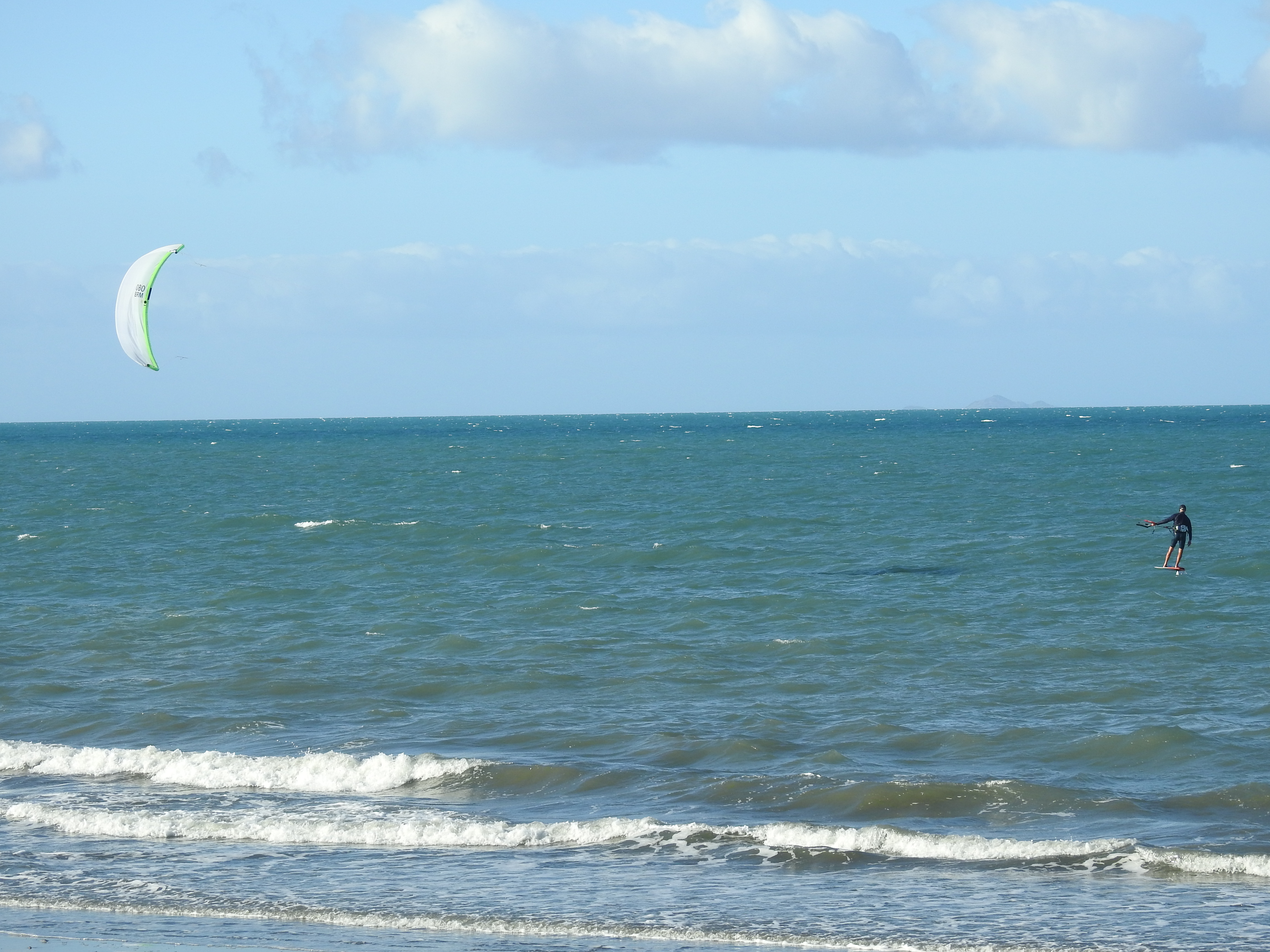We drive back out to Horseshoe Bay to see if the markets are still on, they aren’t, so we stop for an ice cream at a roadside van. They have real fruit in the ice cream that is mushed as it is served, absolutely delicious, I nearly had another. On the drive back to our Karavan we drive to the distant end of Queens Beach and walk out onto the beach for a look, it is still a fair walk to the Don River mouth. Back to our Karavan & we unload the groceries then go for a walk on Queens Beach heading north this time. We walk nearly all the way to the end before turning & making our way slowly back & enjoying our walk in the nice cooling breeze. There are a few people out on kite boards & we have a chat with one bloke as he is setting up.