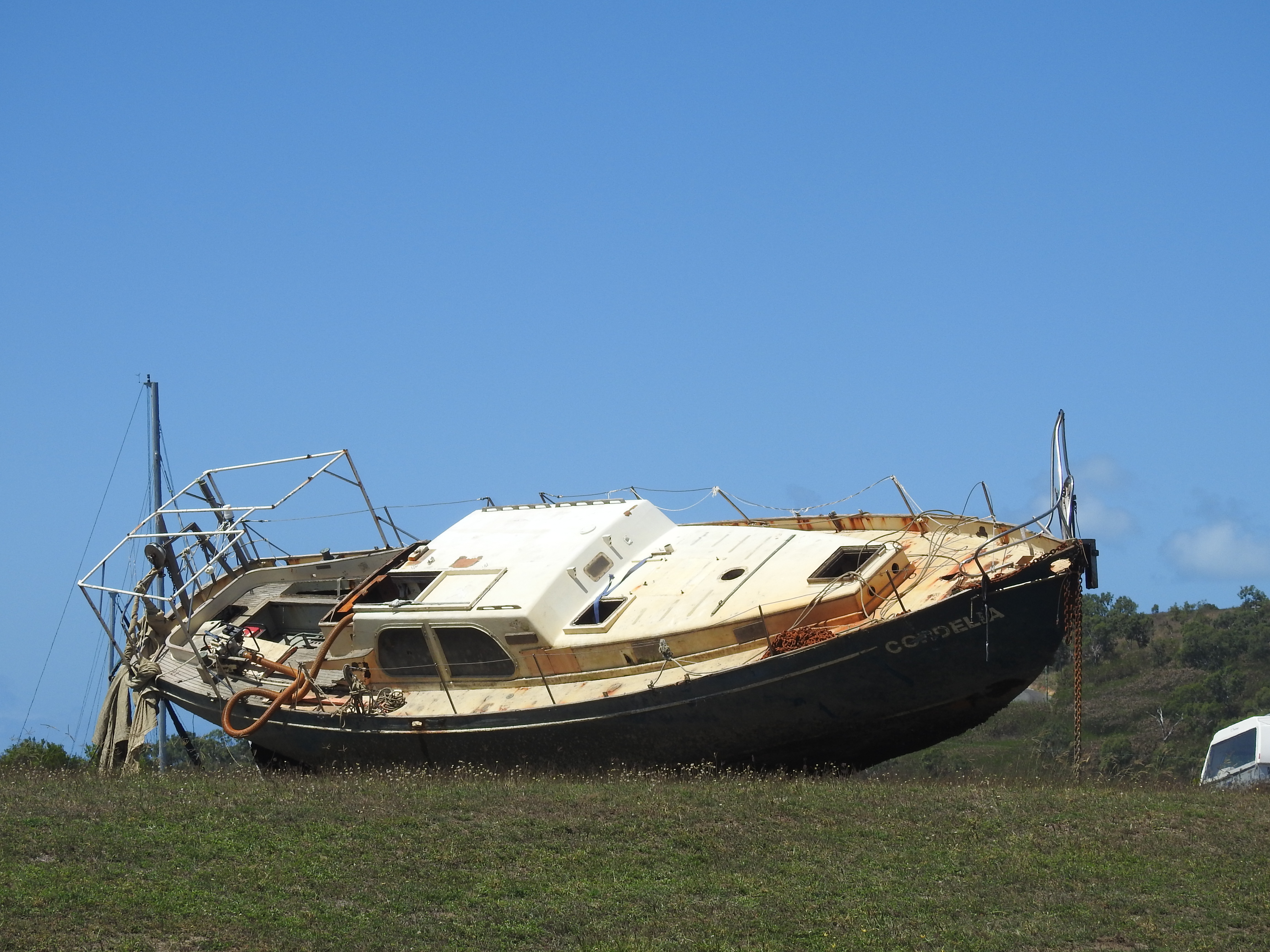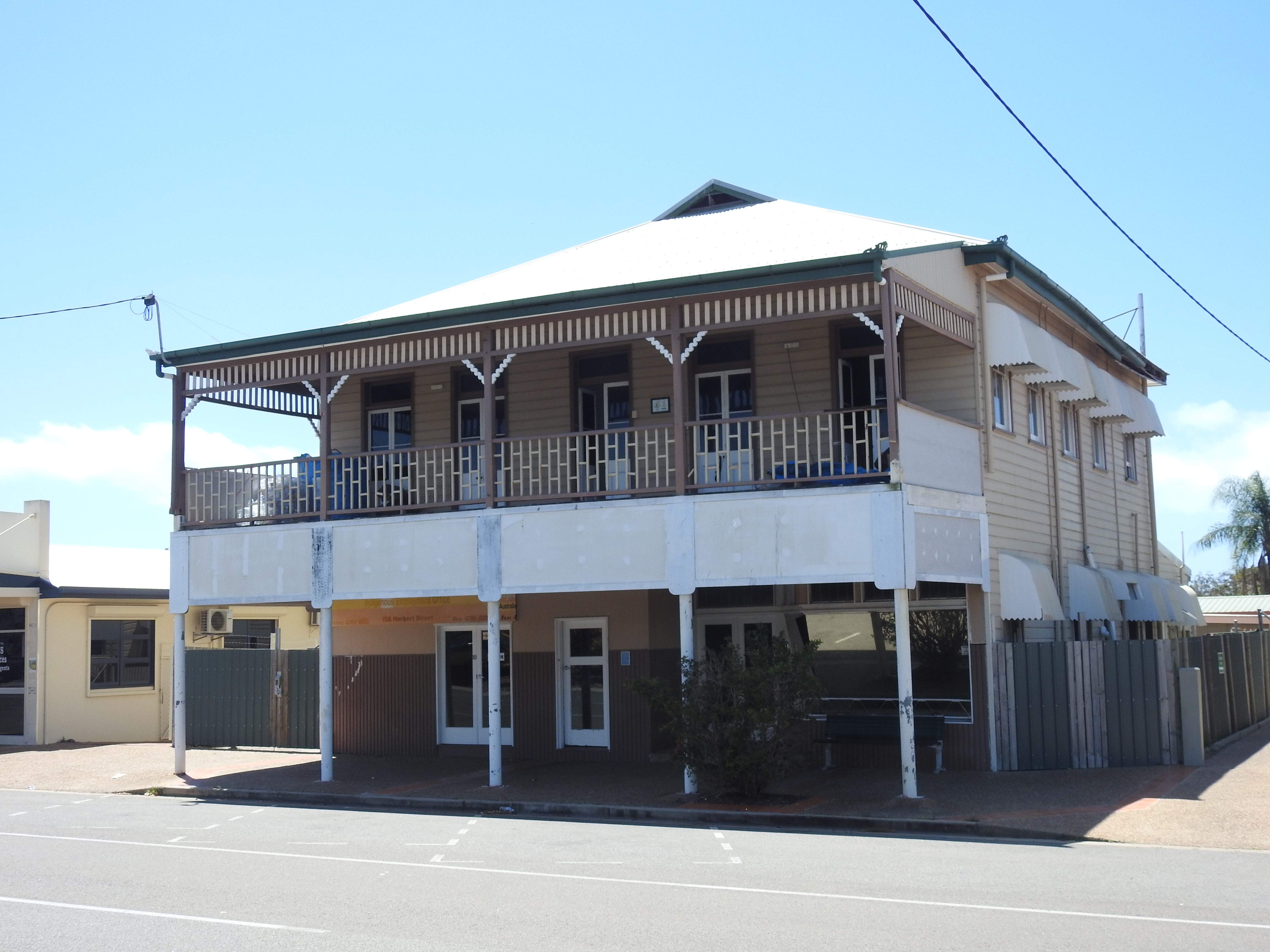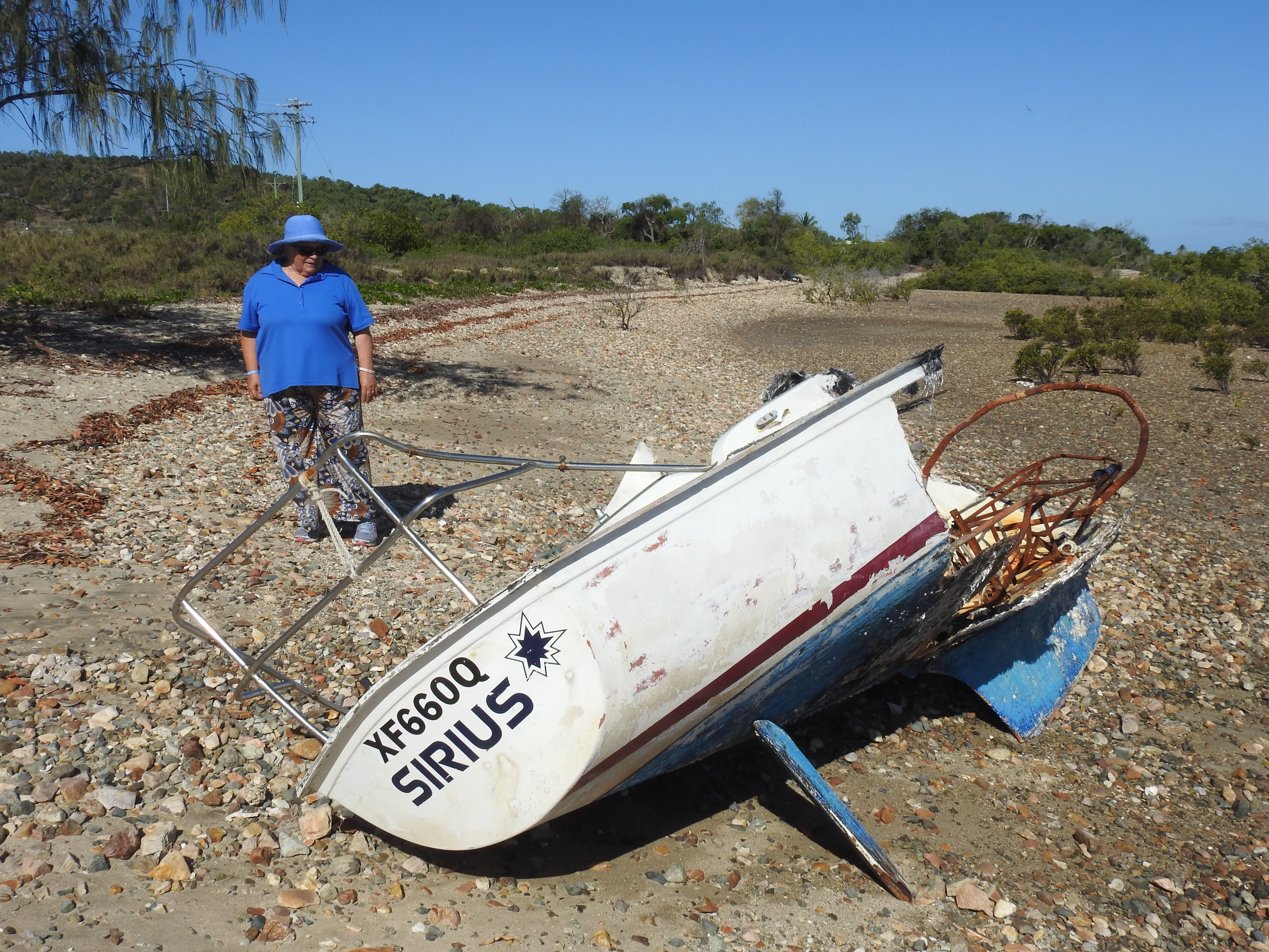 We then walk around the streets of Bowen and admire the painted murals on the walls, do a bit of window shopping & admire some of the old restored buildings. There is not much shopping activity going on in Bowen. Only one men’s, one women’s & one shoe shop, there was anything to tempt us. Hotels & alcohol stores are plentiful. Off to the Fisherman’s Co-Op for lunch again, on the shaded back deck again overlooking the fishing fleet. While we were in eating, outside an excavator dragged a sunken sailing boat out of the adjoining small boat harbour, it was full of water & had to be pumped out before retrieval.