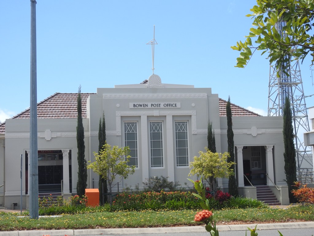 Off to Horseshoe Bay again this morning to see the beach with the tide in, it is just as beautiful. We stop at Gray’s Bay on the way back & enjoy this beautiful beach as well, it is postcard picture perfect. By this time it is 9.30am & the Bowen Museum should be open. It is a nice little museum staffed by friendly volunteers until 12.30pm. The museum is nicely laid out with a good mix of items reflecting all aspects of the history of Bowen. In the museum we couldn’t take any photos.Next to the museum is a small slab cottage from Moss Vale Station that was relocated to this site and reassembled, then filled with items from this era. Again, very interesting.