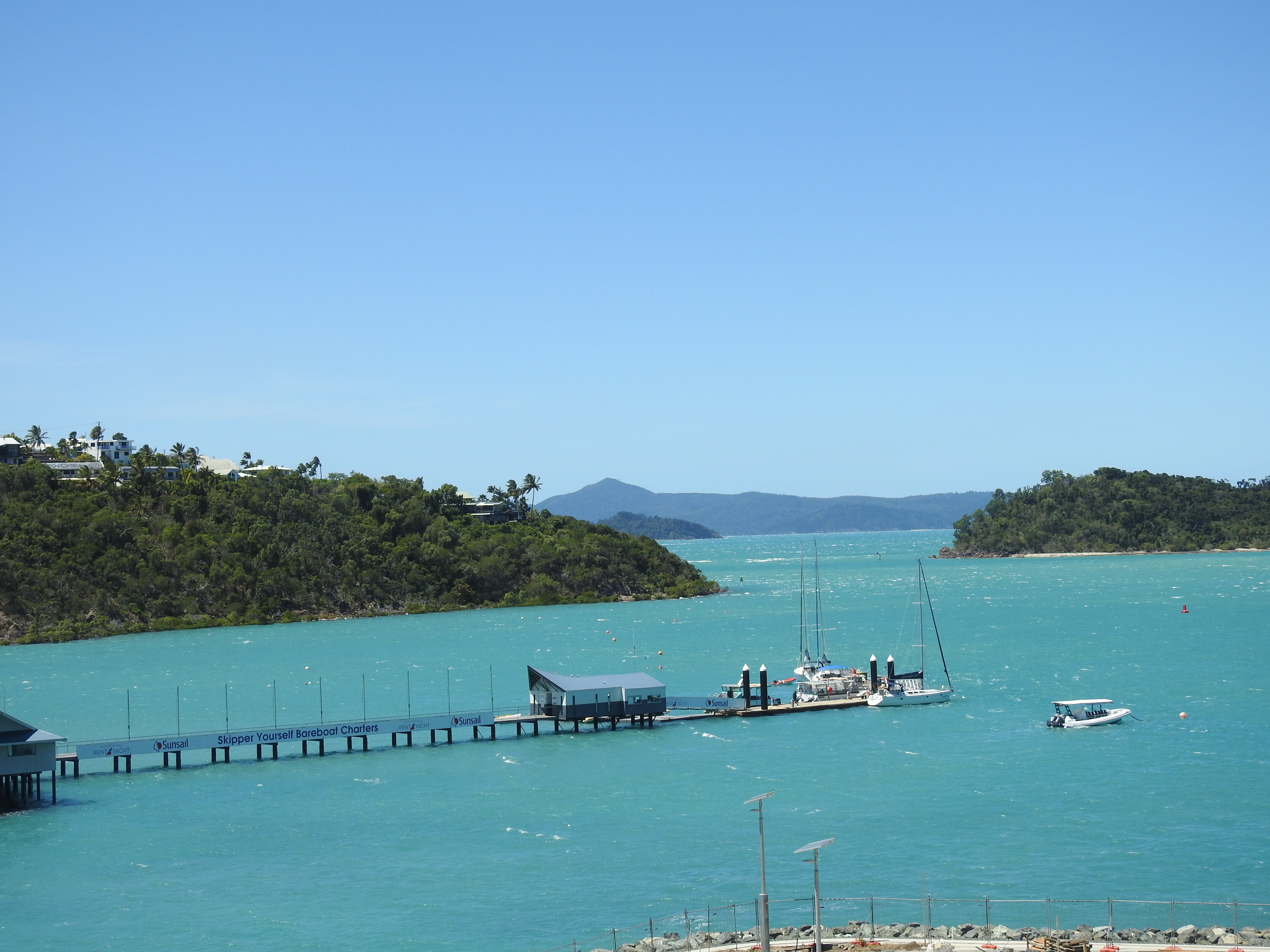Next is another short drive to Conway Beach, this is again through small farms and ends at the mouth of the Proserpine River with a collection of around 50 houses plus a caravan park in the back. The wind is blowing very strongly & the sea is covered in whitecaps with the sea a muddy brown colour. It is not very pleasant standing on the beachfront so we get back into our car & drive to Wilson Beach, another small hamlet with about the same number of houses, but no caravan park. We don’t get out of the car, it is so windy. We then decide to drive to Shute Harbour through Airlie Beach. Again more cane farms but as we get closer suburbia is expanding rapidly out from the coastline, it has changed so much since we were last here 16 years ago.