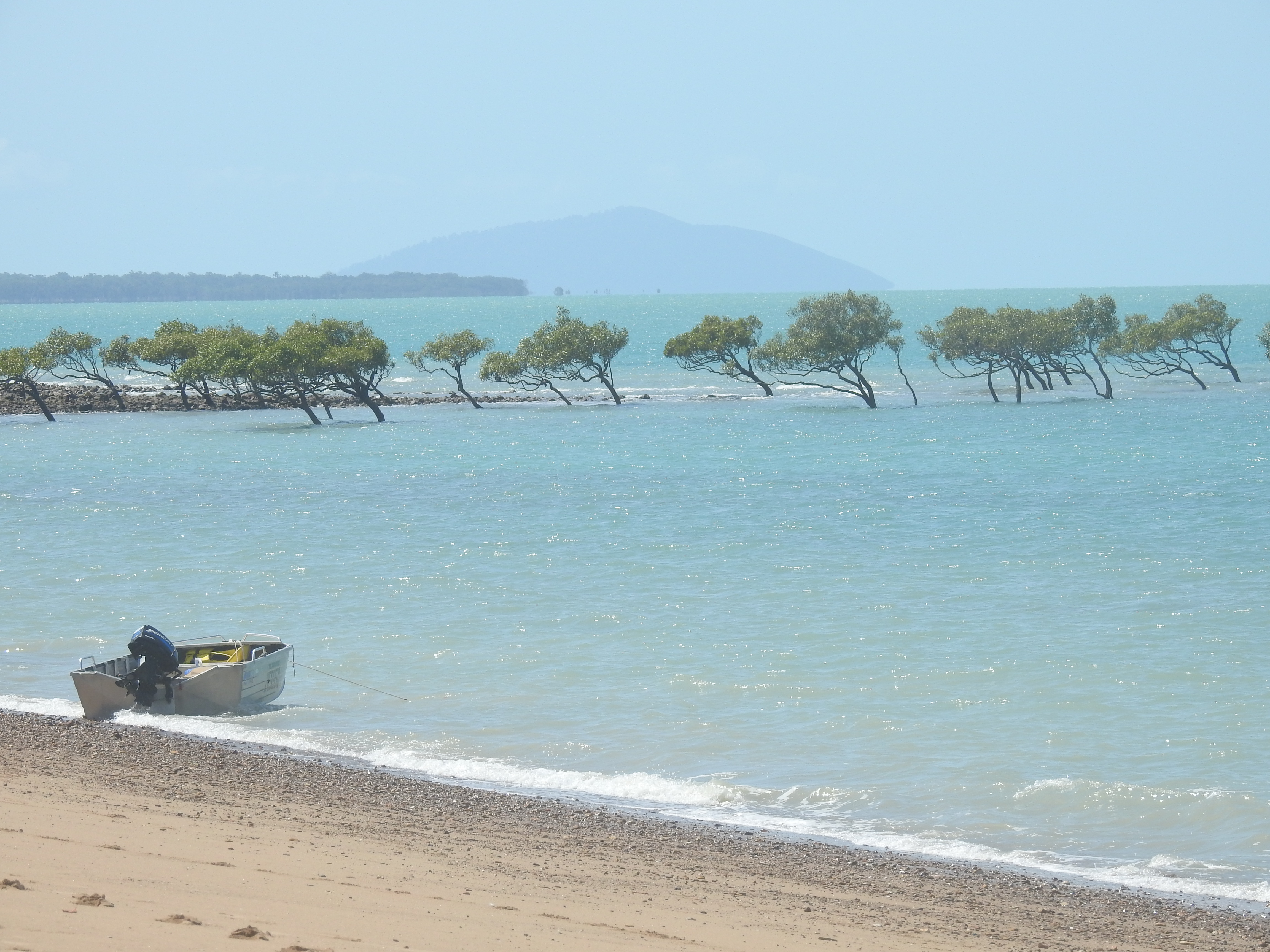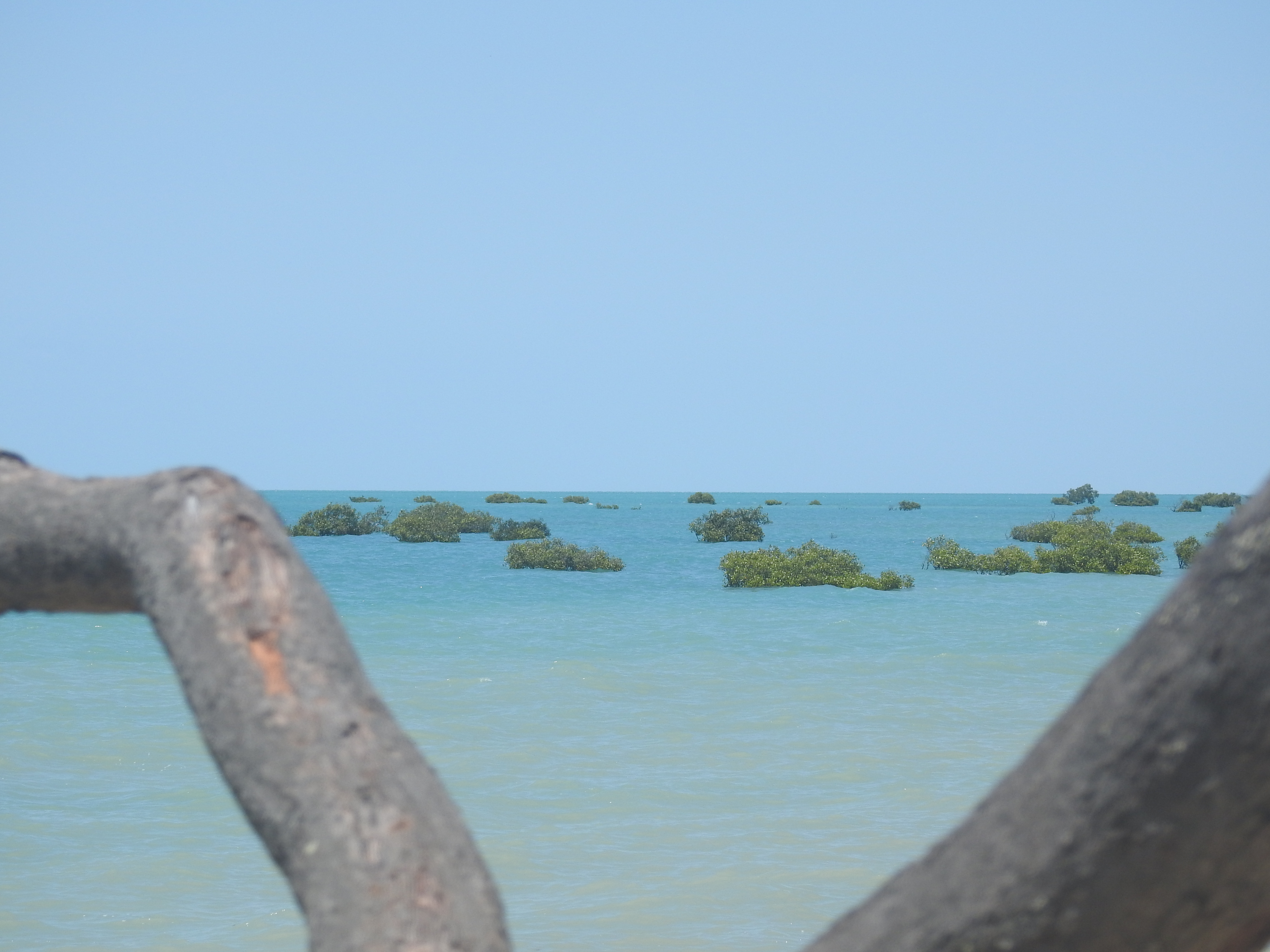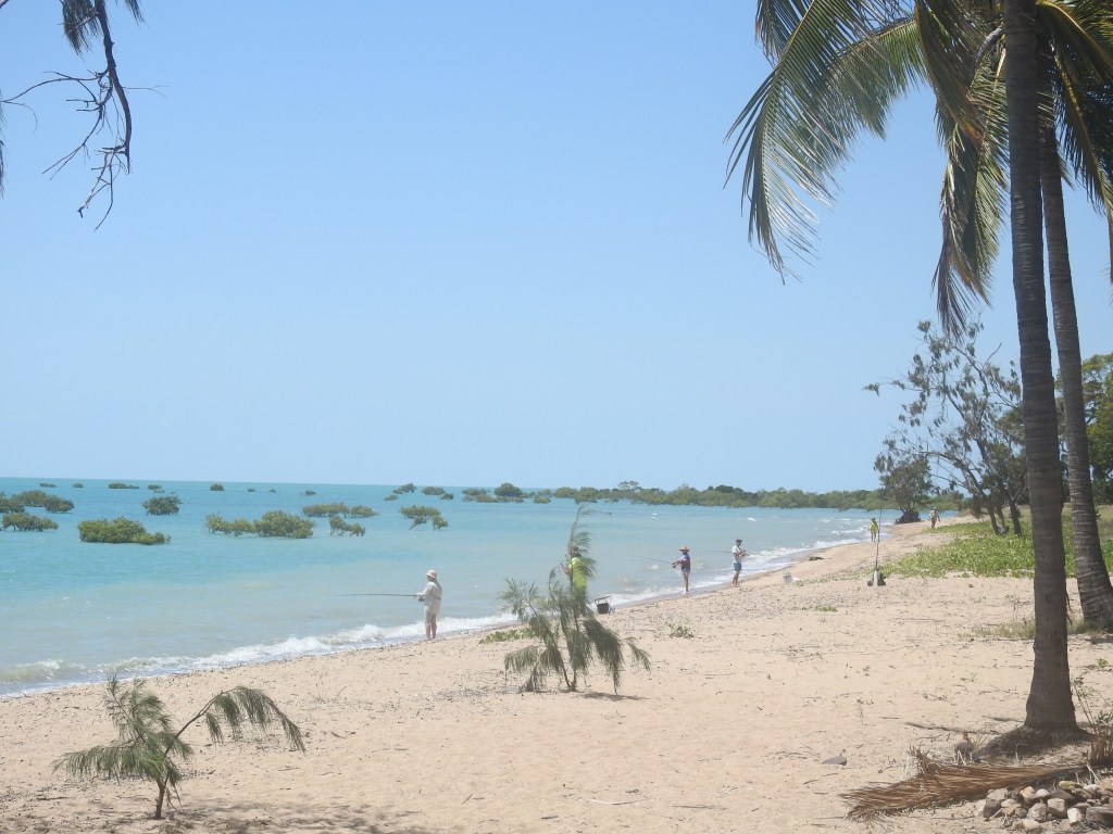 This morning we watched the fishermen launch their boats onto the beach & waiting for the tide to come in. They didn’t have to wait long as the tide advances so quickly. We sat outside & I had a coffee as the tide filled in & the beach filled with fishermen. I only saw them catch a few small fish, nothing of any size or worth keeping. This place is absolutely beautiful, the mangroves out on the rocks are covered in water up to their leaves. As the tide drops the boats start coming back in so that they don’t get stranded way out on the sand.
