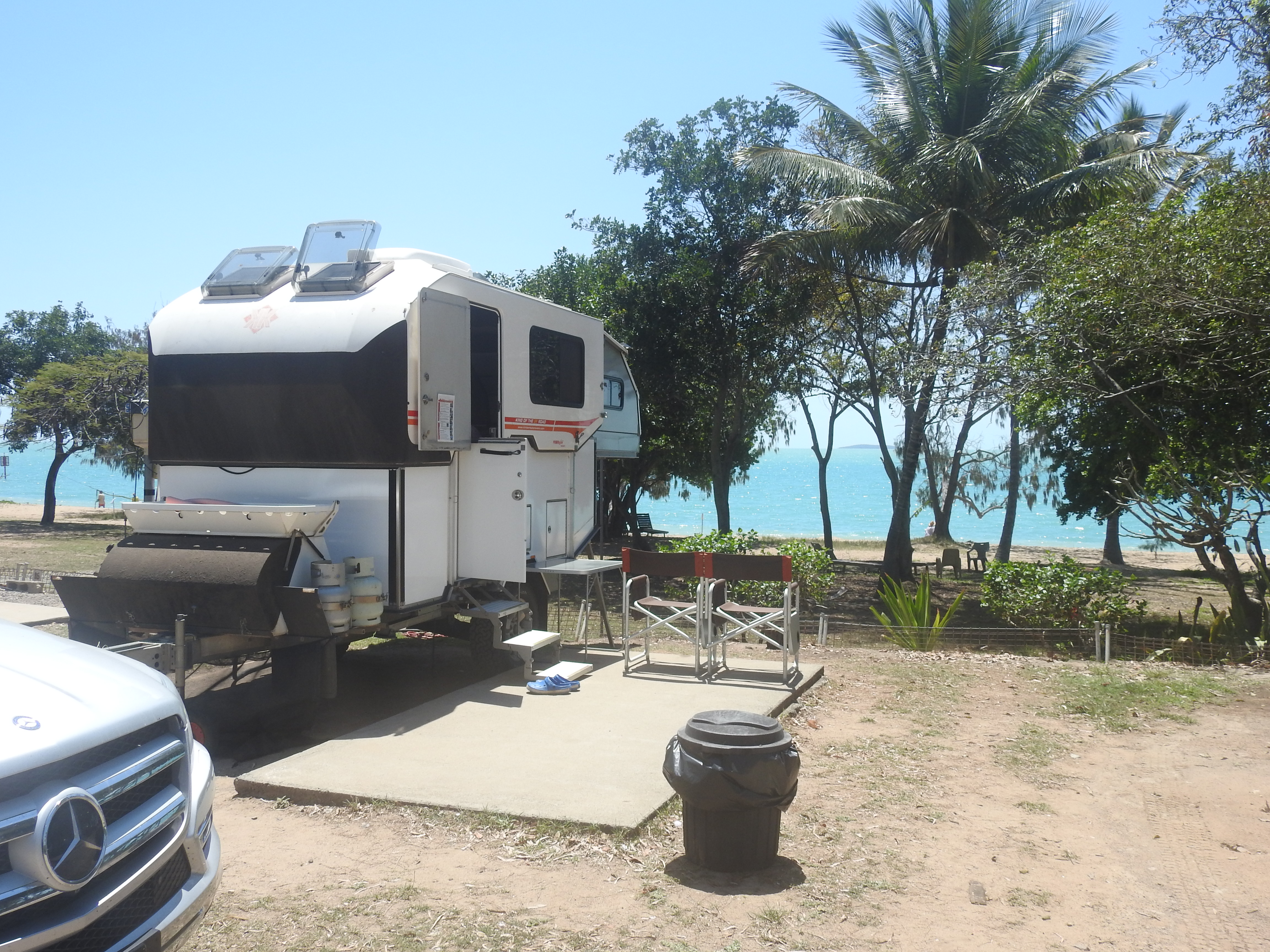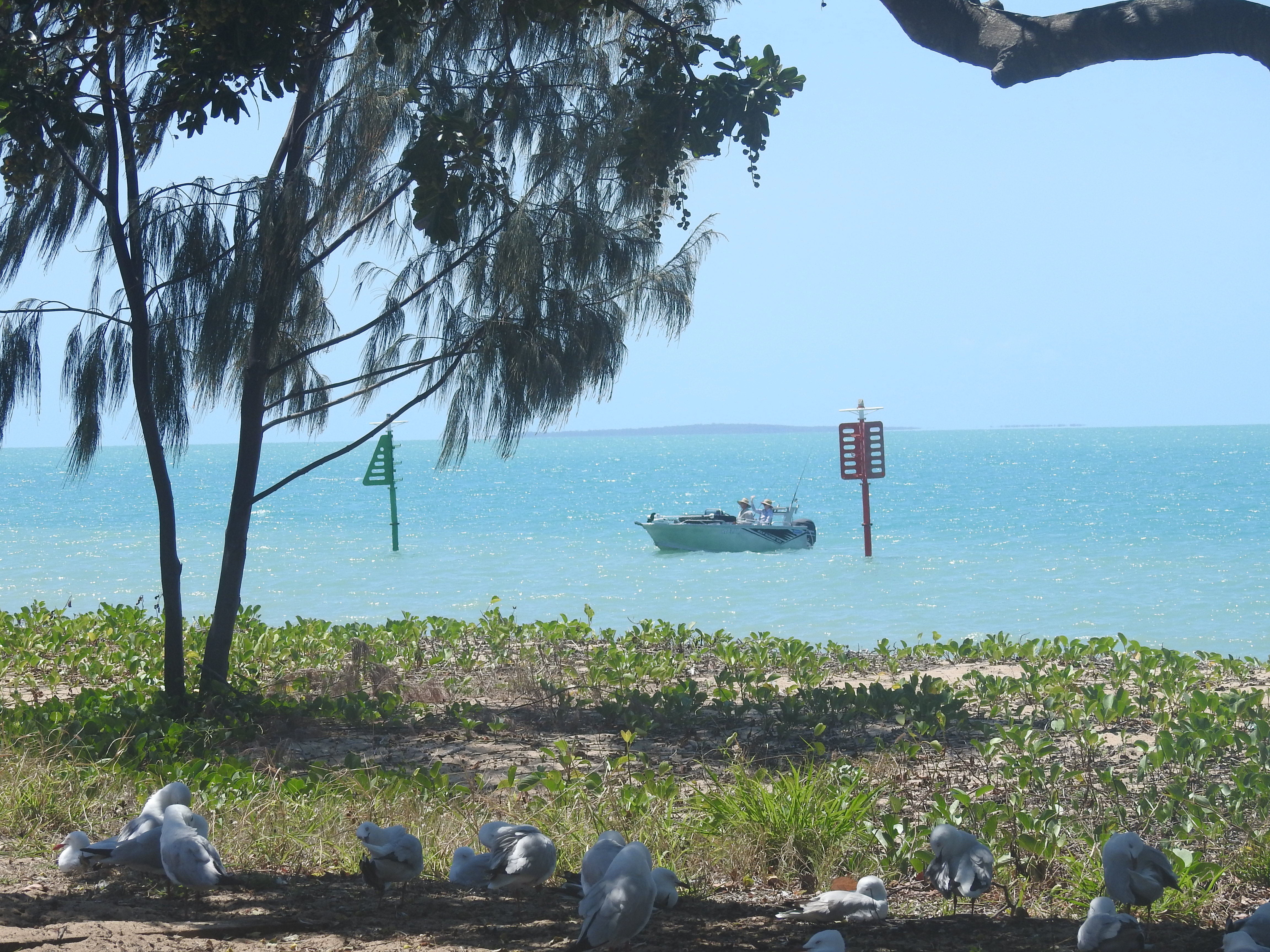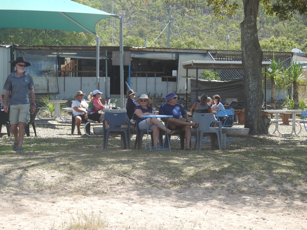 We had a seafood lunch from the bistro again out on the beachfront & again we saw lots of dugong grazing on the seagrass out the front. There were also some turtles swimming & feeding close to the shore. As the tide receded I walked out on the beach & close rocks then ventured down to the creek at the end of the campground, no water at all. We then played a game of 5 crowns, then cheese & bikkies plus a glass of red. Another great day.