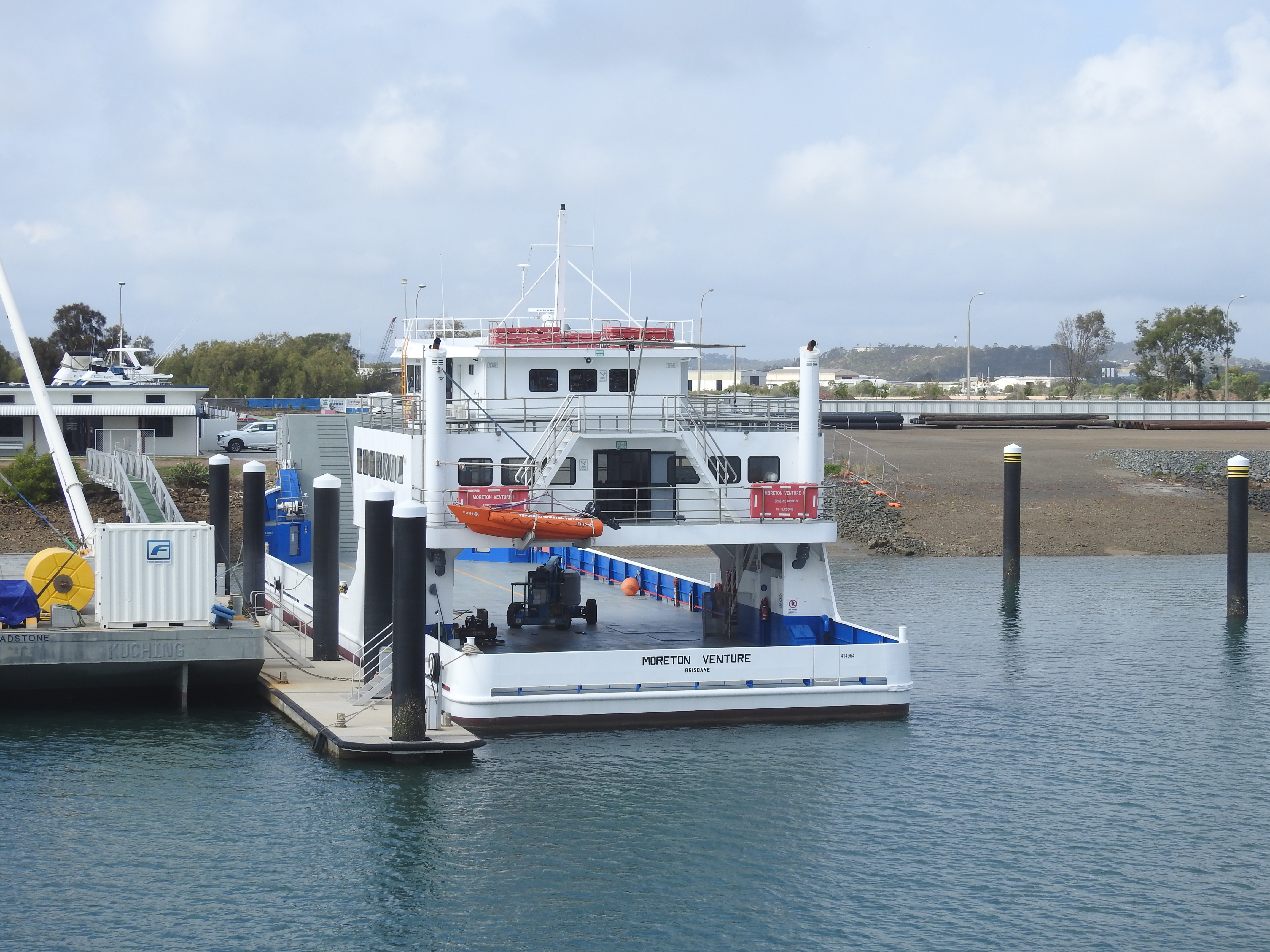 The voyage back is just as pleasant & interesting seeing everything from a different side. The tide is now low & we stop at Panorama Point, the northern tip of Quoin Island to pick up a car from the sandbar that is now exposed at low tide. We have a great view of the port foreshores as we come back in & all of the terminals & wharves for handling the different types of commodities that are shipped from here. We arrive back at the Curtis Ferry terminal around 10.30am and wait for the cars to unload before we walk off. A thoroughly enjoyable boat trip, very reasonably priced & well worthwhile.