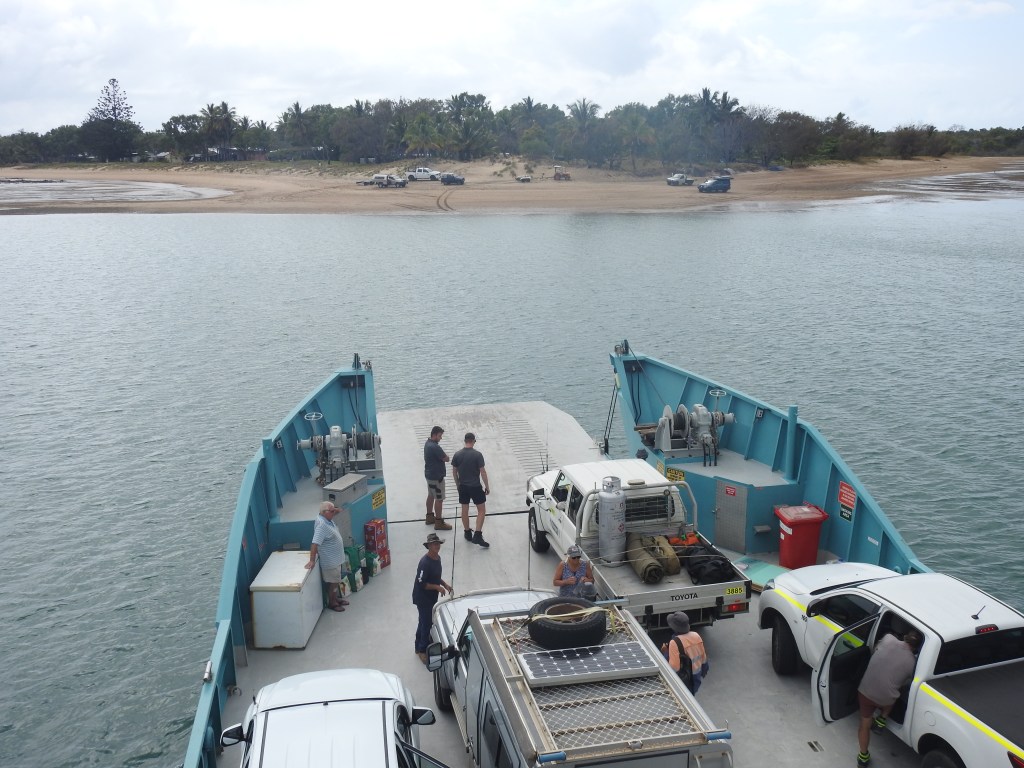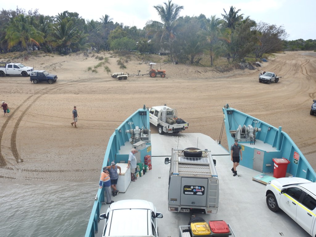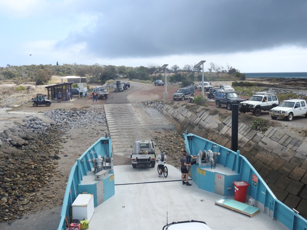 Our first stop is at the small settlement of Farmers Point on the northern tip of Facing Island. There are a number of cars on the beach & the barge noses into the beach & lowers the ramp onto the sand. There are some National Parks people, Maritime Services people & a group of volunteers in a small convoy of cars doing a beach clean-up before turtle nesting season starts.