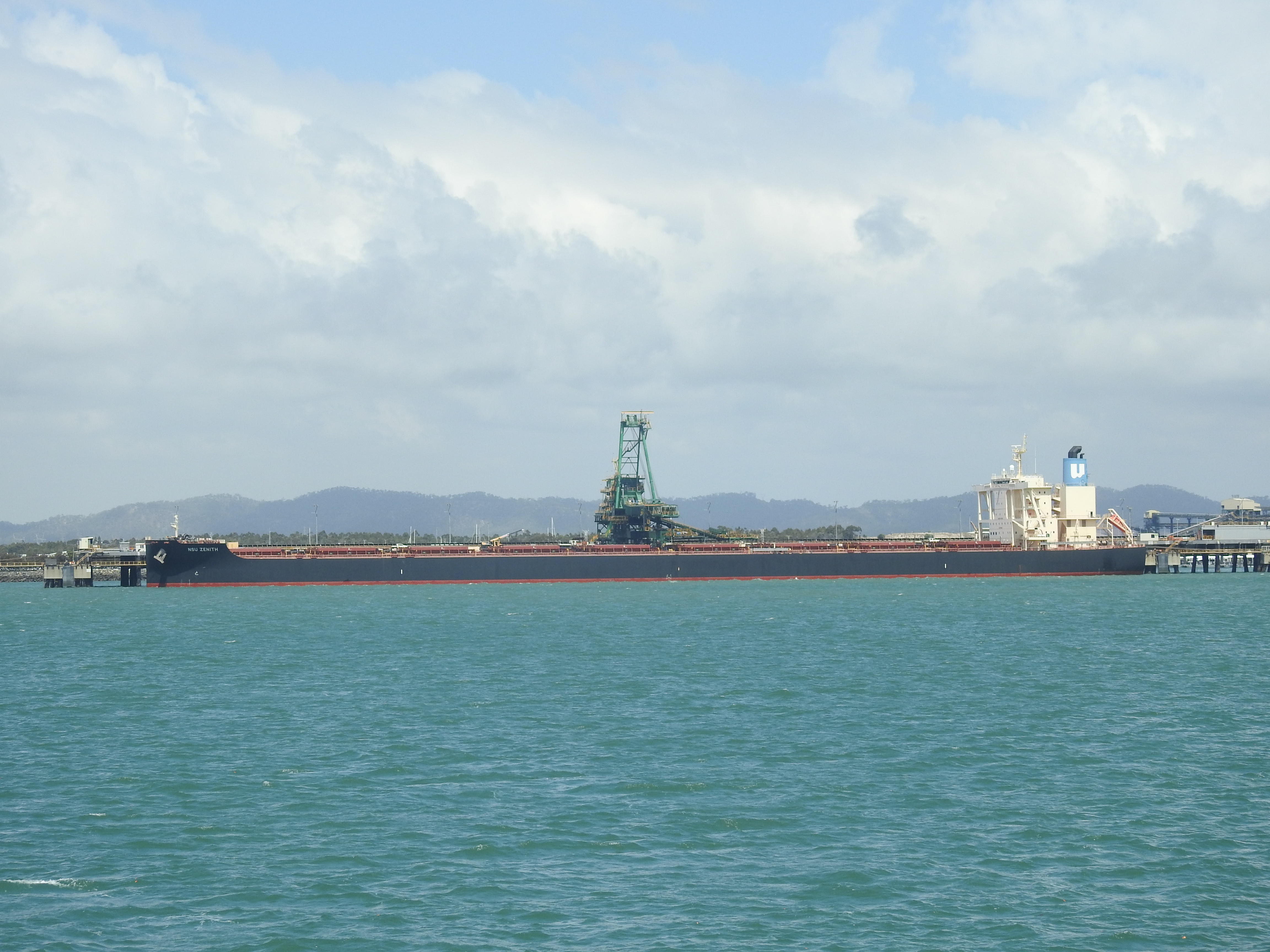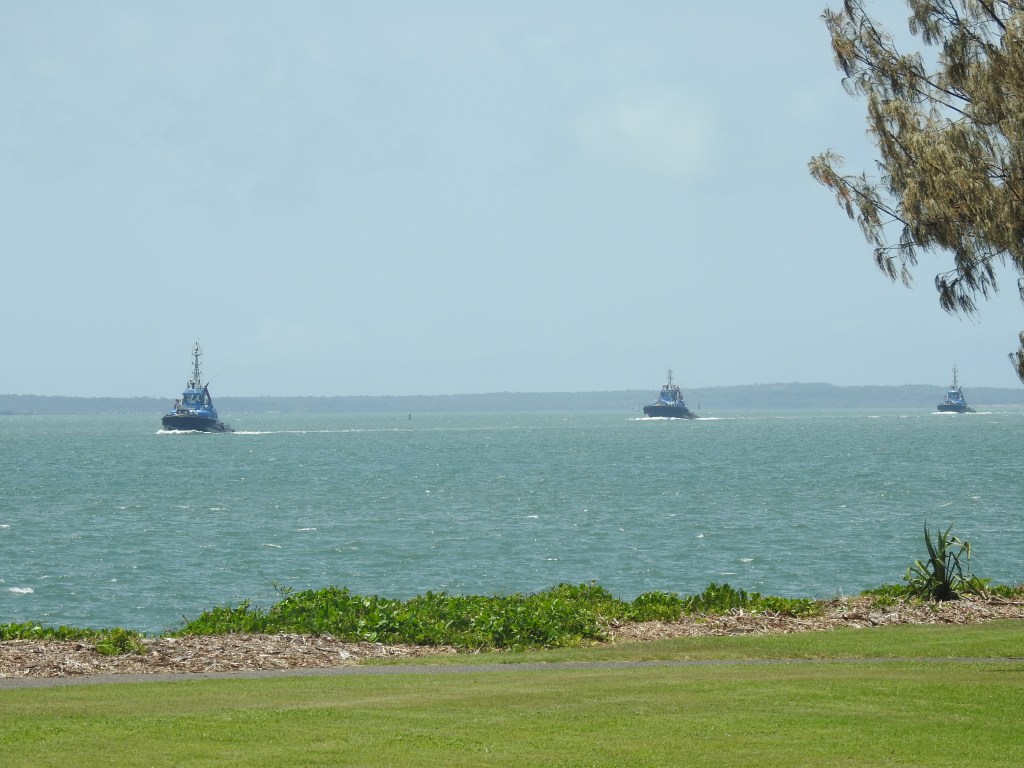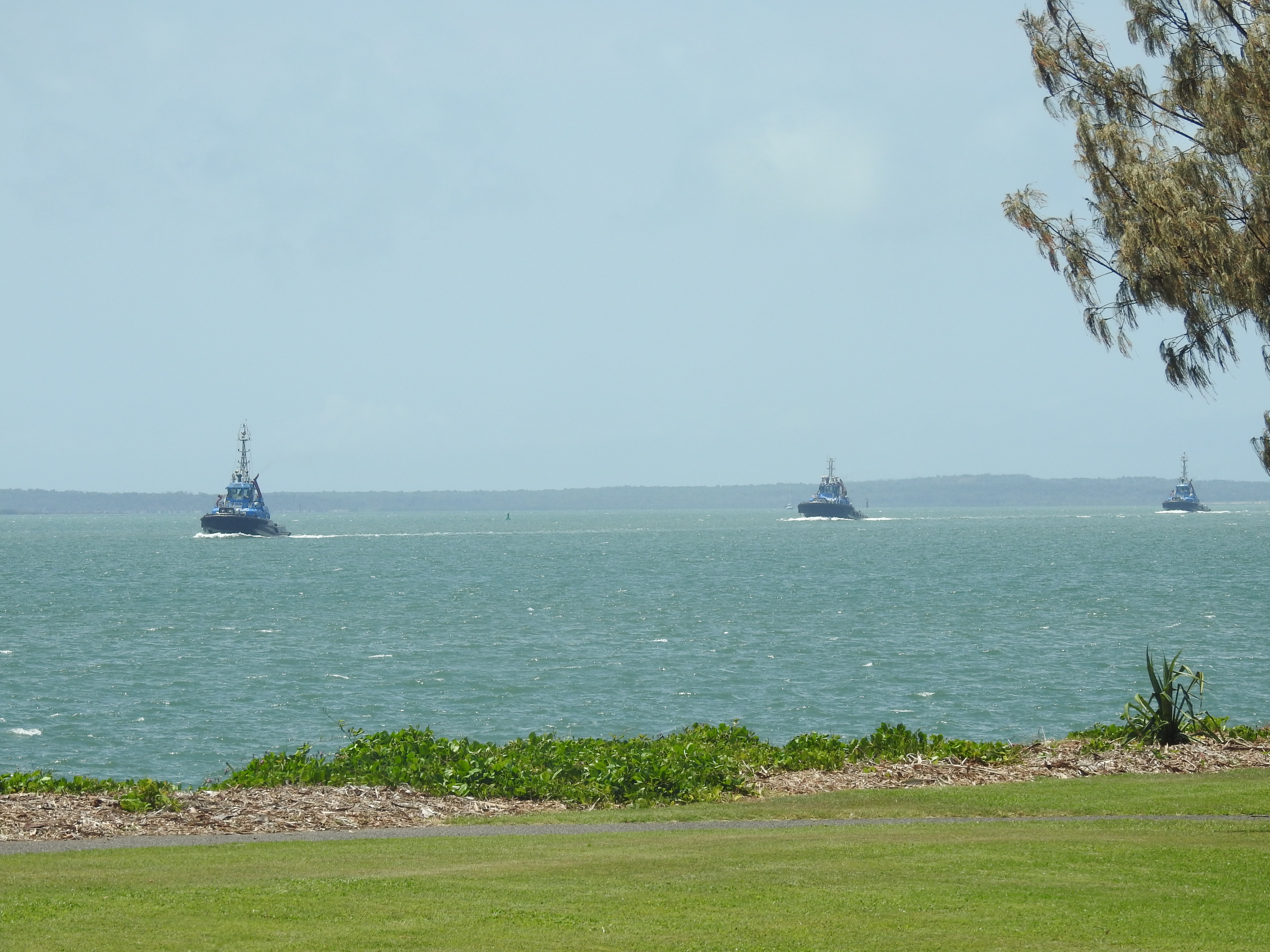 Out of bed before 6am, breakfast & on the road by 6.50am & into the Gladstone Marina. We arrive at the Curtis Ferry Terminal around 7.20am & organise ourselves for a morning on the barge doing deliveries to the outlying islands of Gladstone Harbour. We wait for most of the cars to be loaded before walking on to the barge & climbing the stairs to the top bridge deck. It is interesting looking at all the working boats & pleasure boats when we are leaving the confines of the marina. As we enter the harbour we pass close to a fully laden coal ship, it is a massive ship & very wide.
