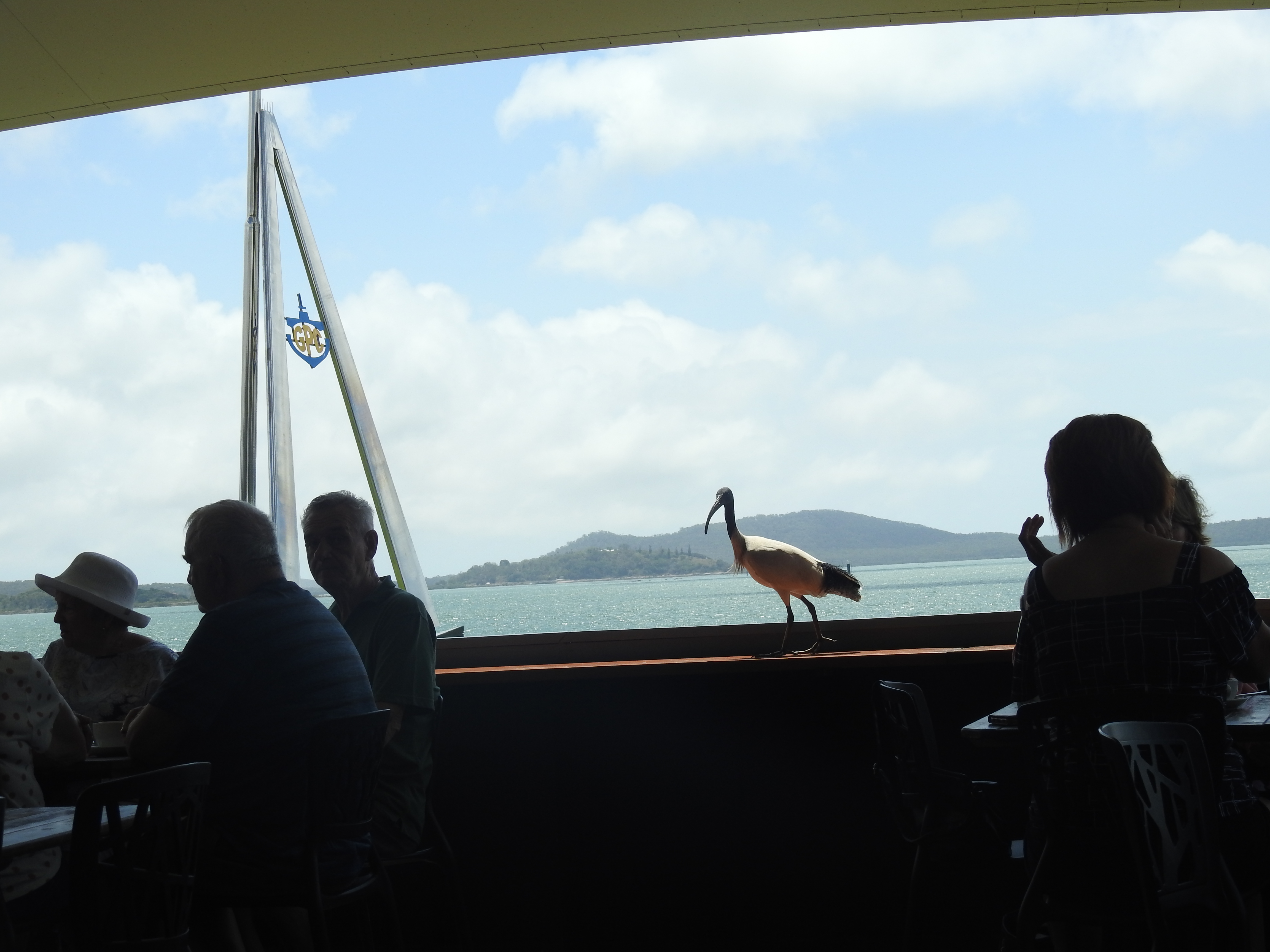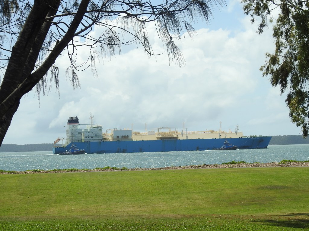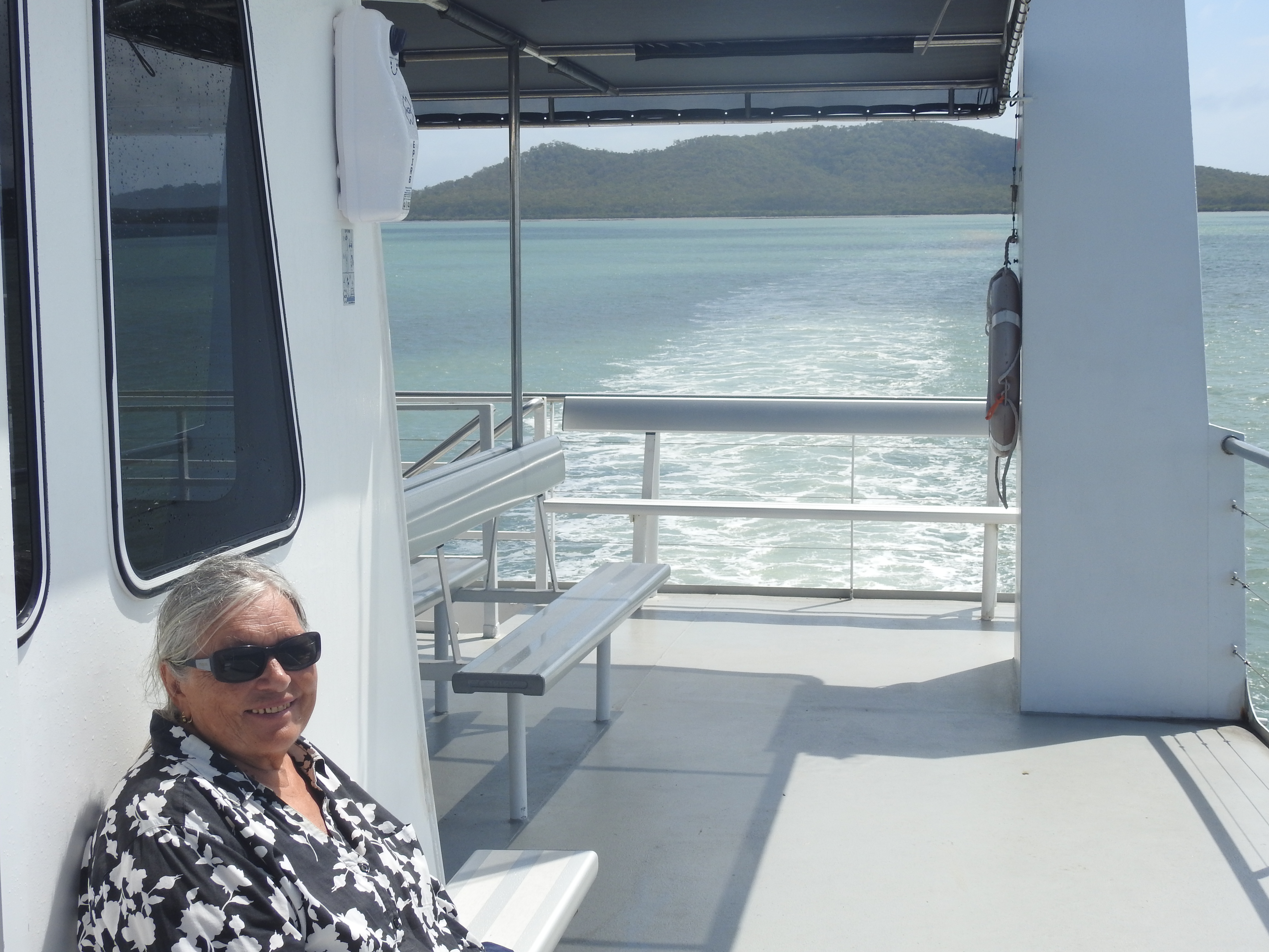 Out of bed before 6am, breakfast & on the road by 6.50am & into the Gladstone Marina. We arrive at the Curtis Ferry Terminal around 7.20am & organise ourselves for a morning on the barge doing deliveries to the outlying islands of Gladstone Harbour. We wait for most of the cars to be loaded before walking on to the barge & climbing the stairs to the top bridge deck. It is interesting looking at all the working boats & pleasure boats when we are leaving the confines of the marina. As we enter the harbour we pass close to a fully laden coal ship, it is a massive ship & very wide.