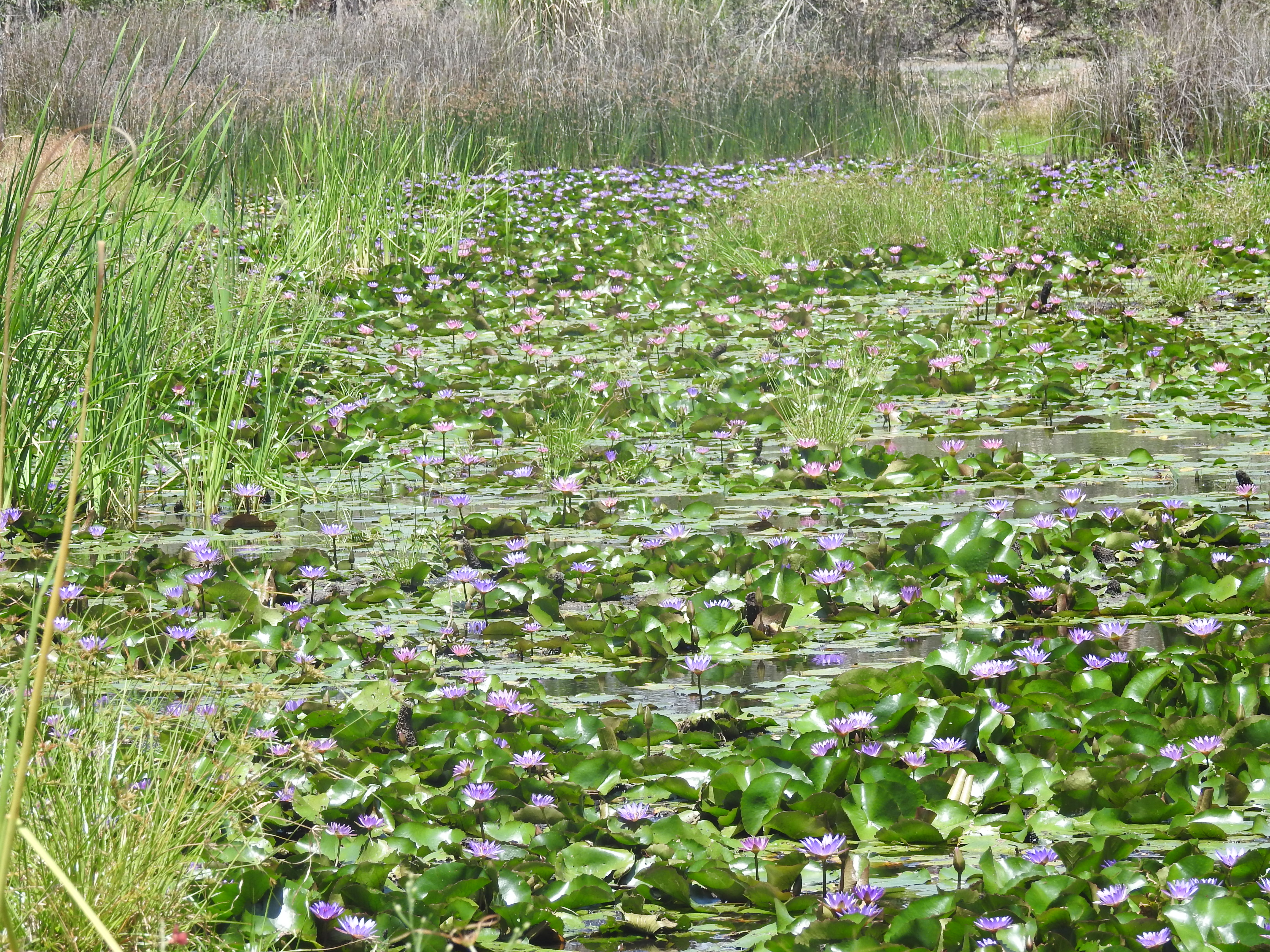It is only a short drive around to Spinnaker Park so that is next on our agenda, we stop at the Spinnaker café & have an early lunch. A seafood platter again (for a change), it is delicious. We are entertained by the Ibis & Blue Cheeked Honeyeaters looking for scraps off the tables after people leave them. We have great views of the harbour & watch a Liquefied Natural Gas ship being guided out by some tugboats. Next on the agenda is a walk around the garden at the end of the peninsula. The path is very wide & well formed & it takes us past a large pond covered in flowering water lilies, both pink & blue colours, it is stunning, however, as always, the photos do not do it any justice. We spot a Willie Wagtail gathering nesting supplies on the branch of a paperbark tree.