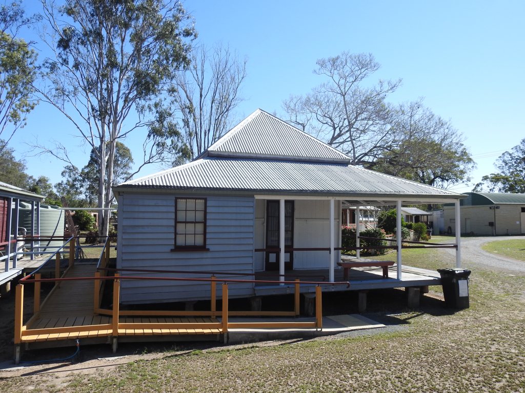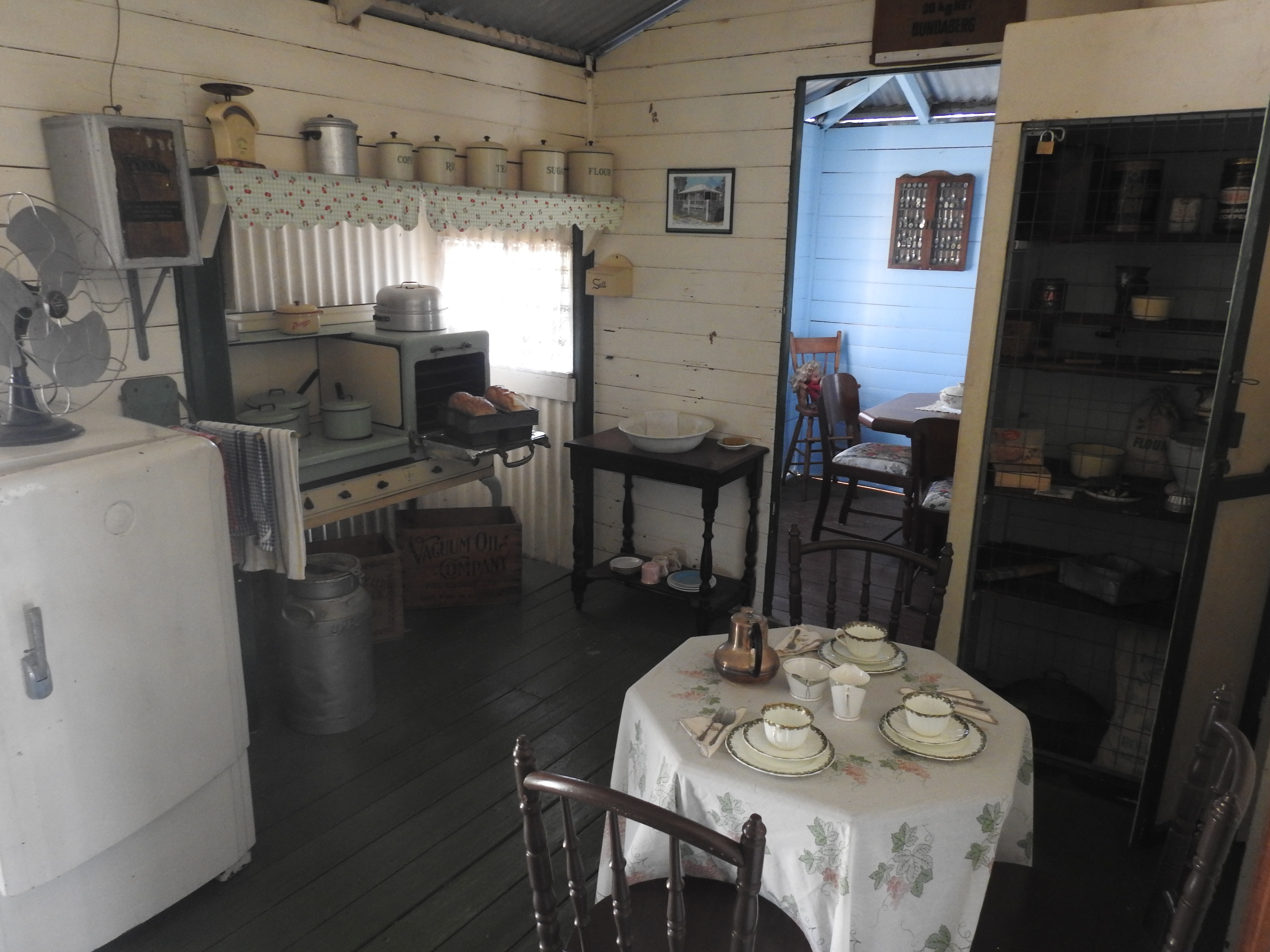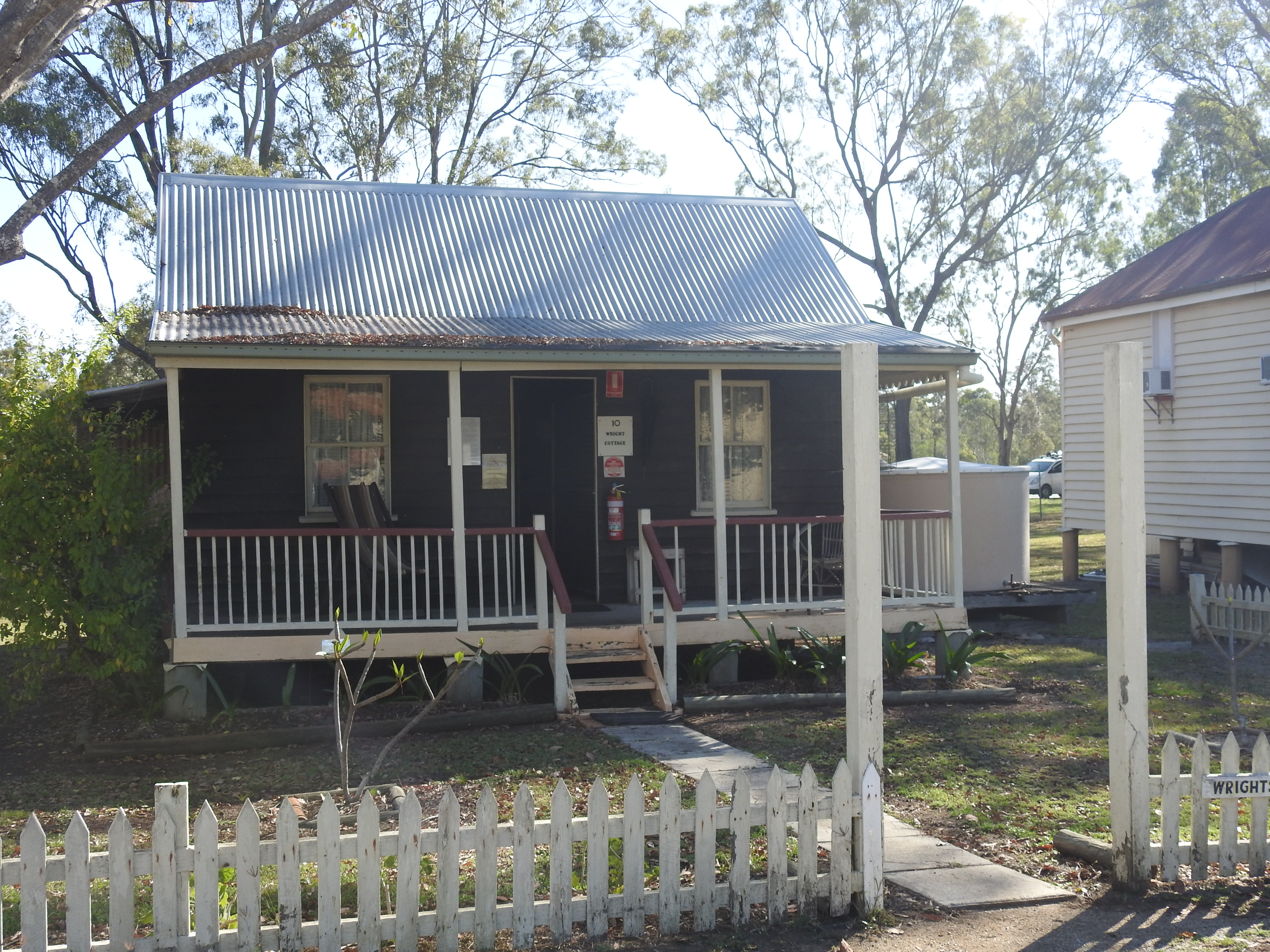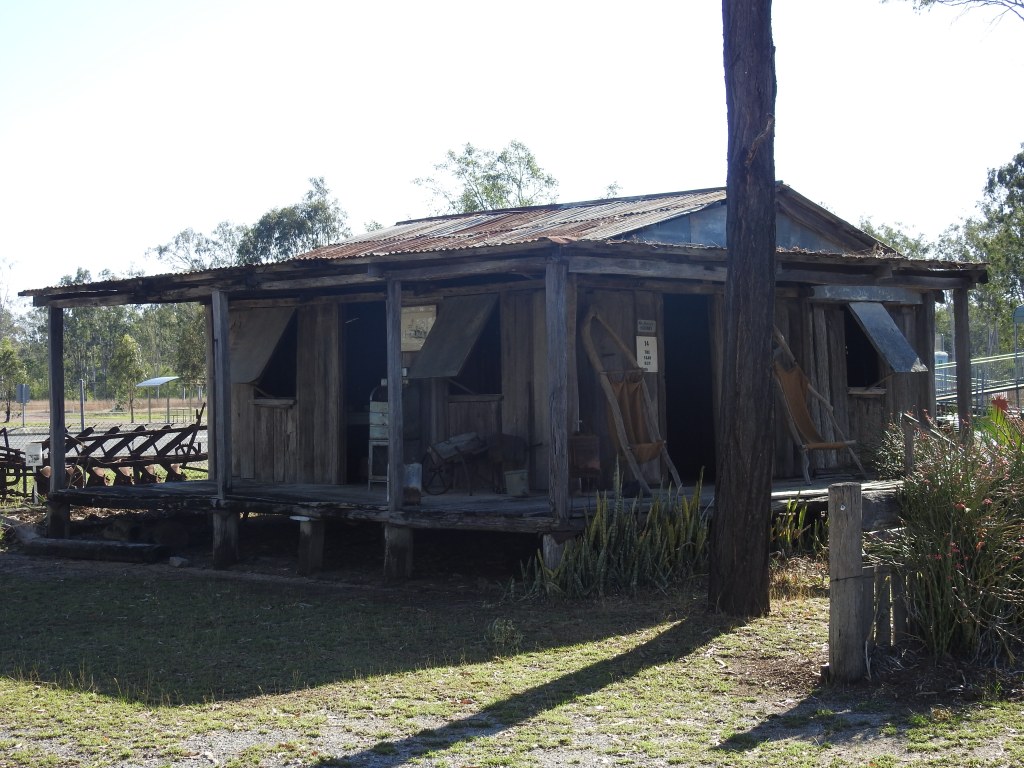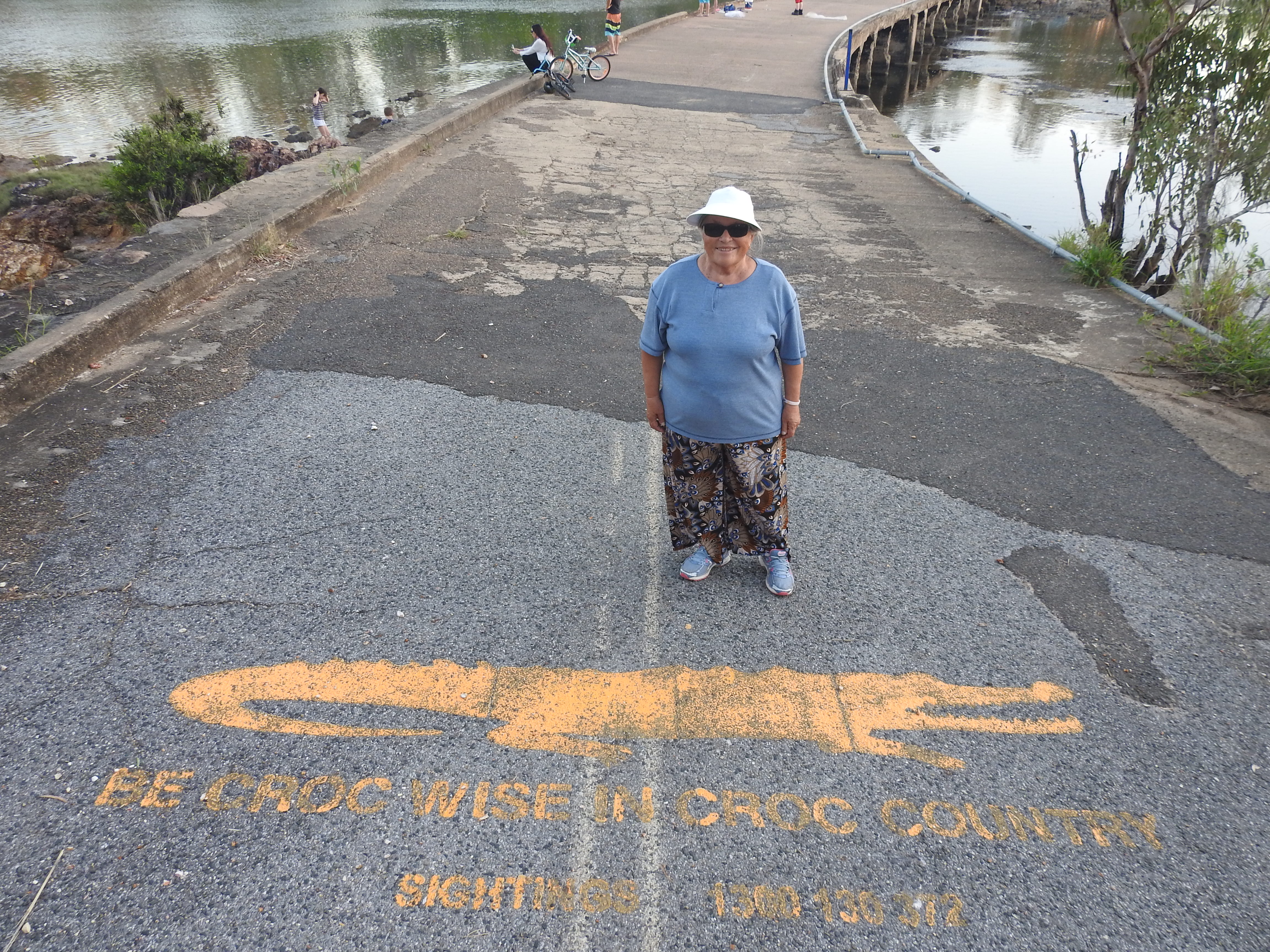 We set up then walk to the Calliope River Historical Village next door, this village consists of lots of old historical buildings that have been moved here from their previous locations, restored, furnished & open for display with a story on each building. The entry & food kiosk is the old Yarwun Railway Station building. We spend a good 2 hours walking around, looking at every building & the displays inside & reading the stories of each, it is very interesting. There is also a good collection of farm machinery & railway history. Inside the small Wright Cottage is an interesting display & we are surprised to find a possum resting on a shelf in a room suckling a young possum. There is even an old Freemason Hall completely furnished as it was left & the old school is also very interesting, Tereza & I reminisced about our memories of the desks with inkwells. The old Hazeldean Church is beautifully simple with an exquisite pulpit made by a farmhand of the time. We finished at 4pm just as the volunteers were packing up & leaving. Back at our van we relaxed with cheese, bikkies & a glass of red before walking down to the old bridge on the old Bruce Highway over the Calliope River. This old bridge is built on top of the old ford & you can still see the old rocks cemented in place to make the ford easier to cross. There are lots of people fishing for barramundi from this bridge as the tide comes in. It is remarkable watching the river flowing downstream over the rocks under the bridge then seeing at the next rockbar downstream the river flowing upstream with the tide. After a while the river is roaring over the rocks under the bridge as it floods upriver. The sunset is beautiful over the river & we walk back to our camp. The moon & stars are lovely & we have a nice cooling breeze blowing from the coast. Another great day.