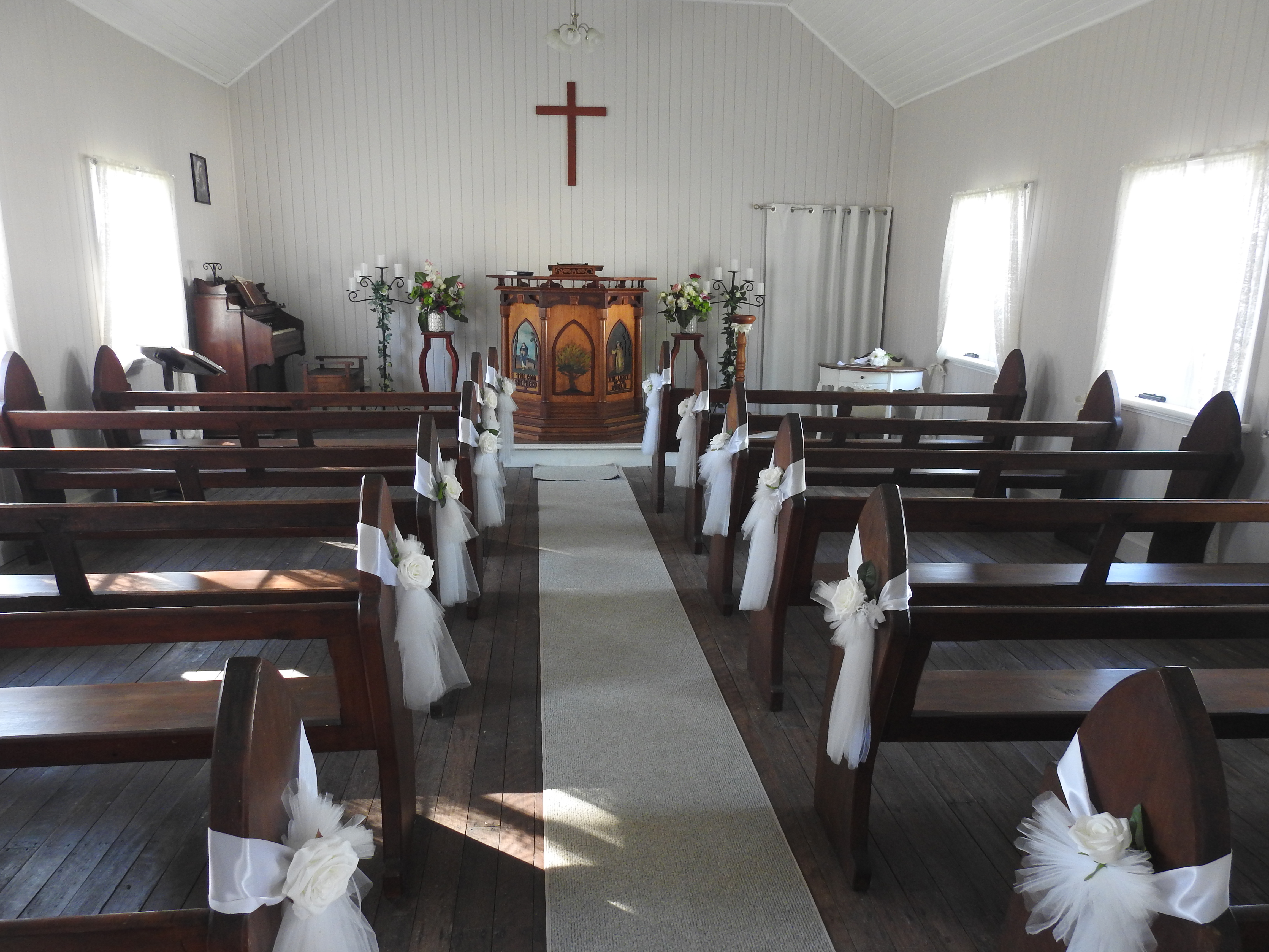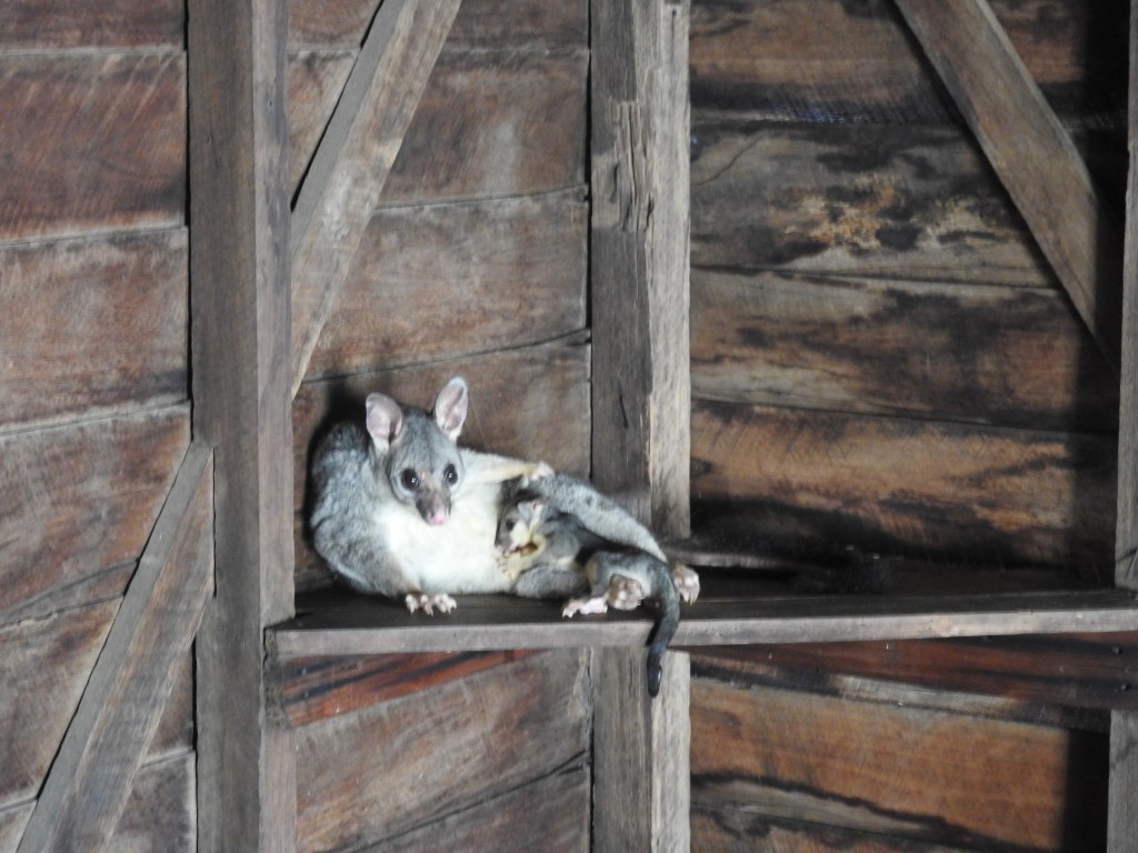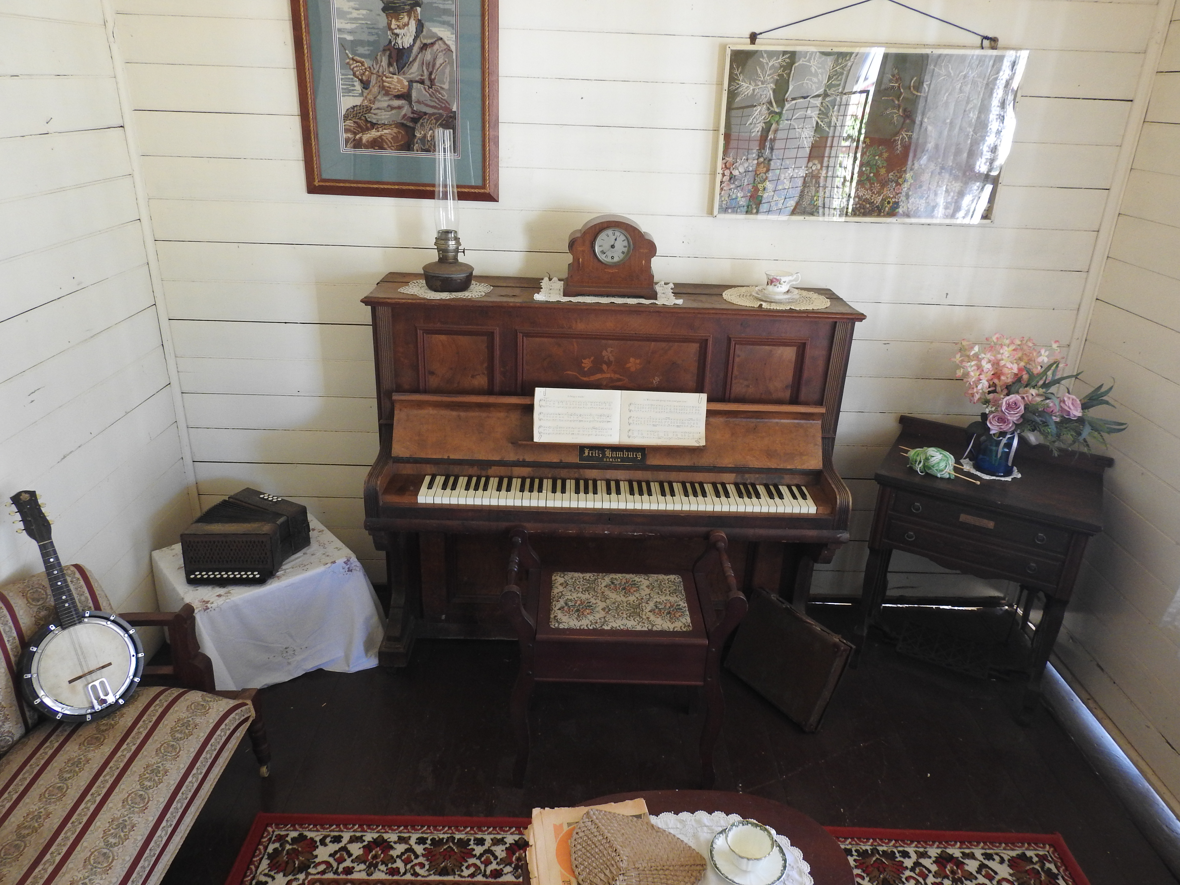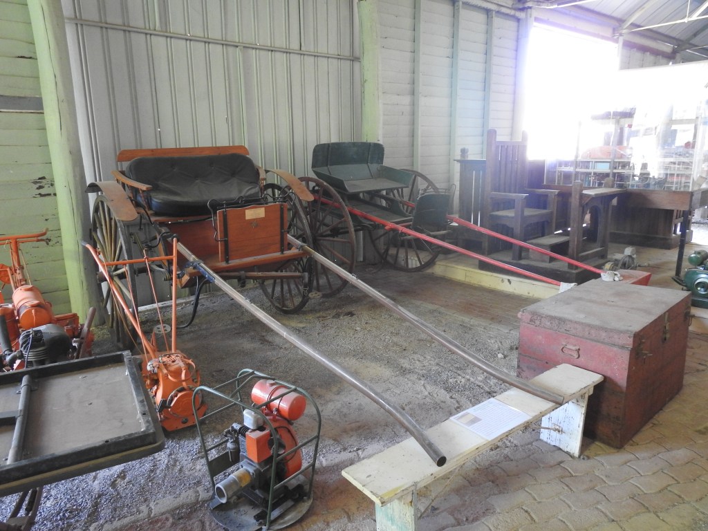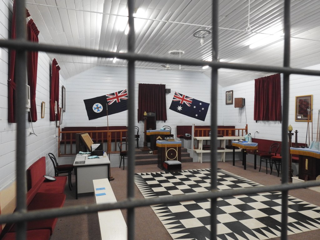 We set up then walk to the Calliope River Historical Village next door, this village consists of lots of old historical buildings that have been moved here from their previous locations, restored, furnished & open for display with a story on each building. The entry & food kiosk is the old Yarwun Railway Station building. We spend a good 2 hours walking around, looking at every building & the displays inside & reading the stories of each, it is very interesting. There is also a good collection of farm machinery & railway history. Inside the small Wright Cottage is an interesting display & we are surprised to find a possum resting on a shelf in a room suckling a young possum. There is even an old Freemason Hall completely furnished as it was left & the old school is also very interesting, Tereza & I reminisced about our memories of the desks with inkwells. The old Hazeldean Church is beautifully simple with an exquisite pulpit made by a farmhand of the time. We finished at 4pm just as the volunteers were packing up & leaving. Back at our van we relaxed with cheese, bikkies & a glass of red before walking down to the old bridge on the old Bruce Highway over the Calliope River. This old bridge is built on top of the old ford & you can still see the old rocks cemented in place to make the ford easier to cross. There are lots of people fishing for barramundi from this bridge as the tide comes in. It is remarkable watching the river flowing downstream over the rocks under the bridge then seeing at the next rockbar downstream the river flowing upstream with the tide. After a while the river is roaring over the rocks under the bridge as it floods upriver. The sunset is beautiful over the river & we walk back to our camp. The moon & stars are lovely & we have a nice cooling breeze blowing from the coast. Another great day.