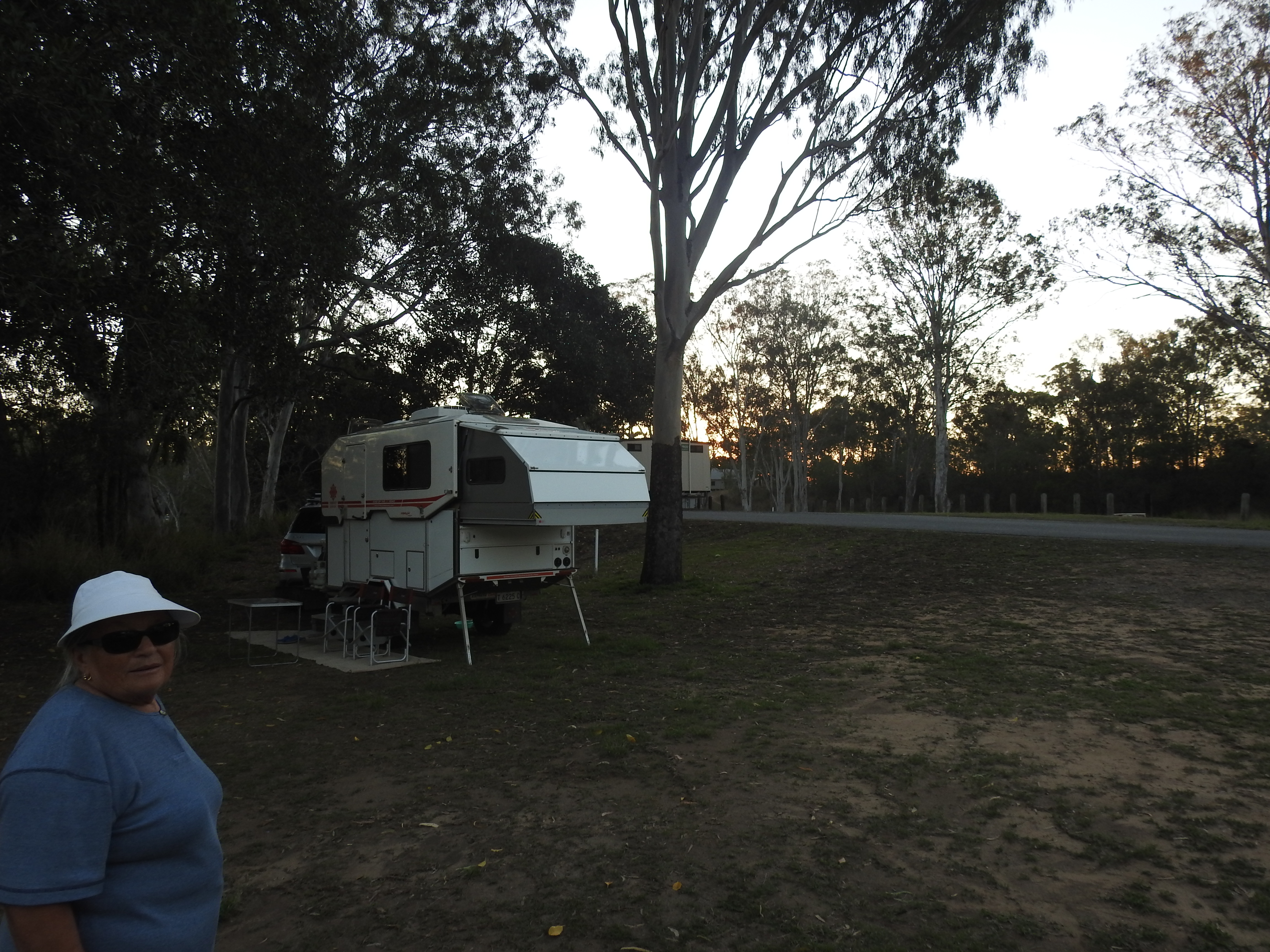 Back on the road & we pass the turn-offs to Tannum Sands & Gladstone before crossing the Calliope River & turning in to the Calliope River free camping area. We chose the north side to camp at & we find a nice spot with a good view of the river, in the shade & near the only toilet facility for both sides of the river.