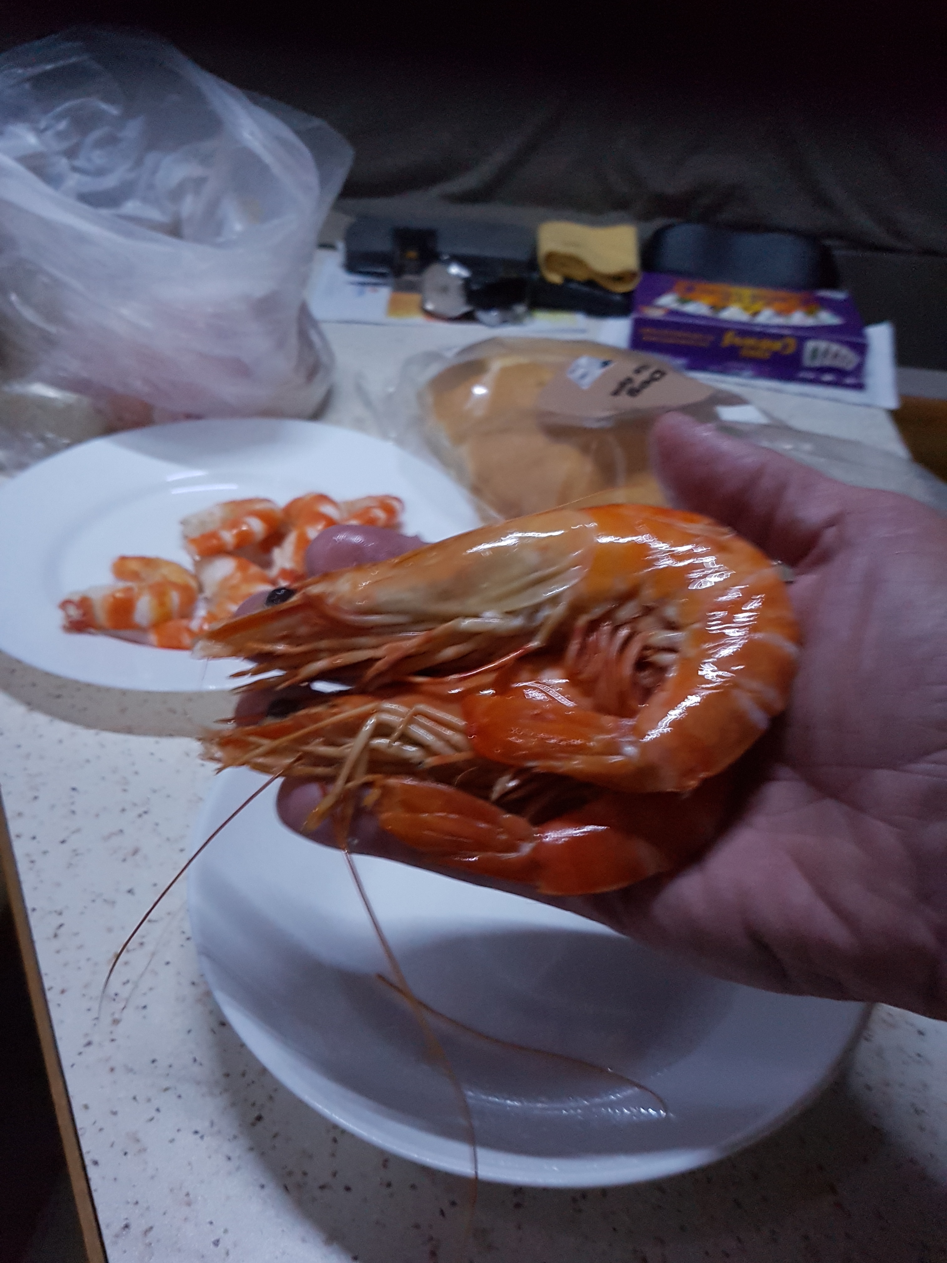 Our van has an ensuite shower & toilet for our personal use so we both take the luxury of a nice hot shower before dinner. It is shear luxury after 2 days of bush camping by the river, where we had no showers. Dinner is some fresh monster prawns in fresh bread rolls with some Tartare Sauce, simple but oh so yummy. More storms roll through, not as severe as previous ones thankfully. Another great day.