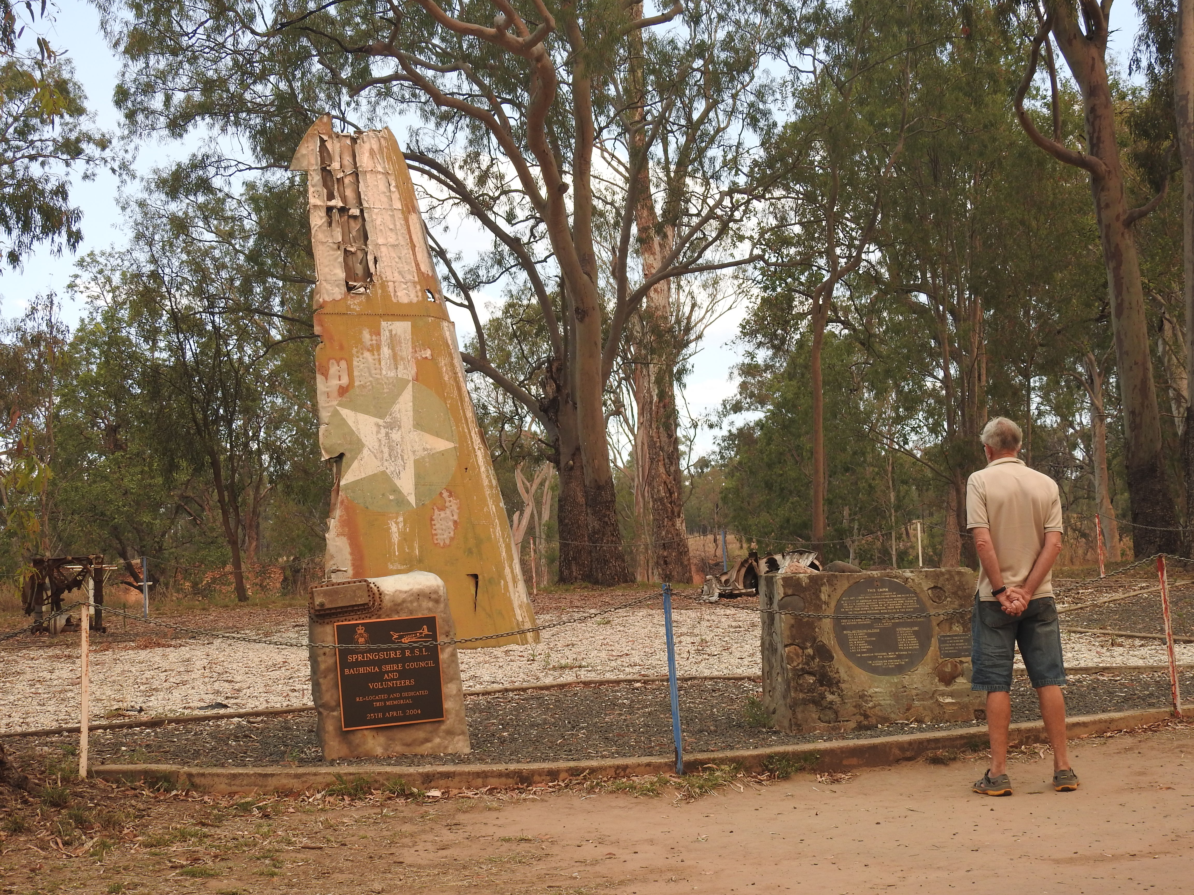We stop at the memorial to an aircraft crash in 1943 when a military plane flying from Darwin to Brisbane was engulfed in a storm & crashed at this site with total loss of life. It is a poignant reminder of how precious life is. The road into the national park is in very good condition & gets fairly twisty as we start to cross a few creeks & get into the National park. We are greeted into Takarakka Bush Camp by a big male kangaroo grazing near the creek crossing. This camp has very nice clean shower & toilet facilities. It is a very nice camp site because it has a lot of big trees & it is next to the creek, there are lots of birds flitting around. We set up in a very large site then go for a walk along Carnarvon Creek. It is lovely & quite & we meet & chat with a few other travellers. Back to camp then cheese, bikkies & red wine to finish another great day.