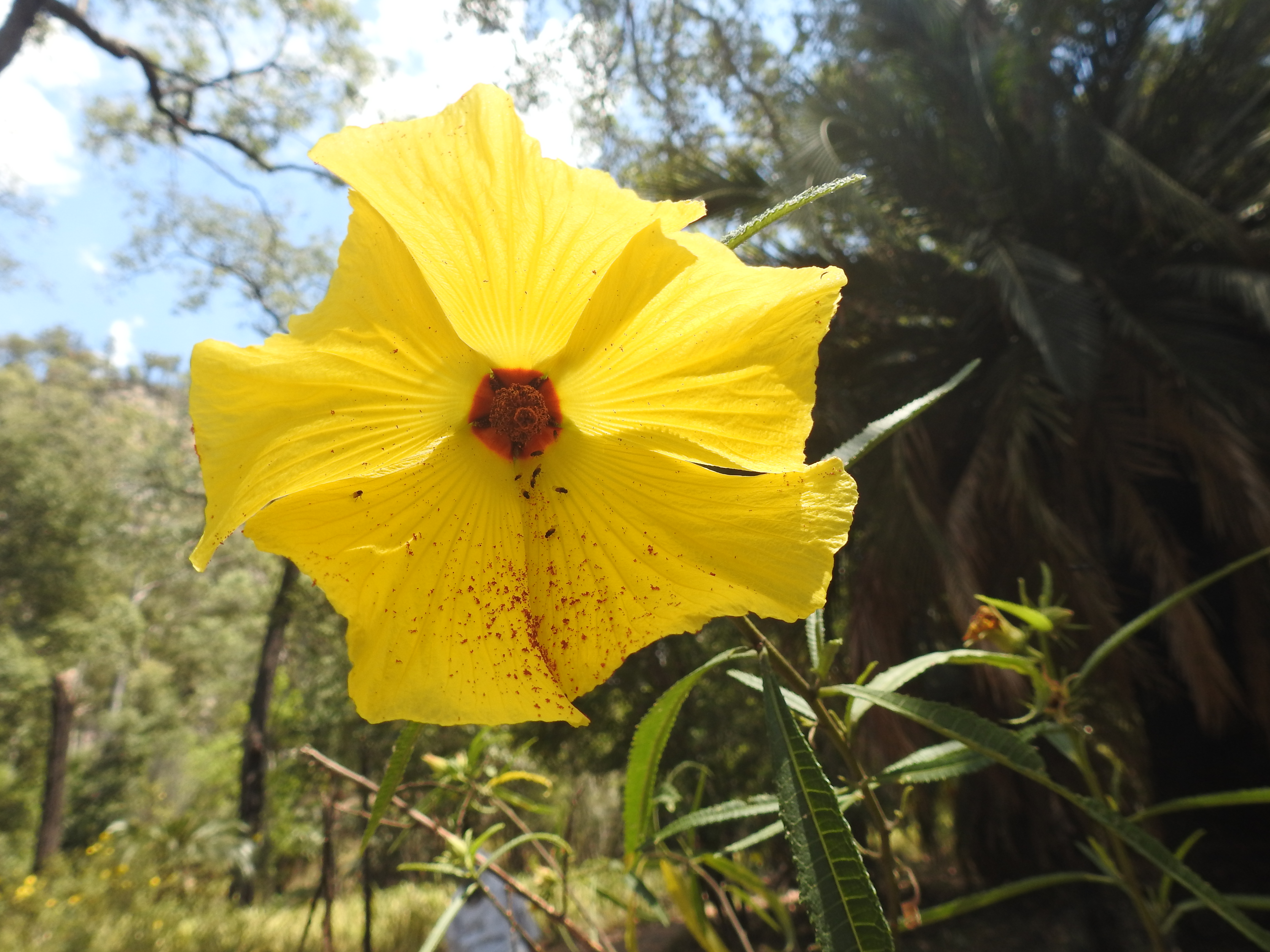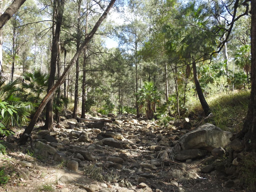 An early start (not early enough, we wanted to start walking at 6am) we were at the start of the walking track into Carnarvon Gorge National Park by 8am with lunch packed & lots of water in the backpack. We were here in 2010 & walked all the way to the end of the Gorge at Big Bend & back whilst looking at all the side gorges (each of the side gorges you have 600 metres more or less to walk in) too in one day. Today we are not so ambitious (those were the days, 11 years younger certainly makes a difference). There is a sign at the start of the track stating that the track will be closed at 3pm due to encroaching wildfires.