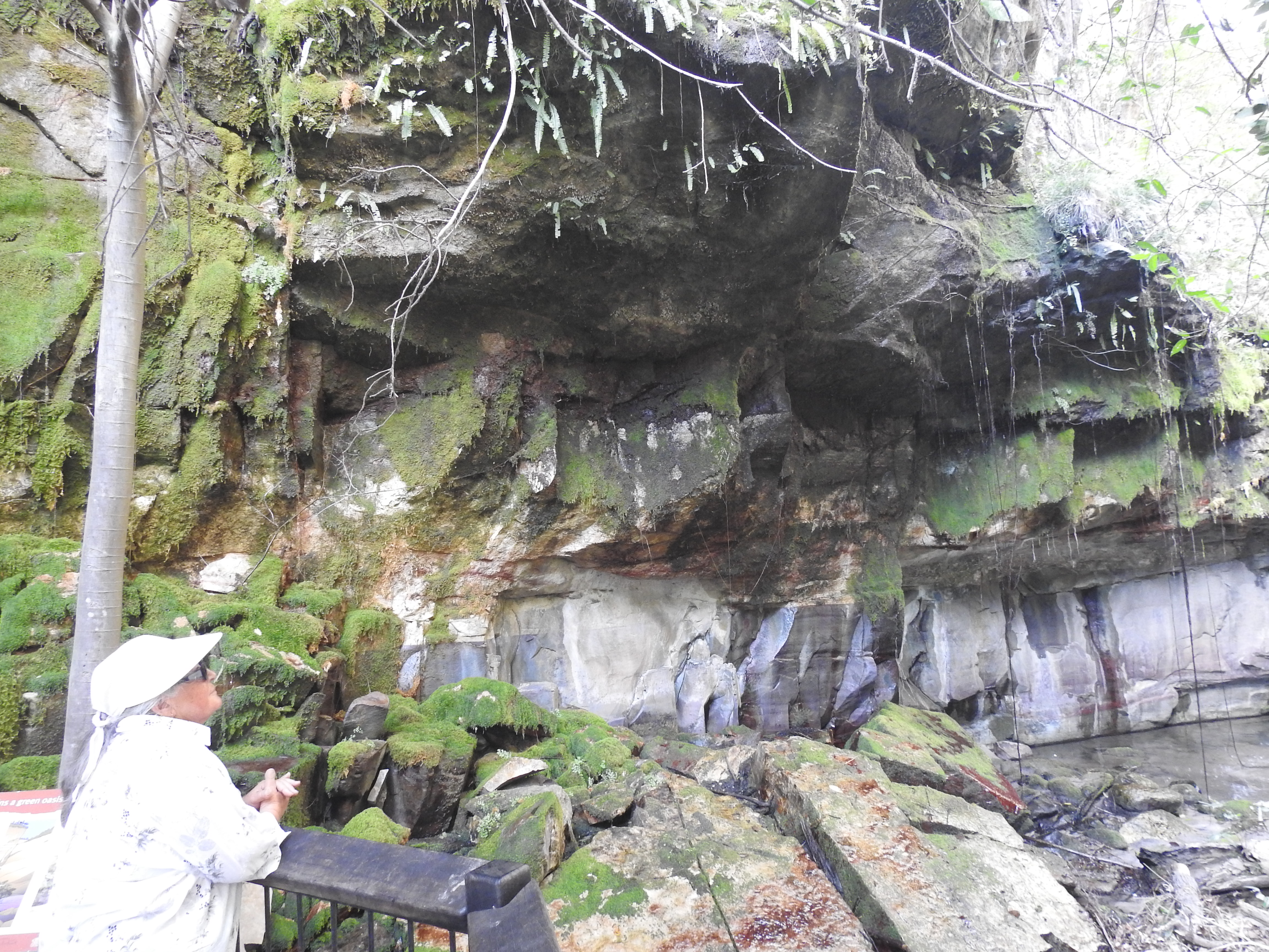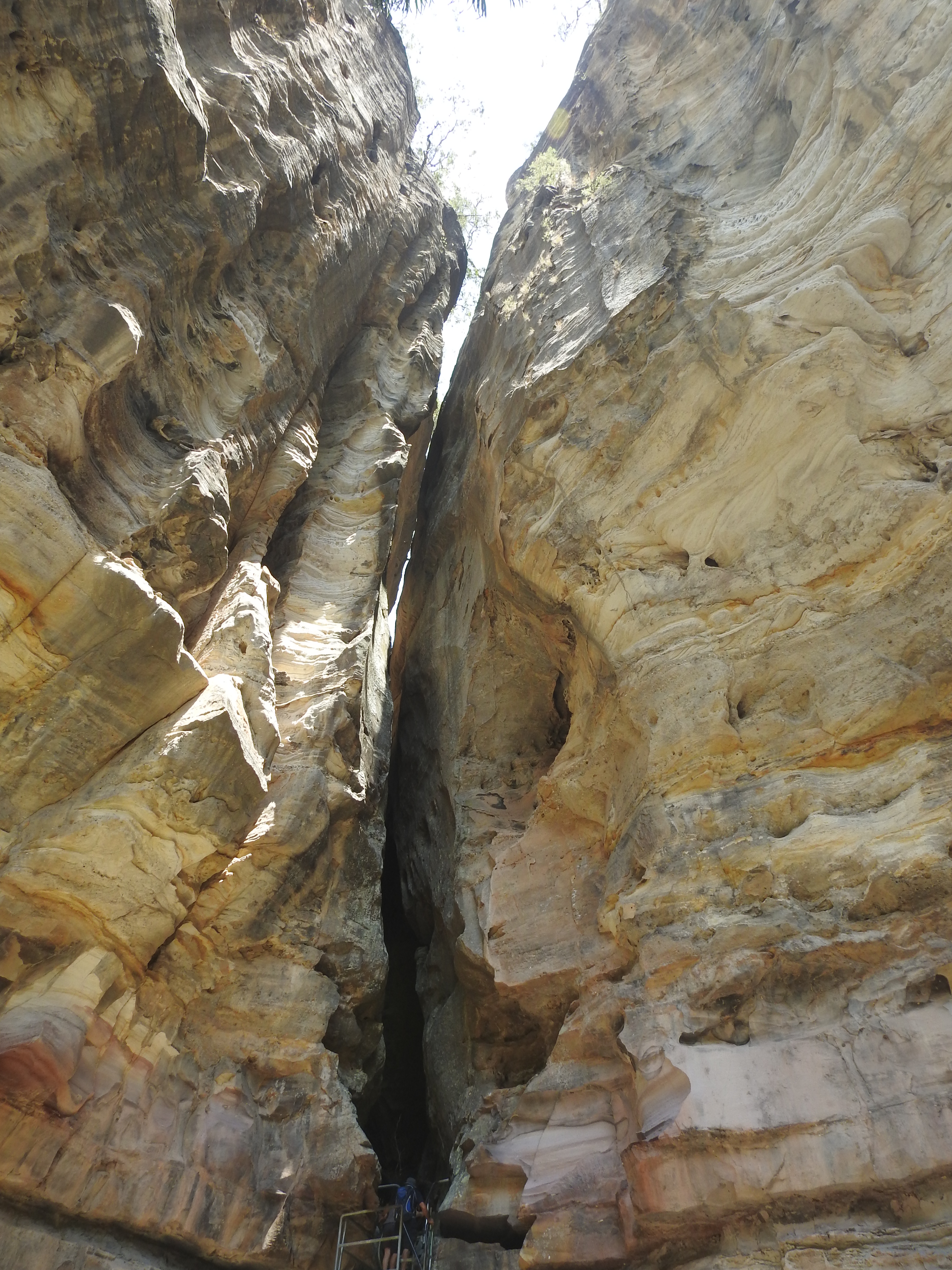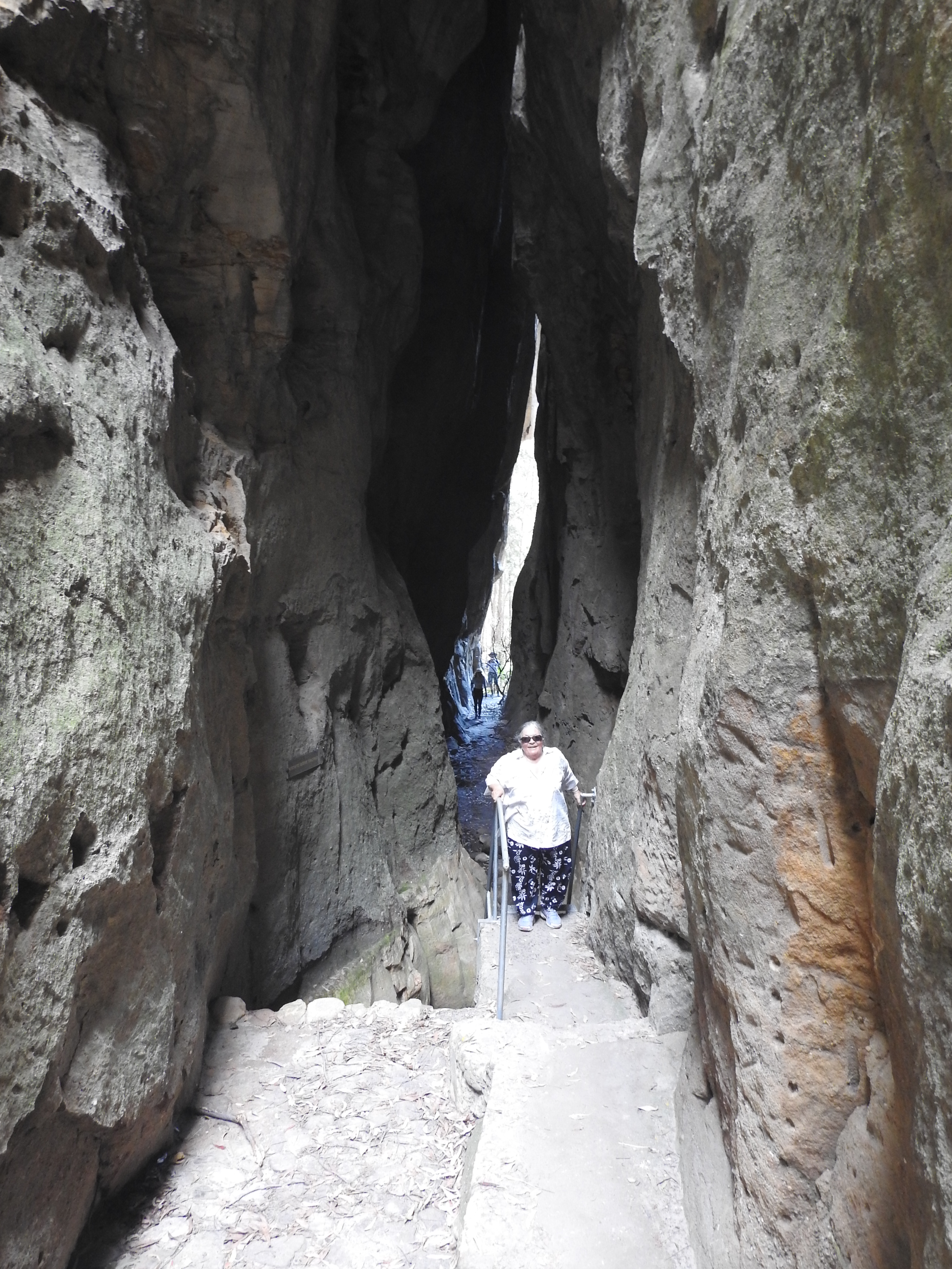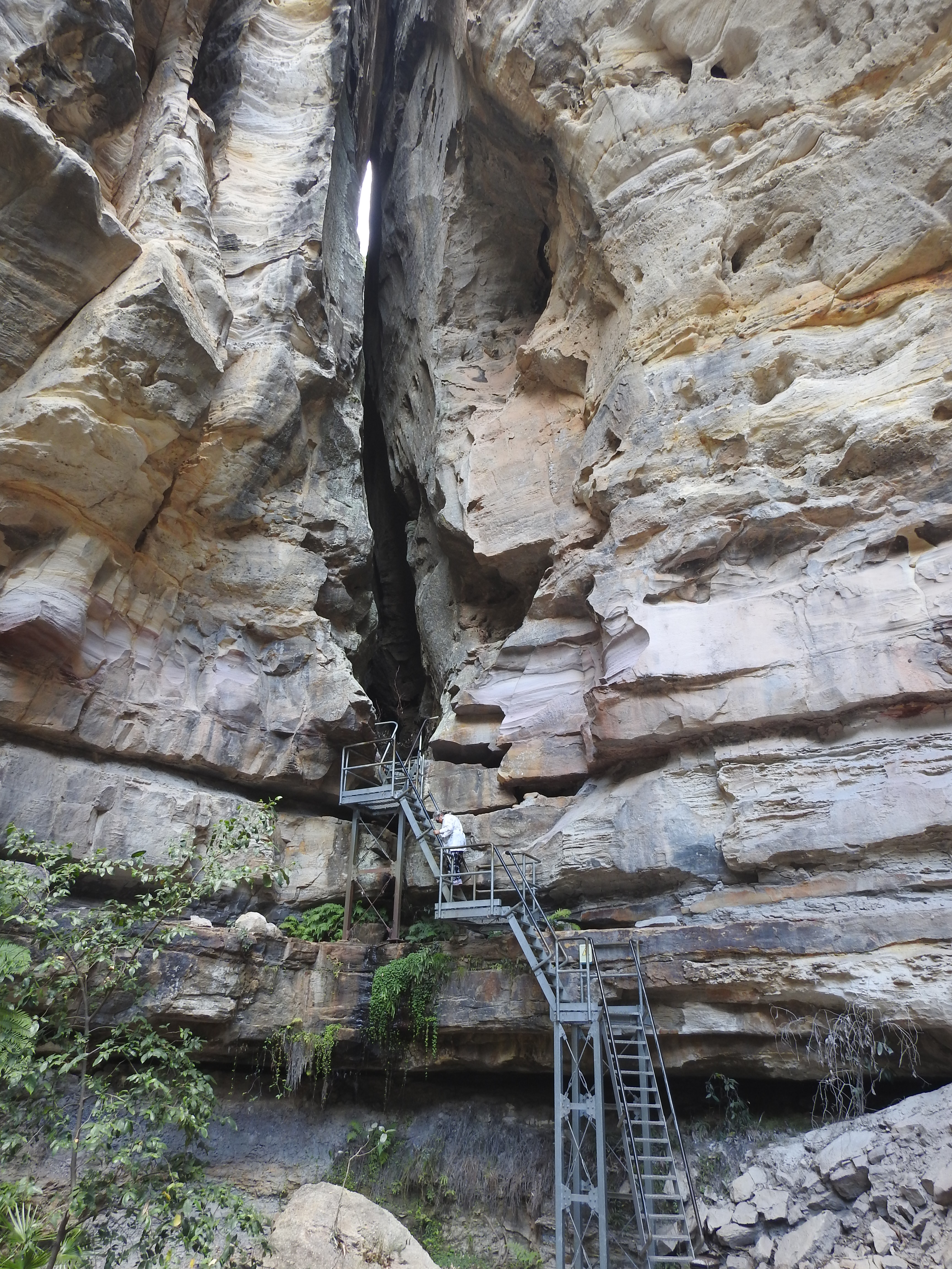 The turnoff to the Amphitheatre takes us up the side of the escarpment & is again tough going up & down many steps. The entrance to the Amphitheatre is part way up the side of the cliff & is reached by a series of ladders, more hard work. Inside is worth it all, again, it is stunningly beautiful & we sit on one of the benches & have our lunch whilst enjoying the coolness inside.