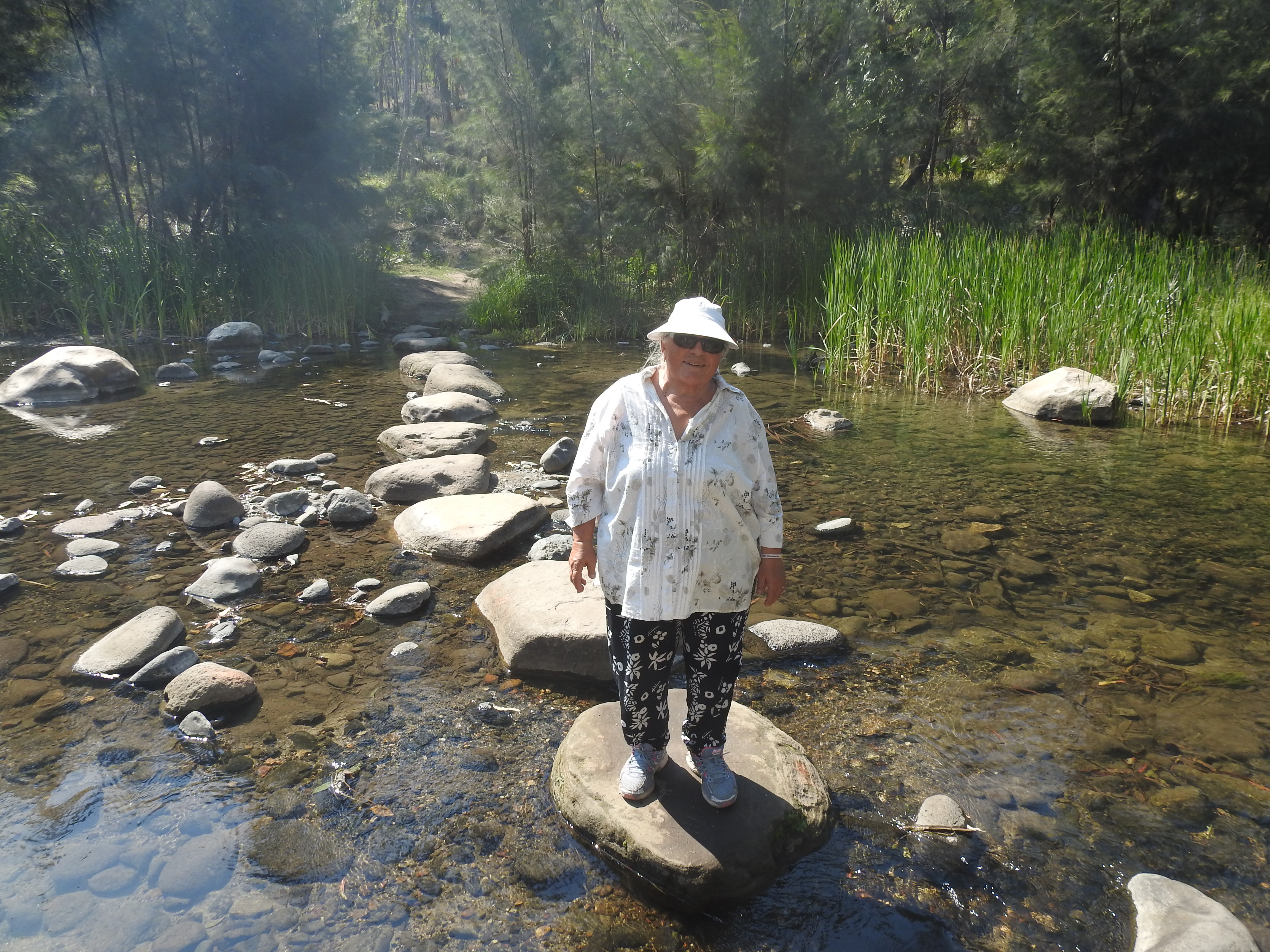 I am so very grateful that Ron was there with me with his helping hand every time we went over very rough terrain, steps and helping me from falling off the stepping stones into the creek. Stepping off the stepping stones into the cool water was very tempting. That last kilometre heading out I found in the heat very hard – thank you my sweet heart.