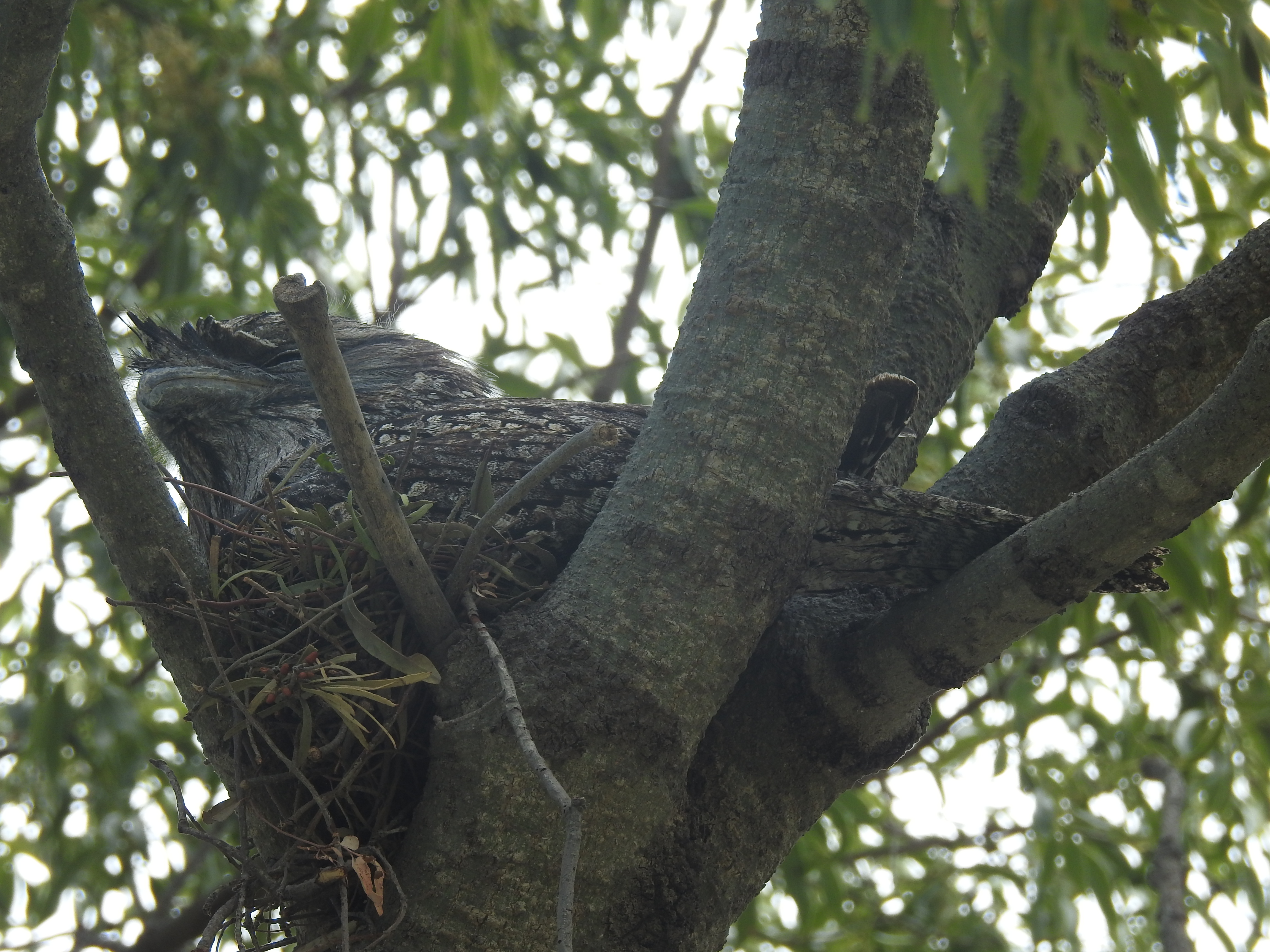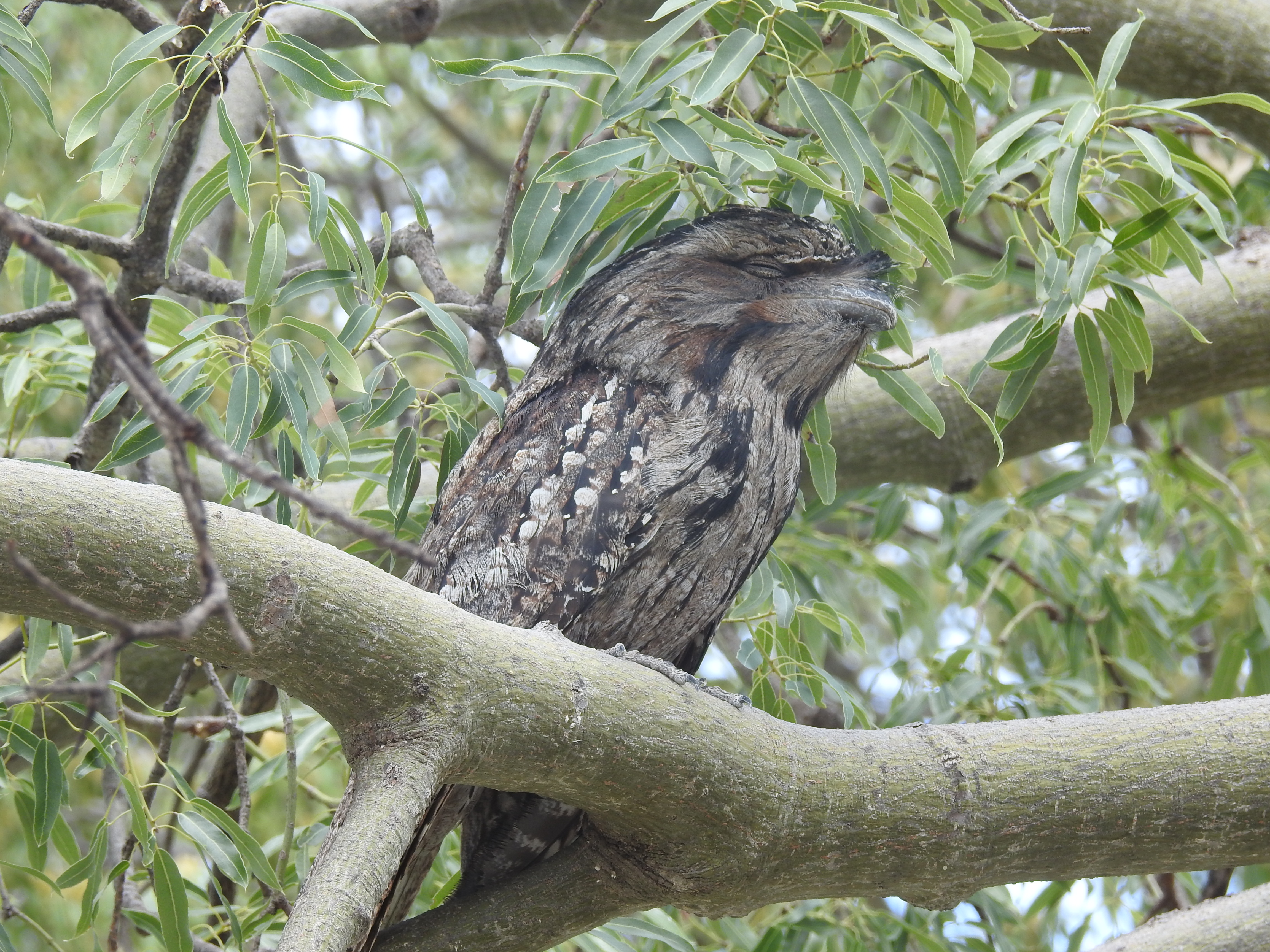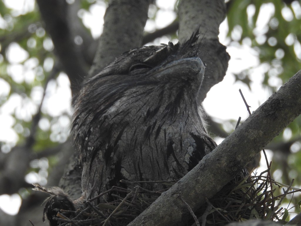 We get into Roma around 9.30am & drive a little bit out of town to the Gun Club, our campsite for the next few nights. There is lots of space & not many campers, the tourist season is just about finished, it is starting to get too hot. As we set up camp there are lots of shots that we hear. The local pistol club members are having a shoot this morning. There is a pair of Tawny Frogmouth birds nesting in a Queensland Bottle Tree nearby & we go to have a look at them, they stay rock solid still with their camouflage of feathers.