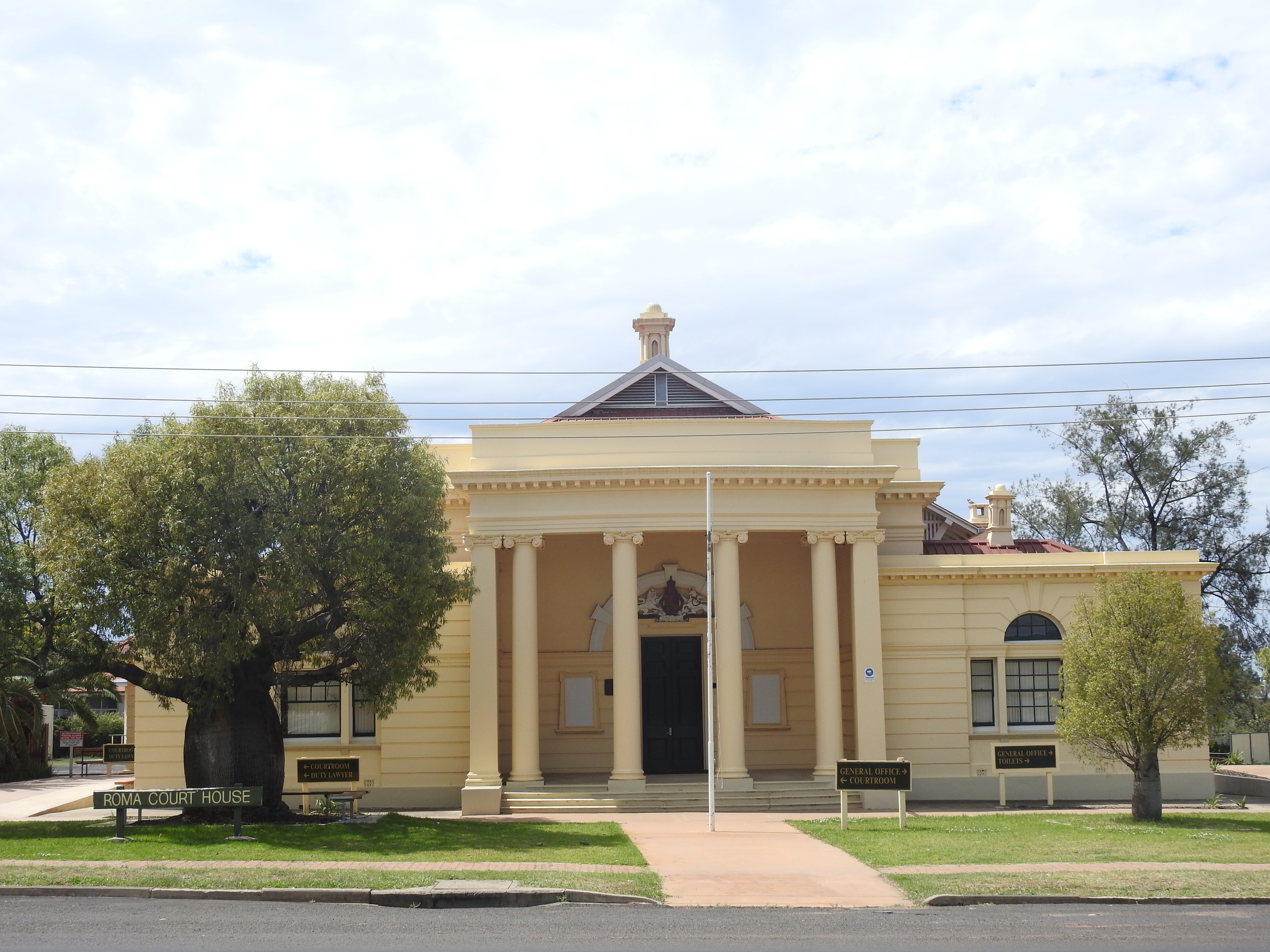 Next on the agenda is the big Bottle Tree, it is the largest Queensland Bottle Tree in Roma & Roma has lots & lots of bottle trees growing around town, there are hundreds. This tree is seriously big, it is so squat & round, we are impressed. We then have a bit of a random drive around Roma & come across the old council chambers & courthouse & police station plus the new courthouse, they are all nice old buildings with an interesting style about them.