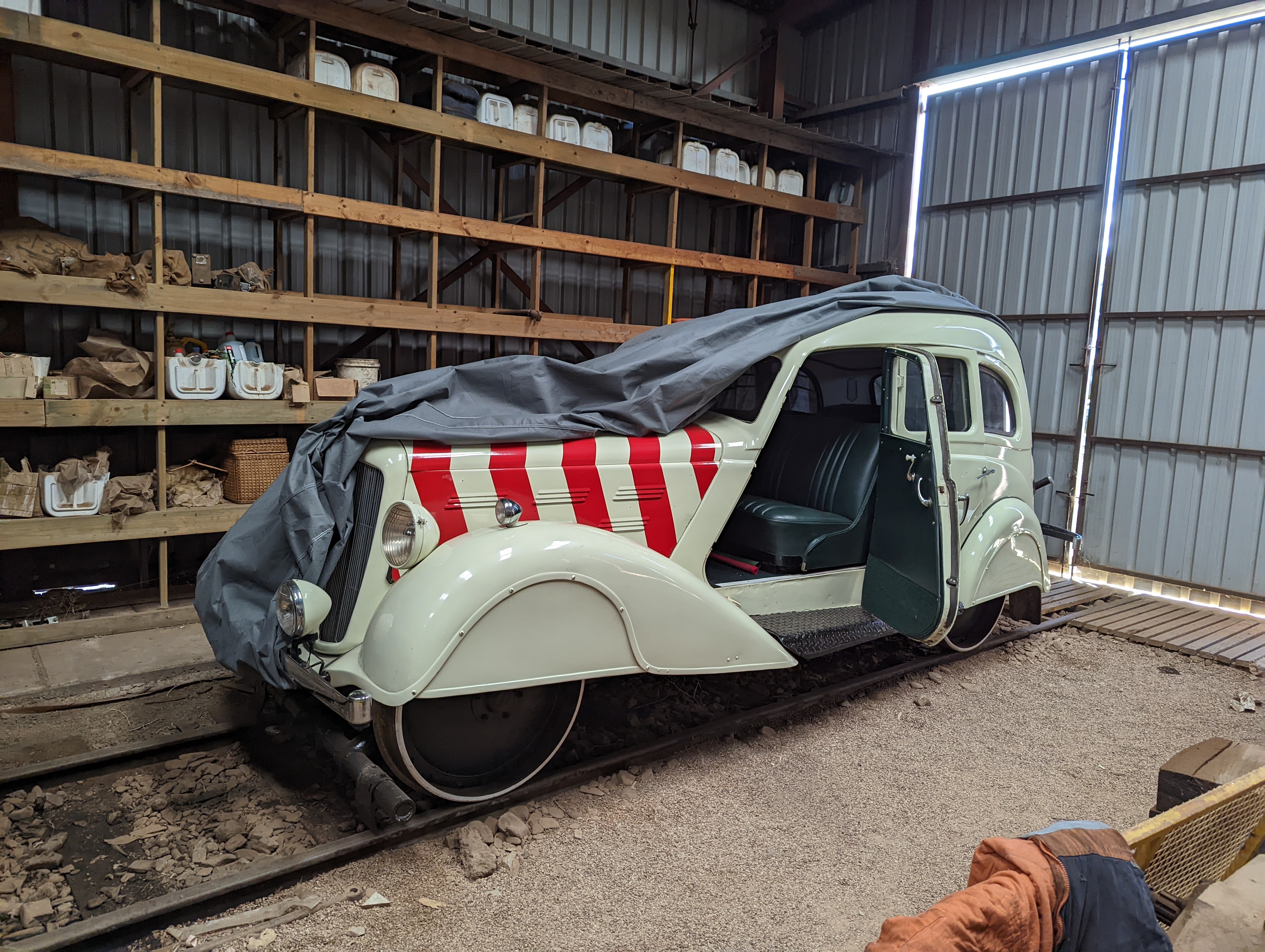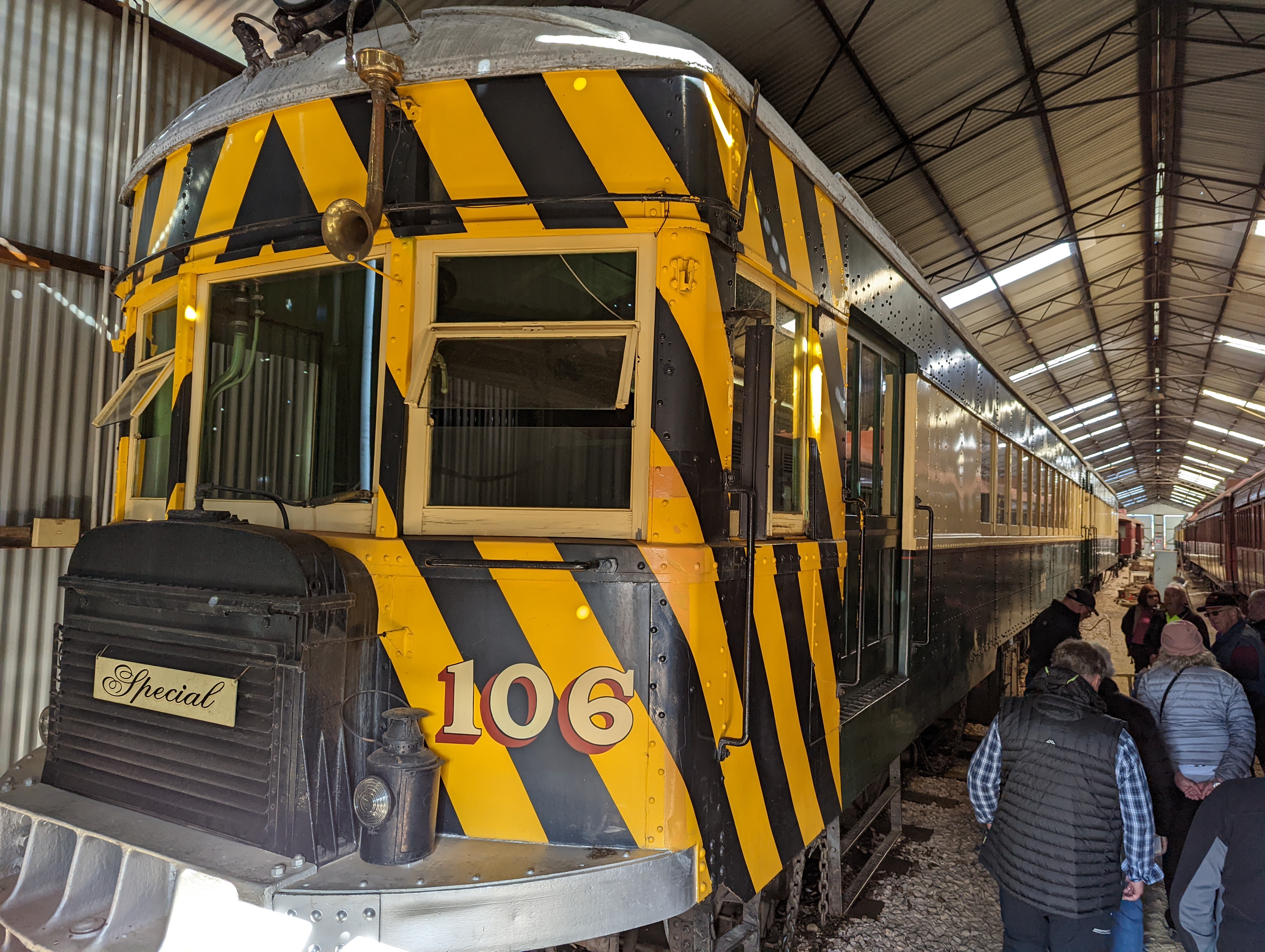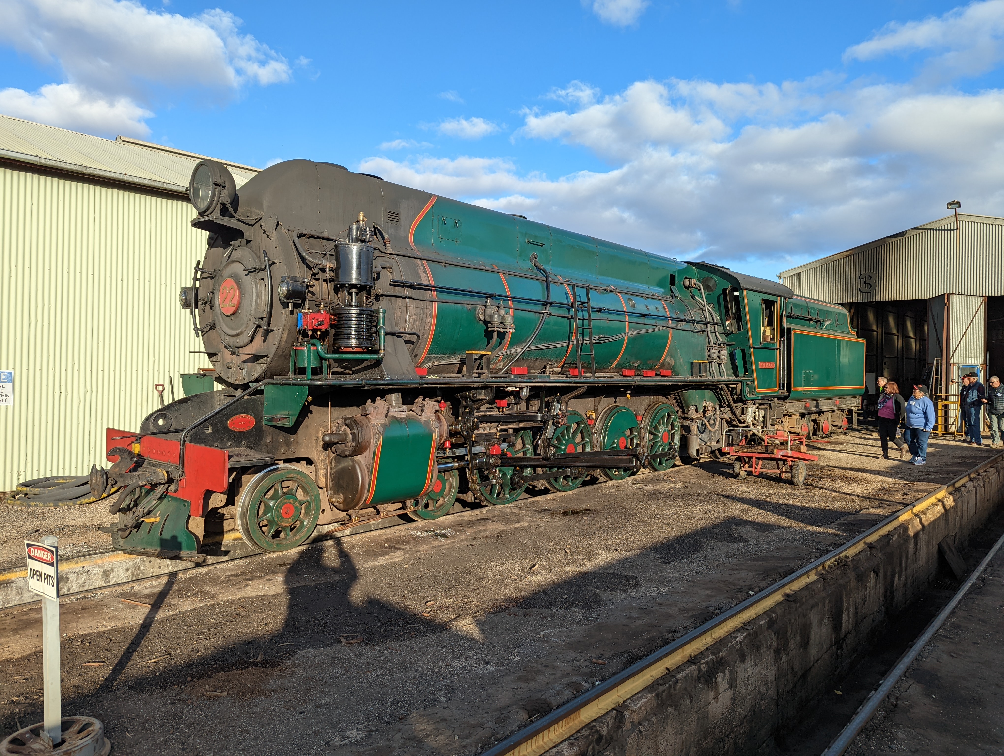 Our next venture is a special invitation for a tour around the railway workshops, a large collection of old train engines & carriages in all states of repair. Clive, our guide, is a wonderful source of knowledge. We are shown the part that failed in the steam engine & while we are there the volunteer mechanic replaced the part. It is all so interesting, the volunteers have done an amazing job with all the train stuff they have.
