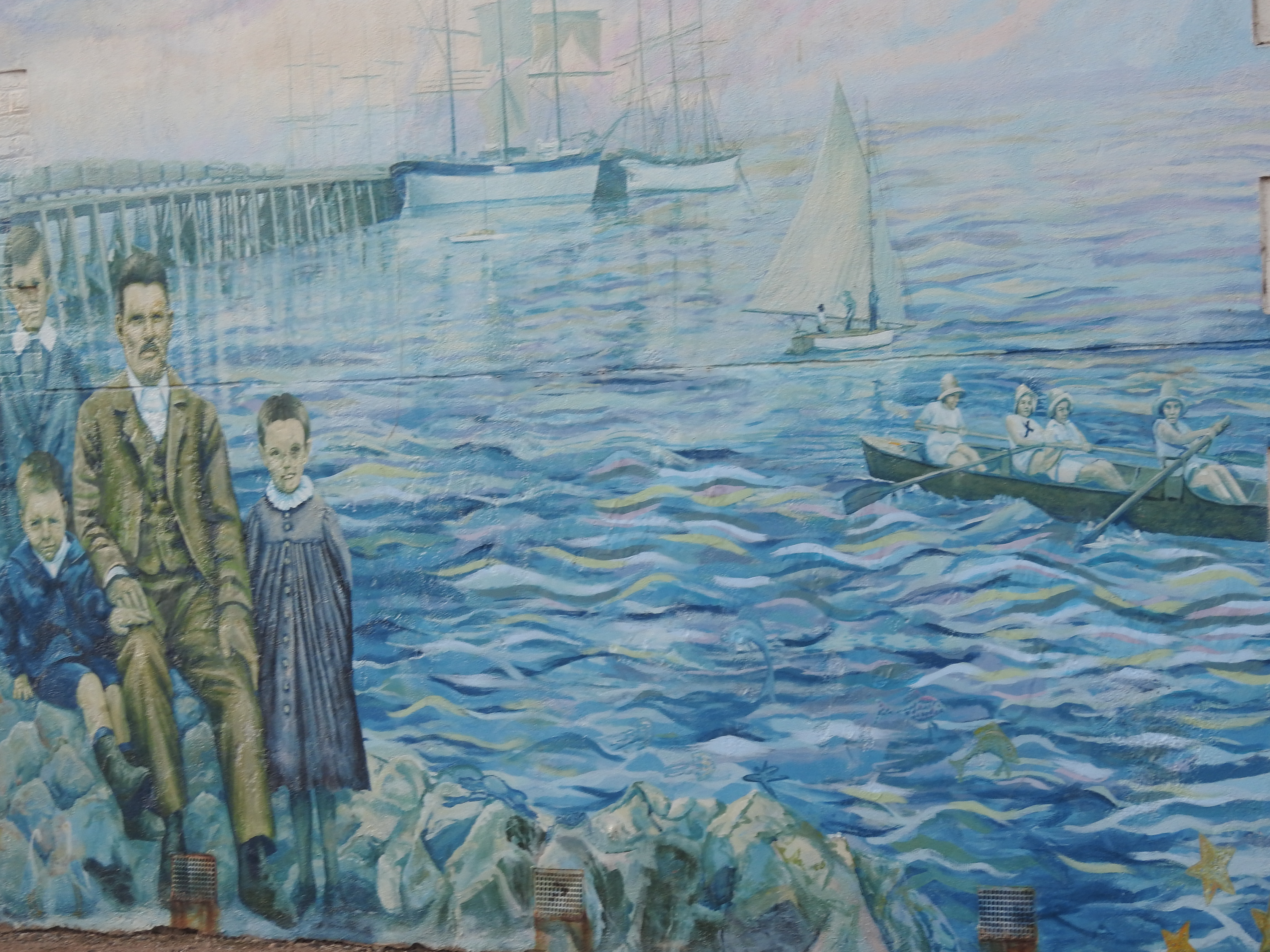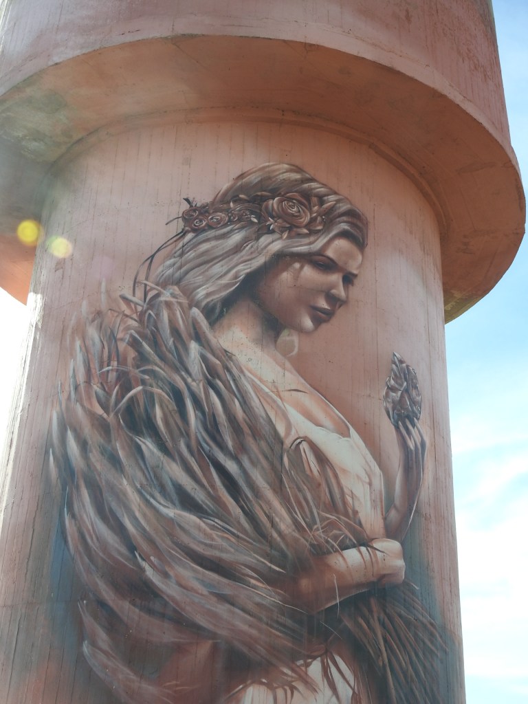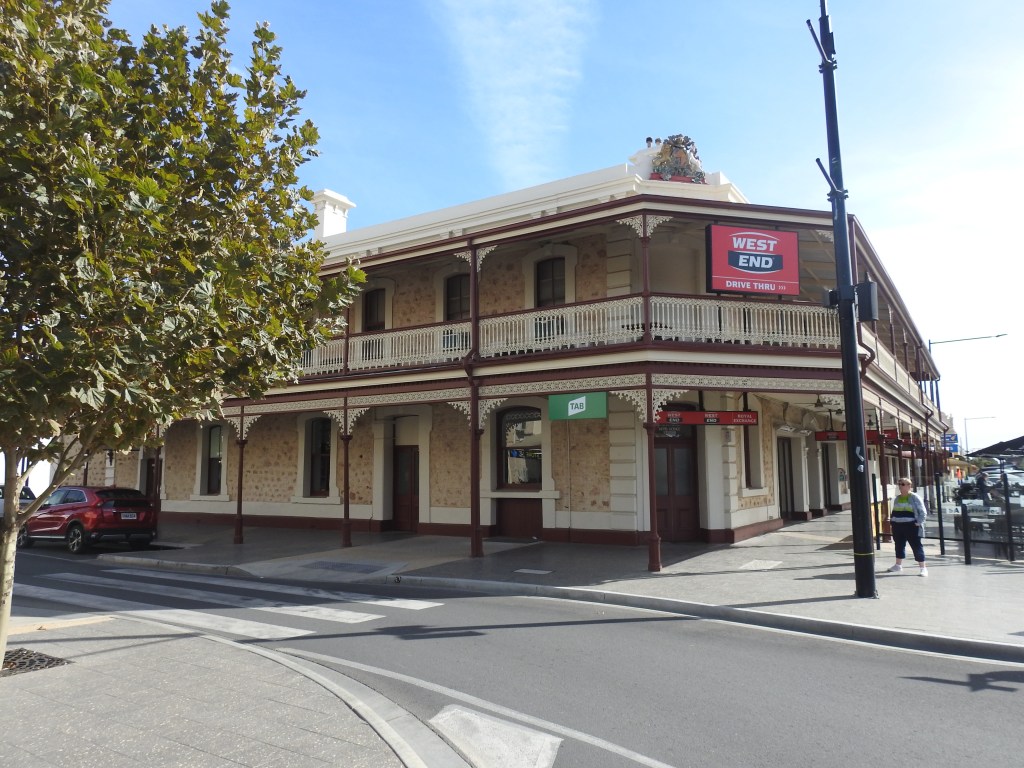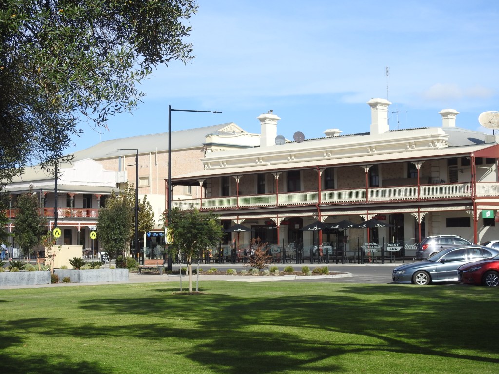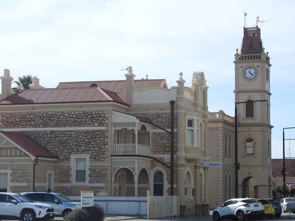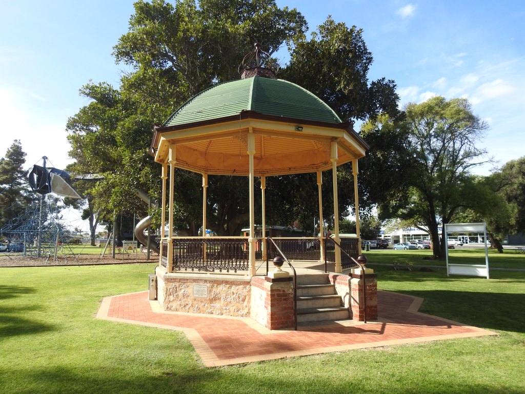 Off to Moonta this morning, only a short drive & we head to the Moonta Mine Museum, bad luck, it opens at 1pm. The little train that takes you around the old mine only works on Wednesdays, Saturday & Sundays, bad luck, we missed out! So off to Kadina, another short drive. Kadina is a very nice & well-kept town. We stop & walk around the main shopping area, full of beautiful old stone buildings built mainly in the late 1800s when the area had lots of wealth from copper mining. There are some beautiful murals painted on some of the walls around town & on the old rail water tower. The park opposite the town hall is beautiful & well maintained with a nice rotunda, built in 1897.