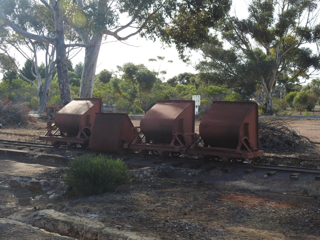 Time to return to the Moonta Mine Museum, formerly a school for the mine worker’s children. At one time the school had 1,100 children enrolled. The school closed in 1968 due to low numbers of students & was taken over by the National Trust. On arrival we see the little train with people sitting in it. The driver hurries us up, while explaining that it is a special train for a group, but they didn’t all turn up. Well, we lucked the train in! Very pleasant informative way to see & hear all the stories about the mine & mainly Cornish people who emigrated for free to work in it. Moonta had the most Cornish people living outside of Cornwall in England. On arrival back at the Moonta Mine rail station we rushed in to see some of the museum, once again very interesting, we wish we had more time but we could not let the poor stay too long behind his closing time.