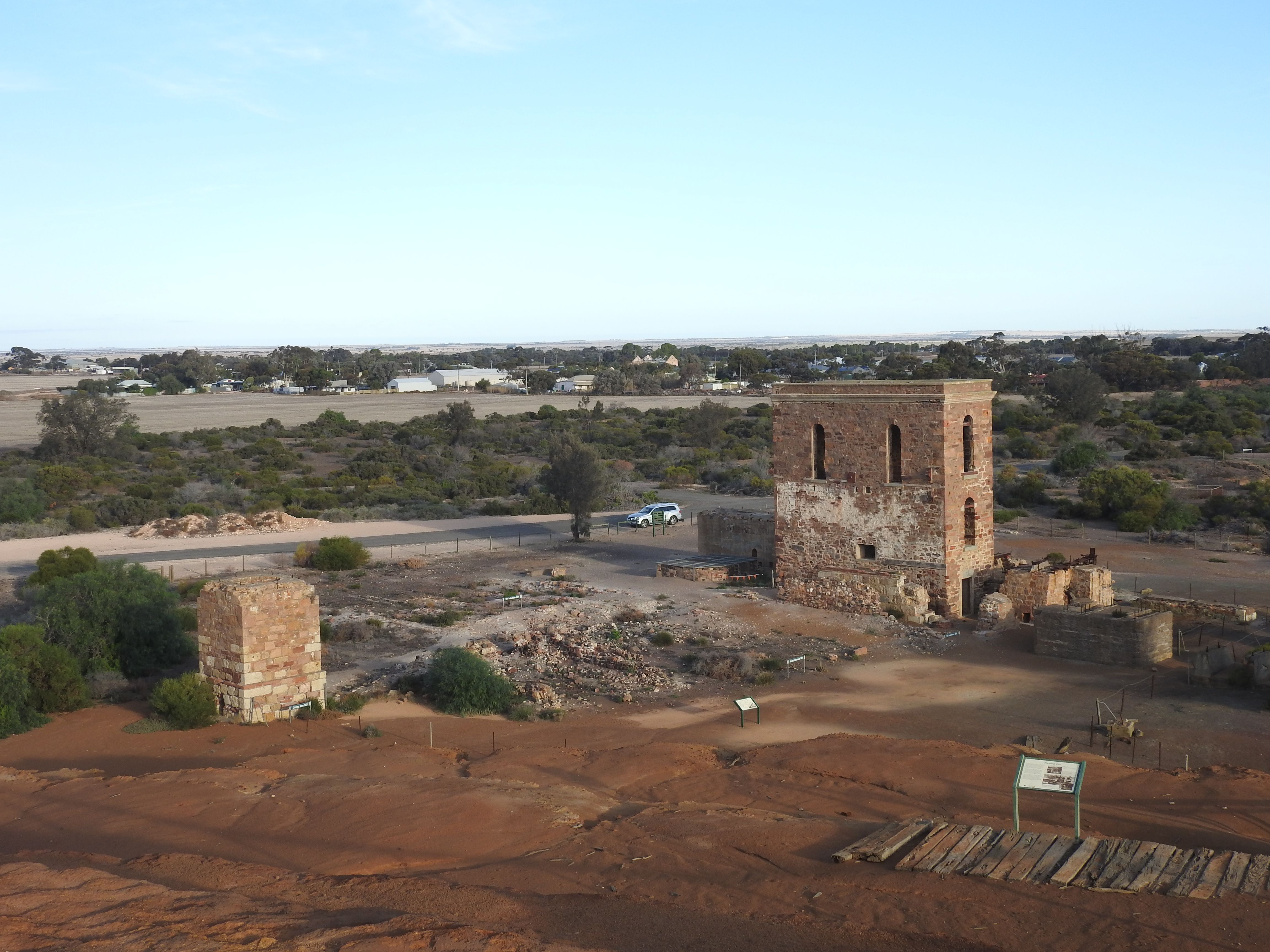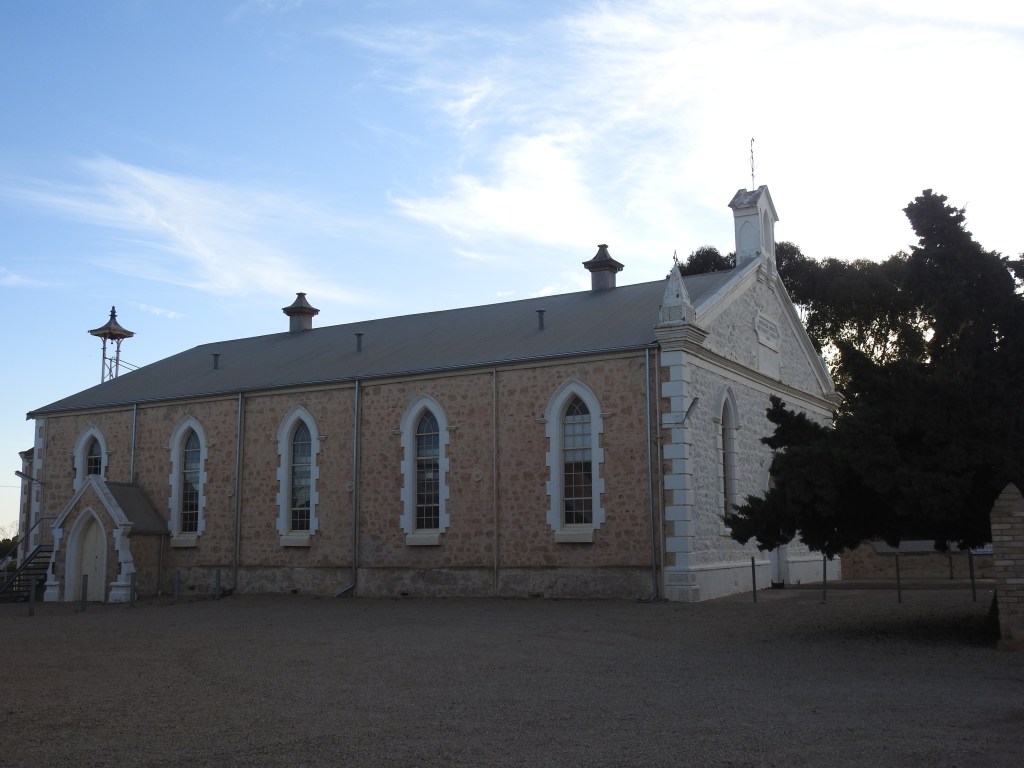 After the museum closed we drove out onto the mine site & looked at some of the scattered remnants of the mining site. At the old Crusherhouse from 1869, which is next to a giant tailings heap, it has a rough walkway to the top, we walked up & enjoyed a great view over the former mining site. There are still relics of stone structures scattered around the landscape. We then had a look at the Methodist church built for the miners, it could hold 1200 people, they had to build an additional mezzanine to accommodate everyone. It was compulsory to attend church (unless you had a good excuse). Next we drove around some of the old miner cottages that are left & some are still inhabited today. Life was very hard for these people. Back to Wallaroo & we watched a beautiful sunset over the ocean from the beach in front of the van park, a great way to finish a great day.