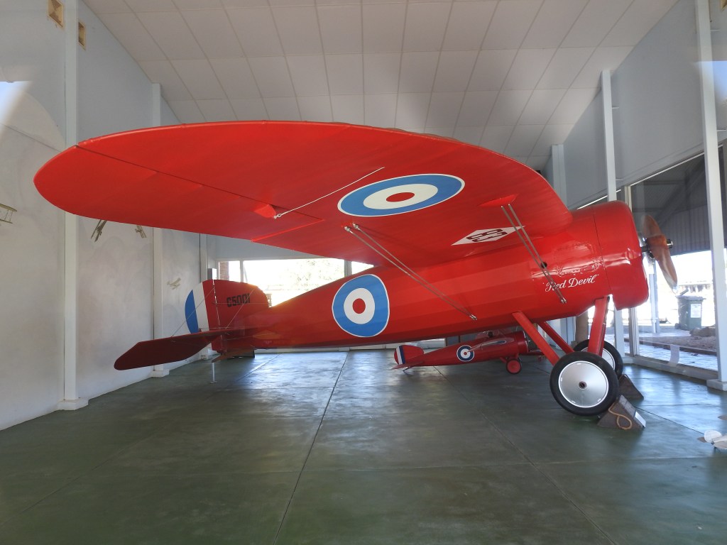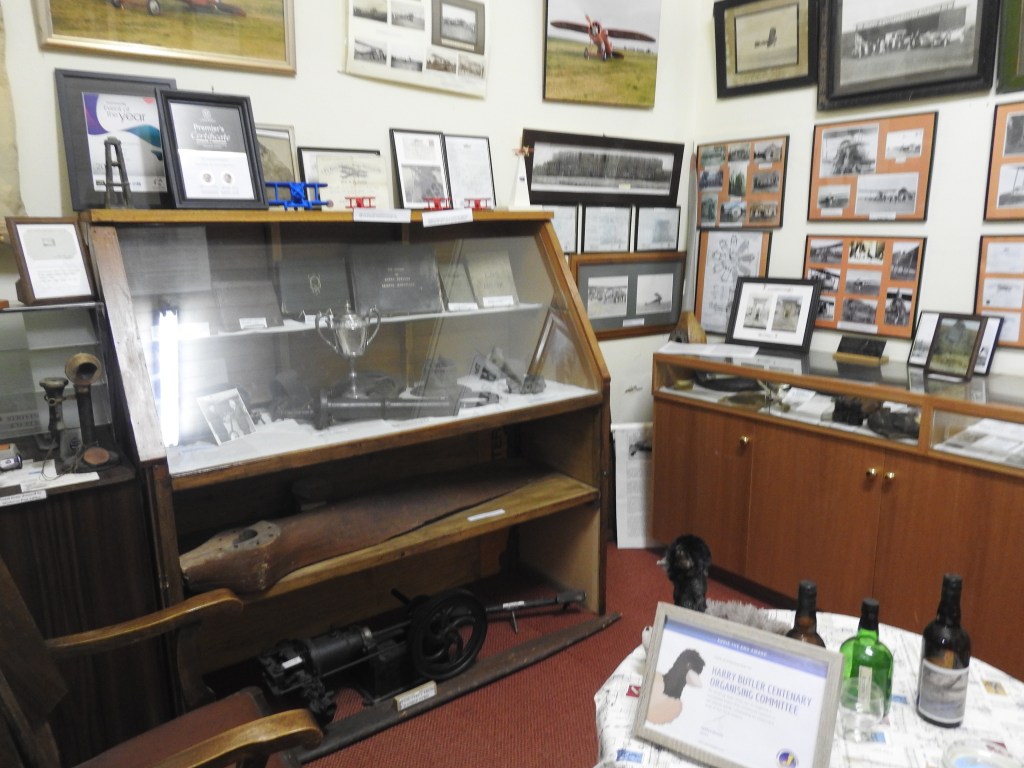 A short walk across the road from the camp to see the red Bristol monoplane on display that was owned & flown locally by Captain Harry Butler, a renowned local pilot from the early 1900s. His story is very interesting, a clever young man. He joined the Royal Flying Corp in World War I & trained pilots in England. A short walk up the street & by the time we get there the Minlaton Museum is open. The lady inside is very friendly & helpful & the museum is full of memories of the old days of Minlaton, including a section on Captain Harry Butler including his life story & memorabilia & broken parts from his other crashed plane, an Avro. We spent a fair time in the museum, again it is really interesting.