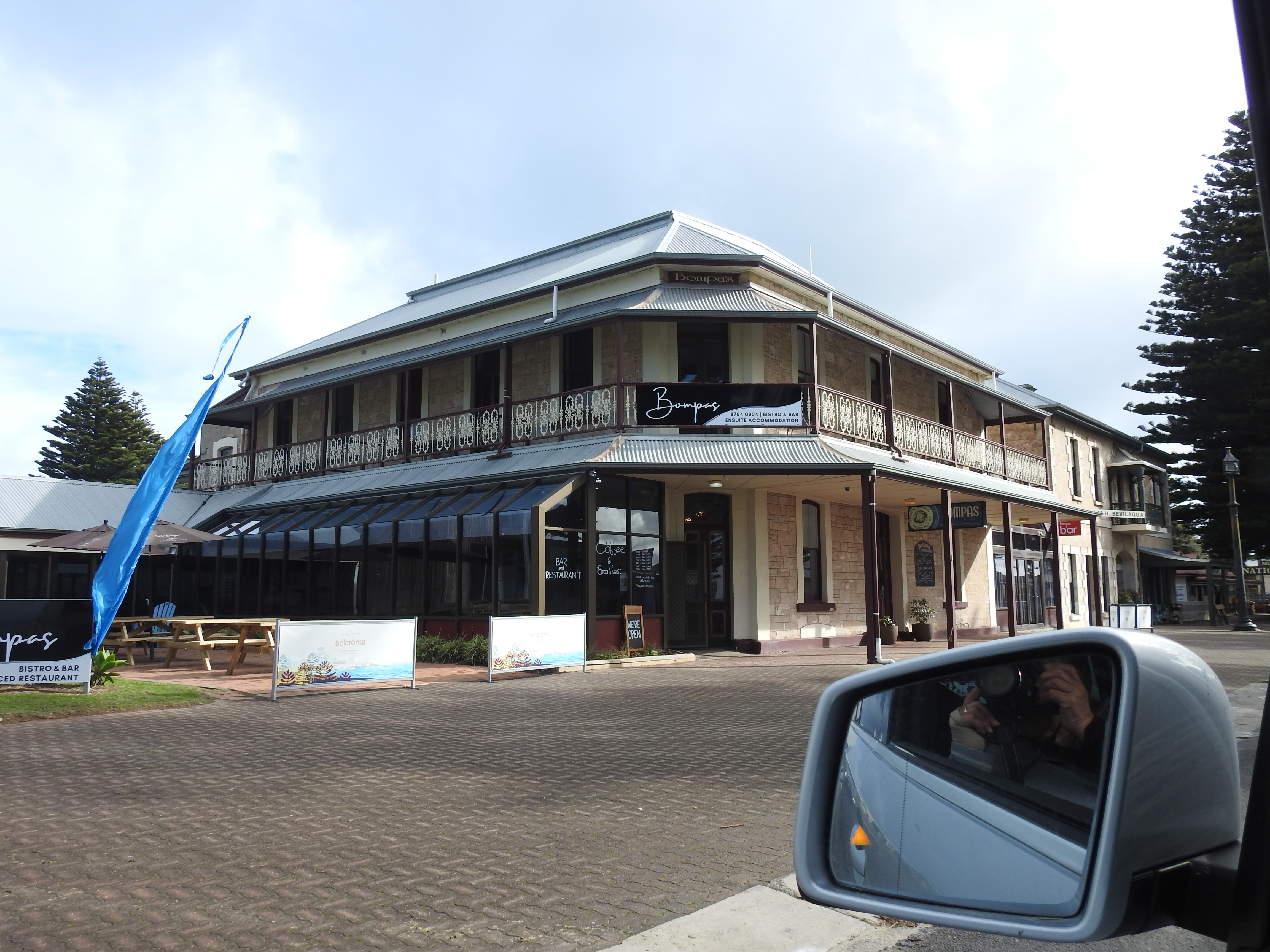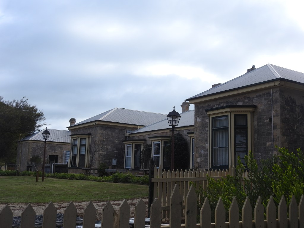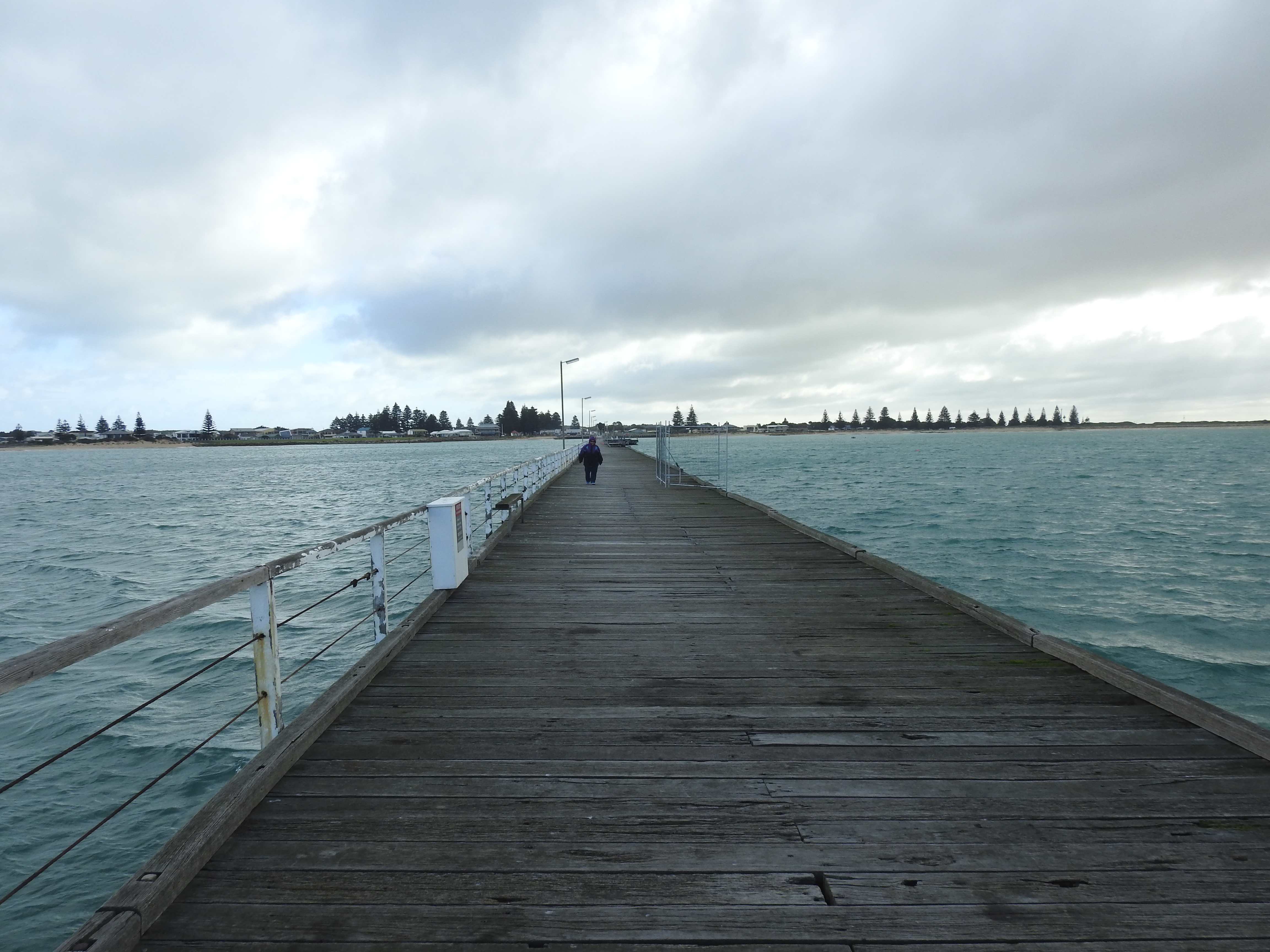 Beachport is a pretty spot, we drove the signposted Bowman scenic drive around town & along the ocean front, it certainly is scenic, absolutely beautiful. We drove up & down hills & pulled over many times to enjoy the rugged coastal views, though the wind was blowing & it was very cold. We stopped at the Beachport jetty for a walk, it is the 2nd longest jetty in South Australia at 772 metres. It was cold & got colder as we walked out & back, strangely enough, we were the only people on the jetty that whole time. Thankfully there is a seafood café at the start of the jetty & we got out of the cold for a warm drink & hot seafood. I tried a crayfish pie & Tereza had the ever reliable salt & pepper squid, yum. On the way out we admired some of the old stone buildings, very nicely preserved.