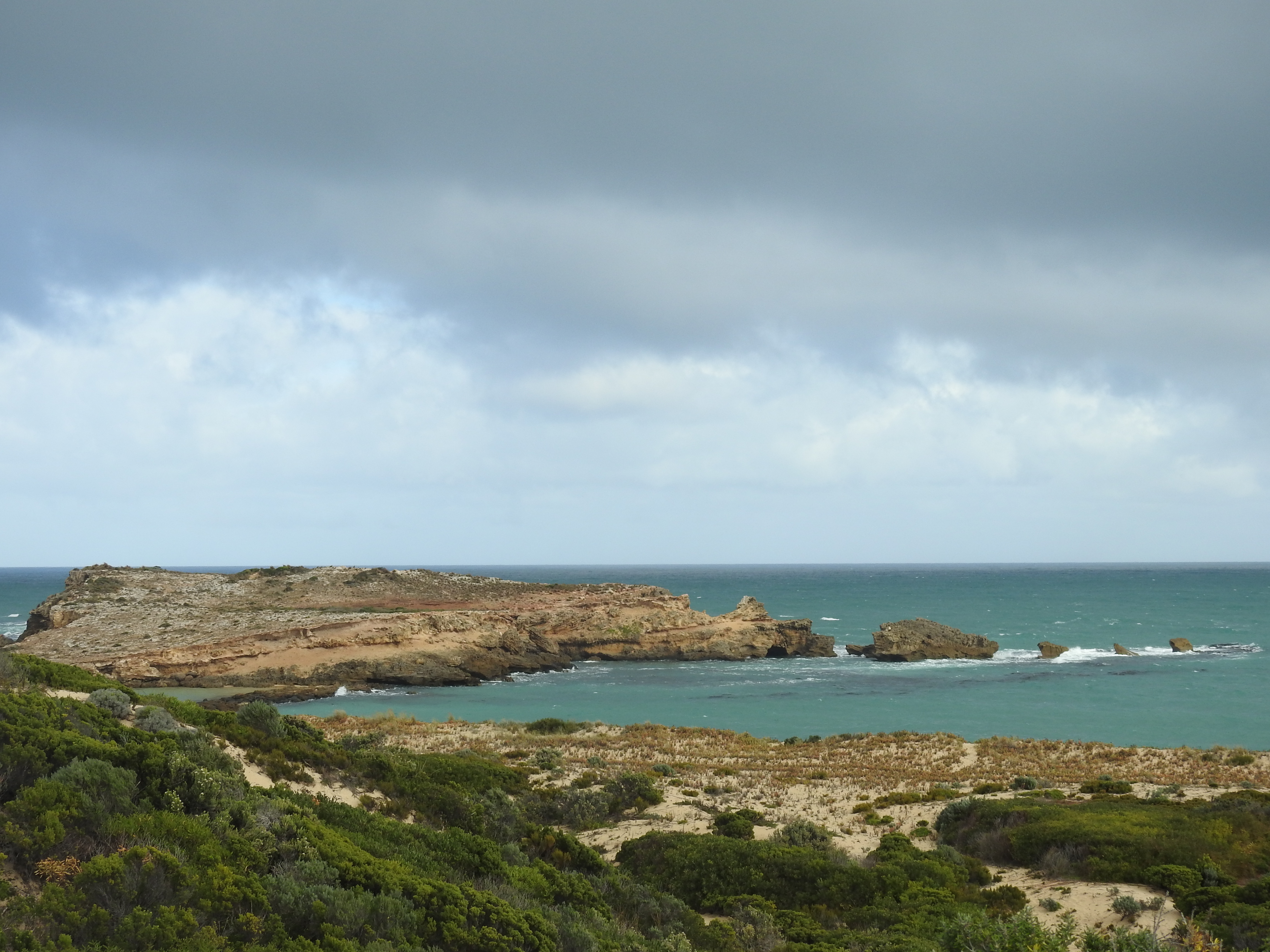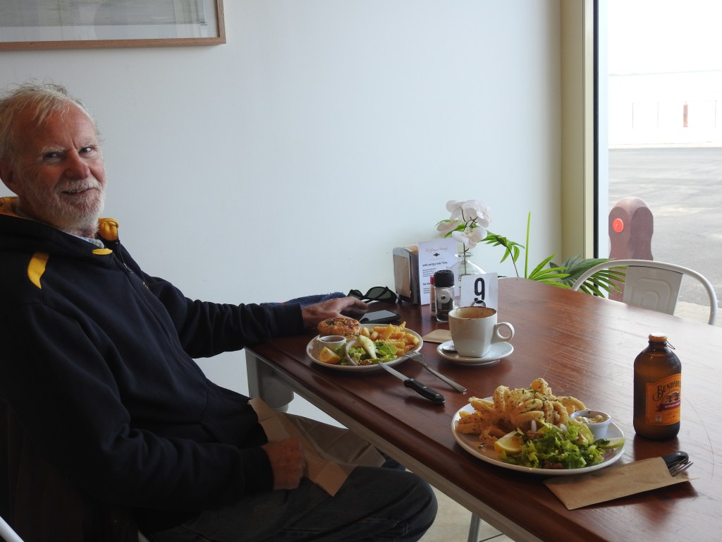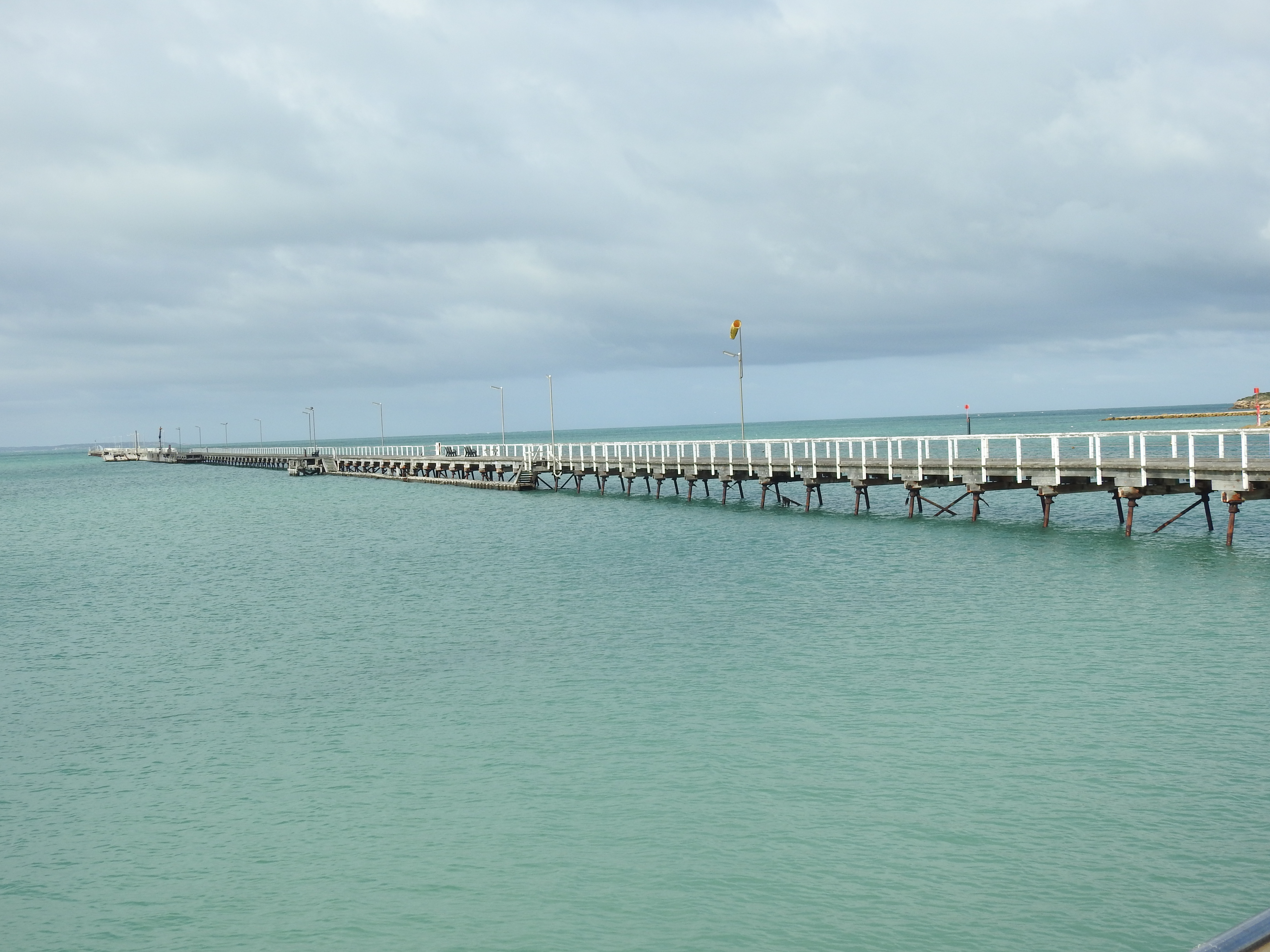 Beachport is a pretty spot, we drove the signposted Bowman scenic drive around town & along the ocean front, it certainly is scenic, absolutely beautiful. We drove up & down hills & pulled over many times to enjoy the rugged coastal views, though the wind was blowing & it was very cold. We stopped at the Beachport jetty for a walk, it is the 2nd longest jetty in South Australia at 772 metres. It was cold & got colder as we walked out & back, strangely enough, we were the only people on the jetty that whole time. Thankfully there is a seafood café at the start of the jetty & we got out of the cold for a warm drink & hot seafood. I tried a crayfish pie & Tereza had the ever reliable salt & pepper squid, yum. On the way out we admired some of the old stone buildings, very nicely preserved.