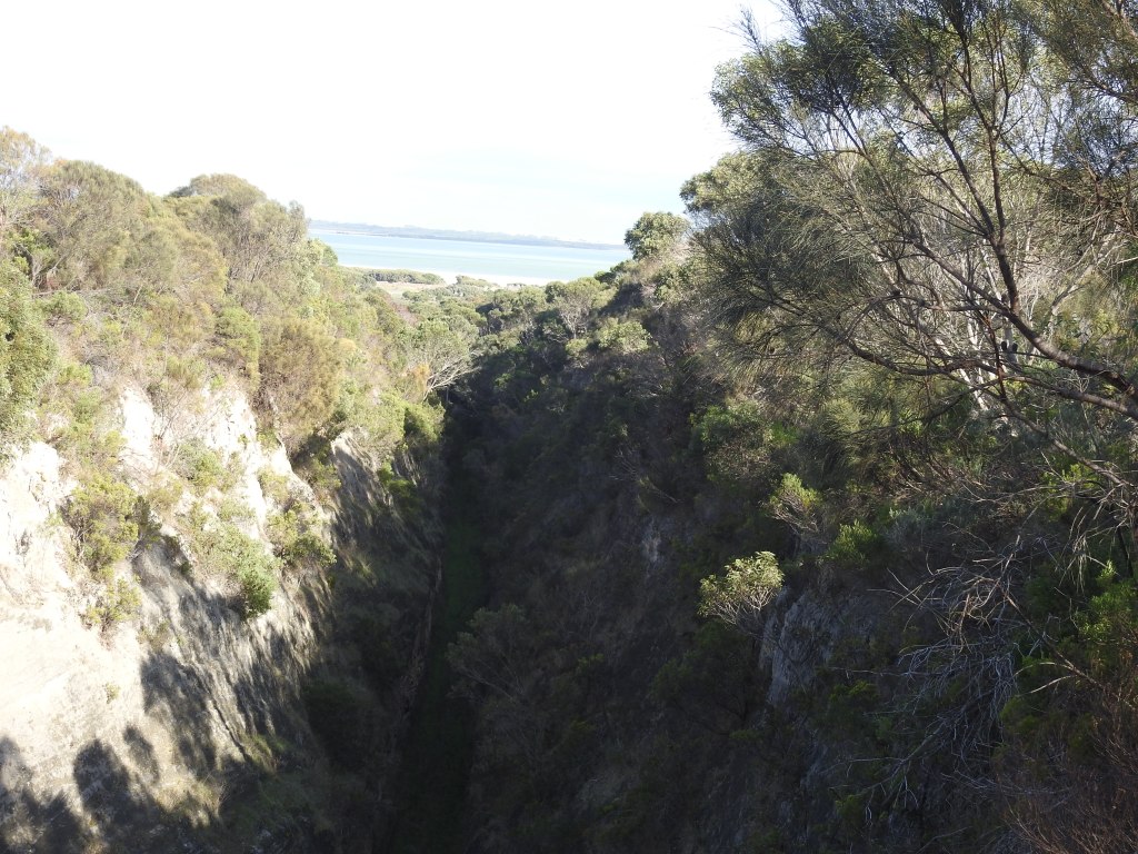 Only a few spots of rain this morning as we packed up camp & drove into Robe again for another look. We stopped at the old Customs House overlooking the small harbour, it is a museum, however, not open today. The Woakwine Cutting was our first stop today, a channel of 28 metre depth & around one kilometre long to drain the Woakwine Swamp that took 3 years to complete. This drains into the very large Lake George that borders Beachport.