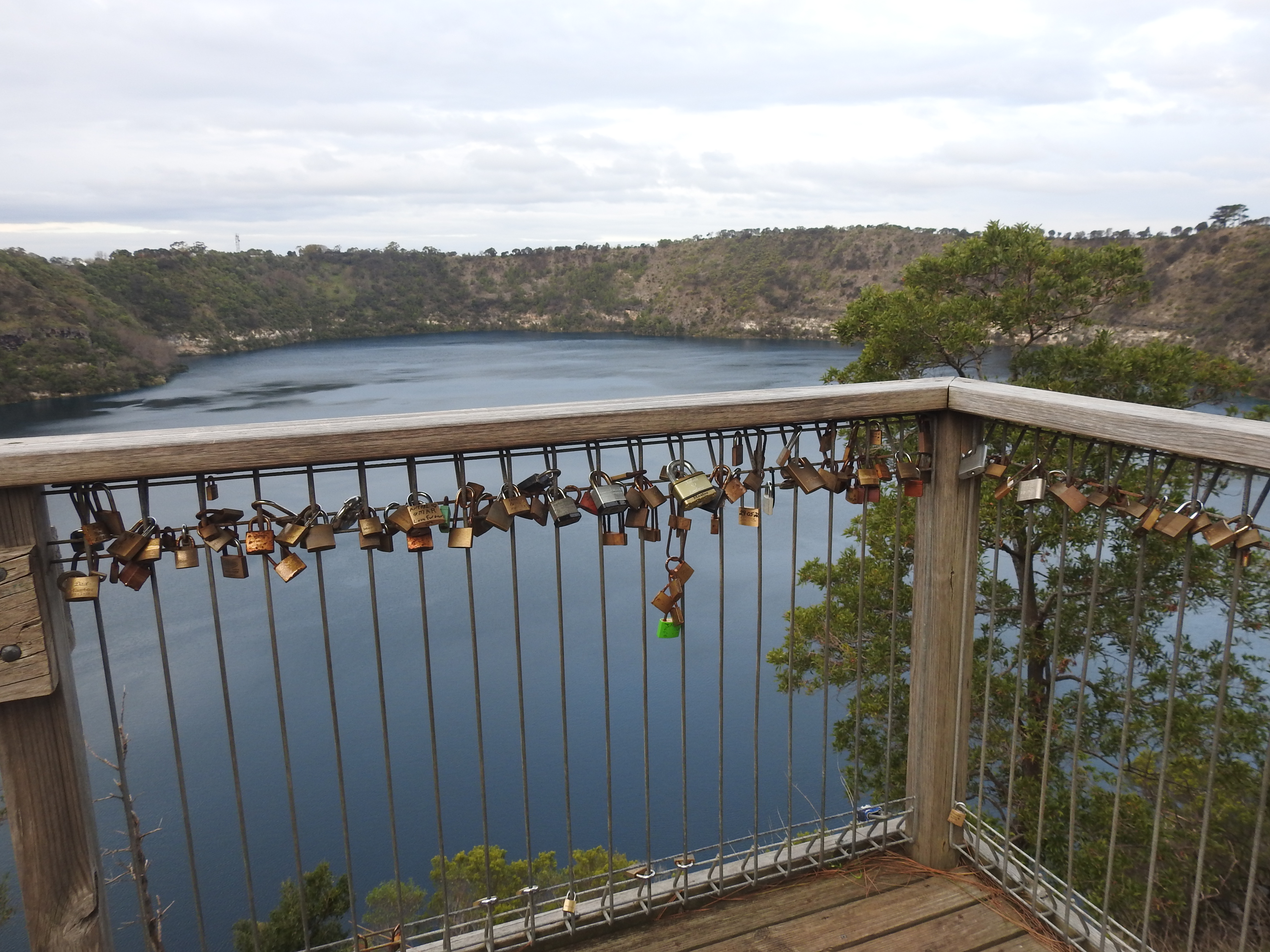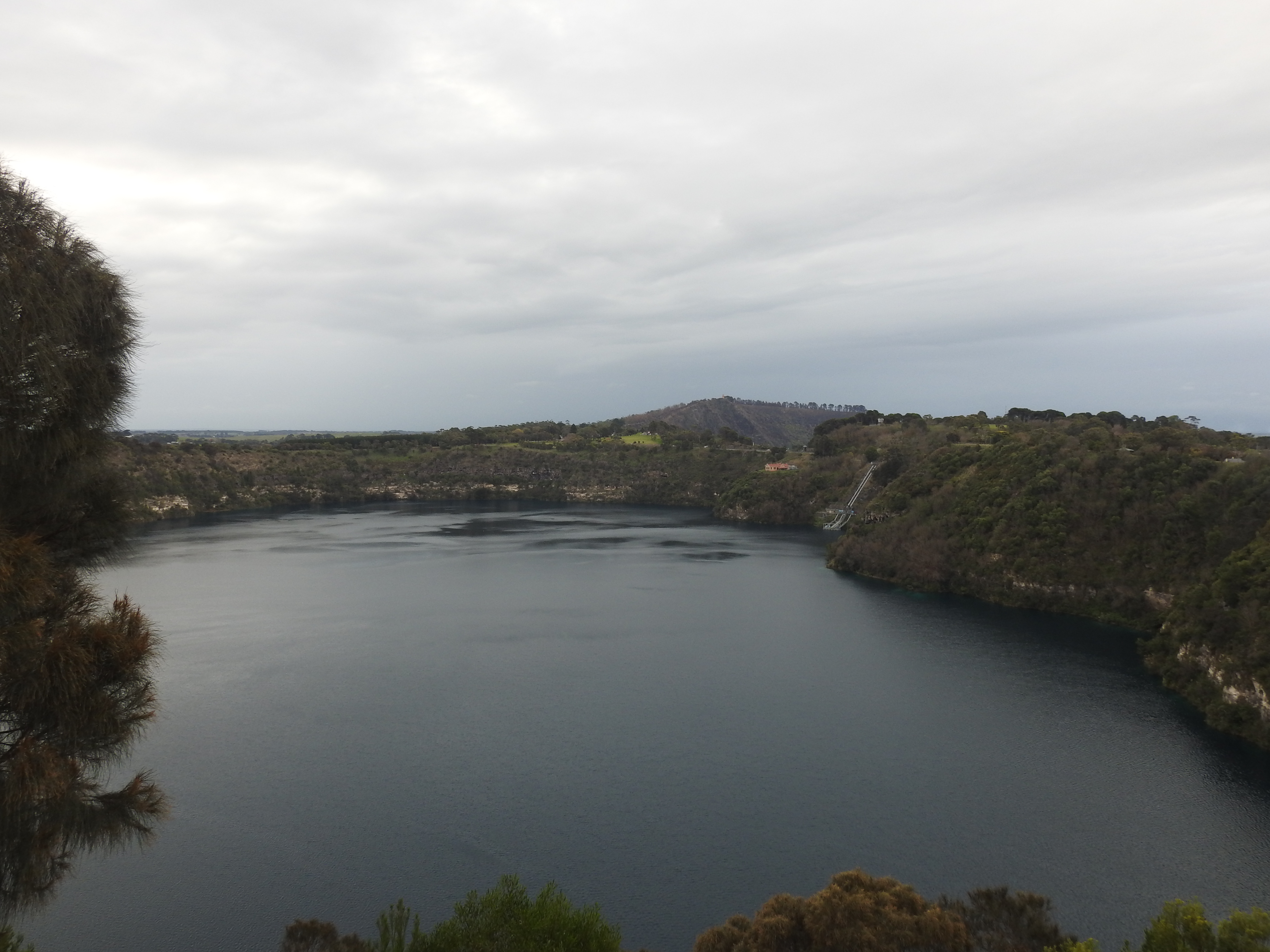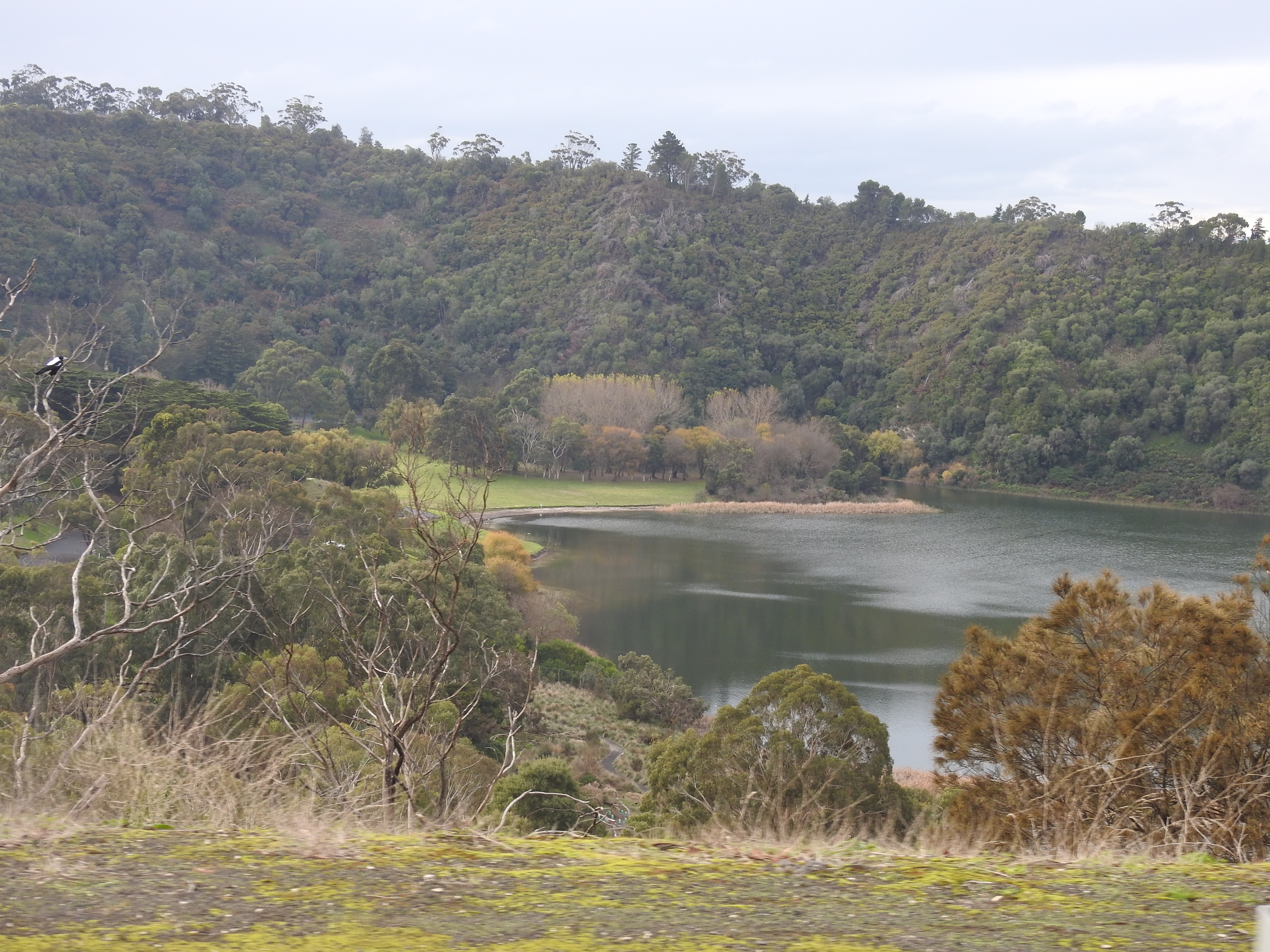 On the way to Mount Gambier we pass the Kimberley Clark paper mill, a very large factory in the middle of nowhere. Shortly after we started passing the pine plantations that provide the timber for the paper, the plantations stretch endlessly on either side of the road. We drive into town & find the Blue Lake with the van park next to it on the crater rim. The Blue Lake is a volcanic lake that sits in the crater of a dormant volcano & is a very pretty blue colour. We set up camp. We wanted to go for a walk around the lake but was so cold that we decided to drive around the cluster of volcanic lakes, it is very pretty & very well maintained. It is difficult to imagine that as little as 4,500 years ago this area was bubbling with molten lava.