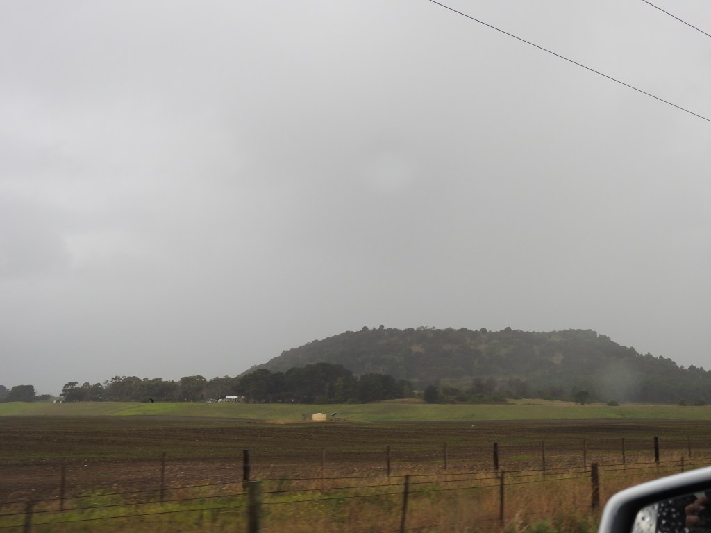 Mount Gambier really stands out from the surrounding plains as we drive back to camp in the rain. Cheese, bickies & wine end another great day.