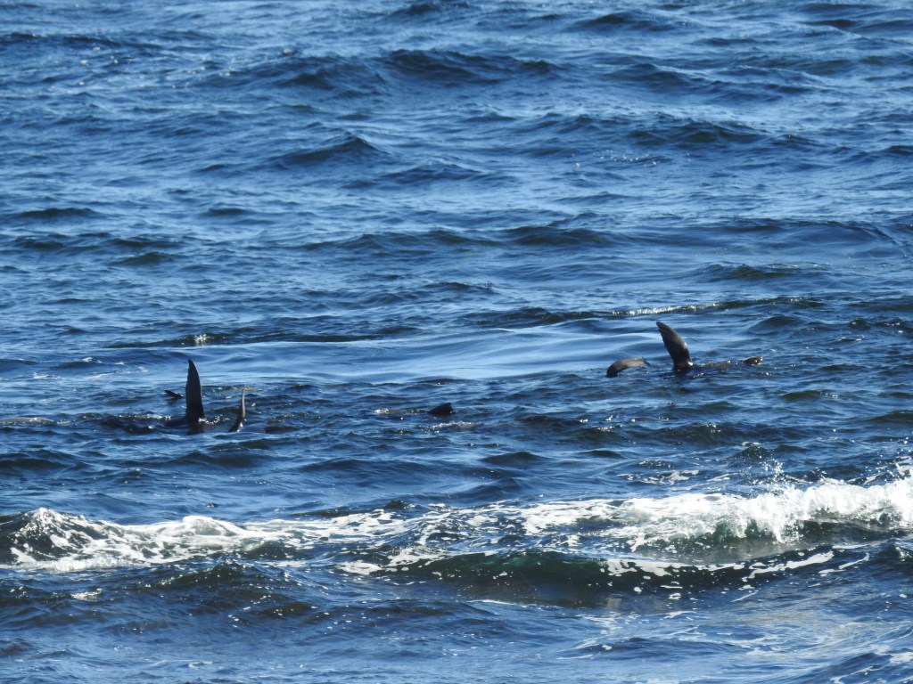 We then walk along the track to Cathedral Rocks to view the seal colony that live there, the seals are cavorting in the water just out past the Cathedral Rocks. It is a brisk walk back & the next bus has just arrived & waits for us to take us on to Marjorie Bay where we spot another Osprey nest, this one with a chick in it that we can see. We walk along the Narrow Neck Road to Rock Bay bus stop & catch the next bus that comes past.