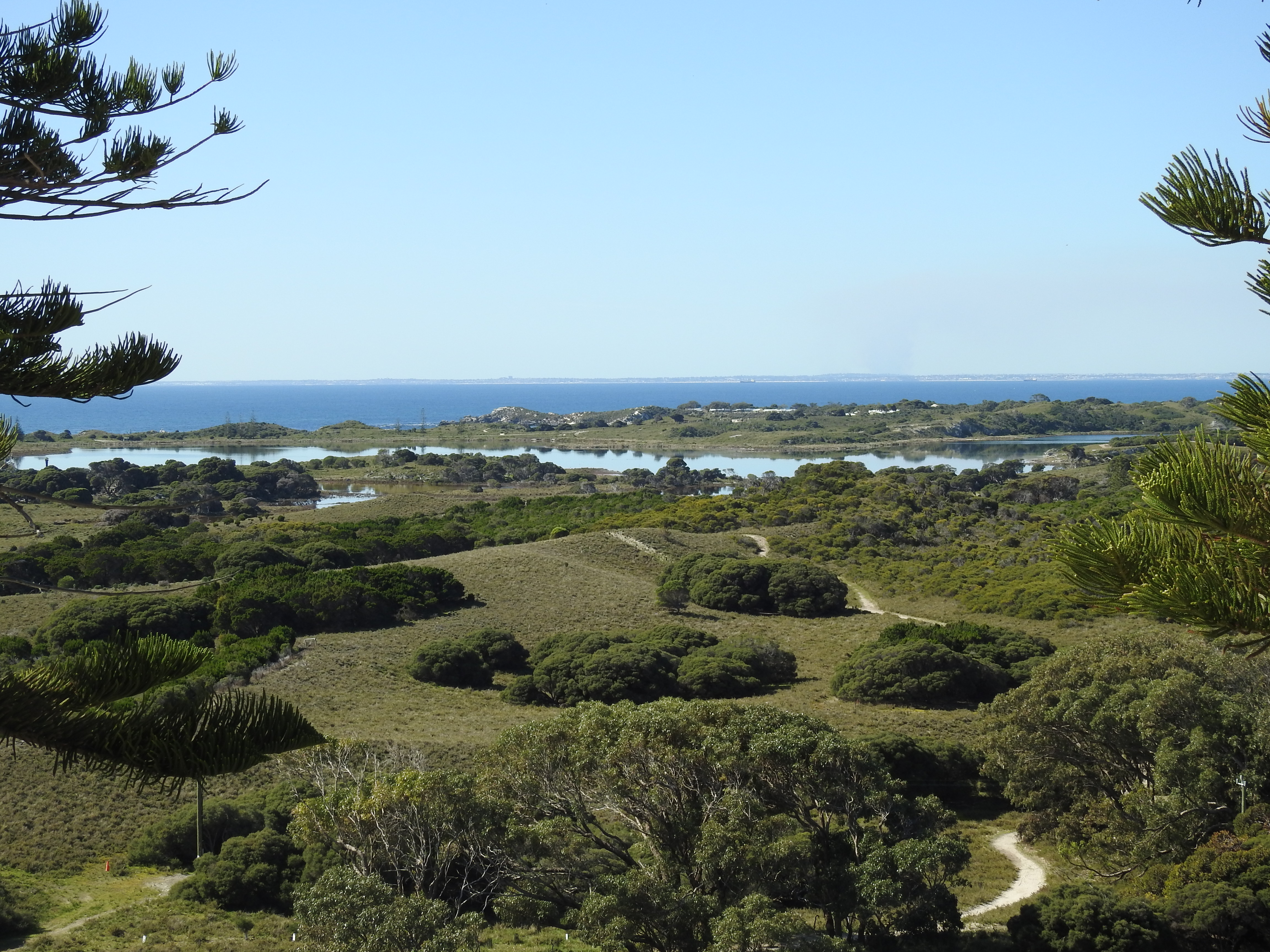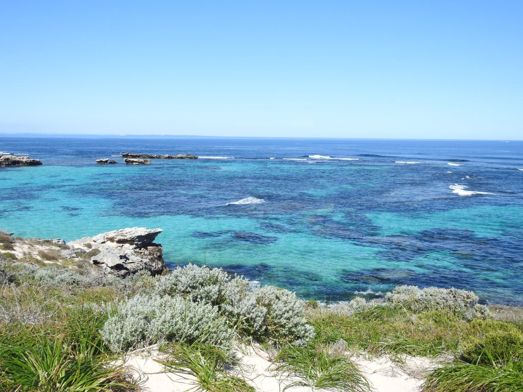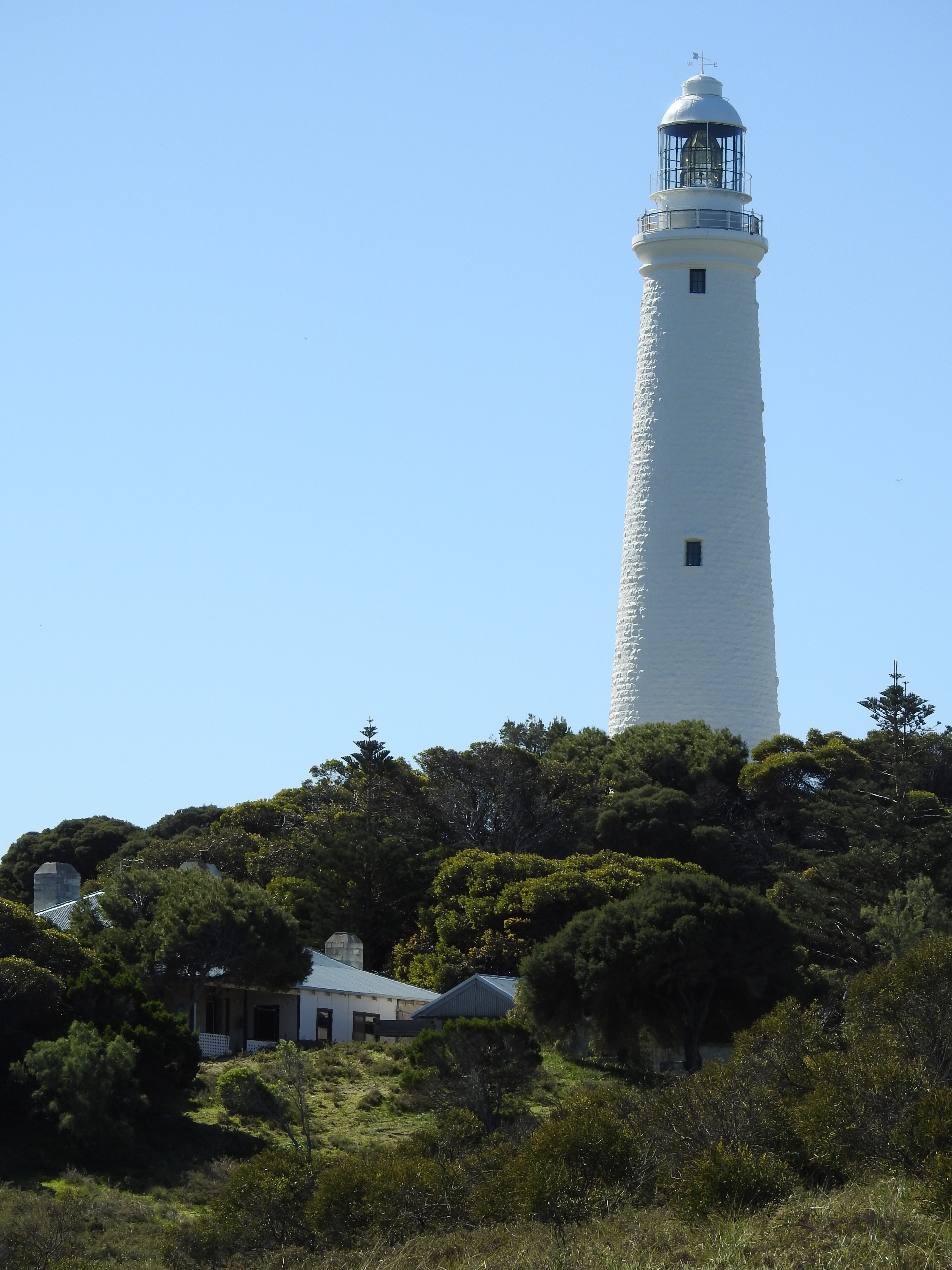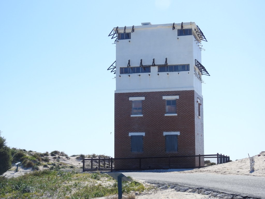 Onto the bus again & stop next at the lighthouse road, the walk up is steep but the views are worthwhile, from one end of the island to the other & across to Perth. Besides the imposing white lighthouse there are a number of other large buildings on the hill, relics from the defence systems from the Second World War. The walk down is a little easier & we have some time to catch our breath as we wait for the bus. There are people on bicycles peddling past on a regular basis, I am glad we are catching the bus, cycling looks hard work.
