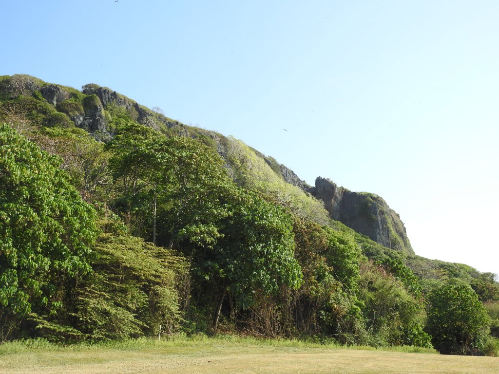 Another early start with breakfast again at the Golden Bosun where we chat with a few different travellers. A Nankeen Kestrel is sitting on the radio tower across the road also having breakfast. Our first stop with our guide, David James, is at the Golf Course, it looks beautiful with coconut palms lining the course & looking out over the ocean. Dave walks us around the course to the various nests of Frigate birds & red-footed boobys, there are chicks at all various stages of growth & there are lots of sea birds flying overhead. Dave explains the geology of the island, it started out as an active volcano & over 80 million years the island has sunk below & re-emerged from the ocean with coral growing on top that has been compacted to limestone, some as deep as 250 metres. The various cliff terraces indicate heights of the sea level at various times.