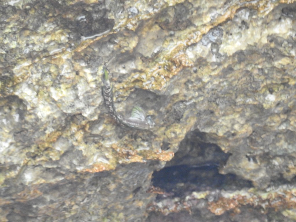 The Mar Chor Nui Nui Temple is the next stop on the agenda, with a walk down a track to some blowholes, with one working nicely in the gentle swells gushing air & water out. The larger blowhole next to it has some fish clinging to the rock cliff with a mouth sucker, they apparently eat the algae on the damp rock. They are hard to spot being well camouflaged & about 10 cm long, but there are few of them clinging on & wriggling around to change location. On the rugged rocks nearby we spot a number of Brown Booby nest sites, these bird nests are on the ground, often on the cliffs near the ocean.