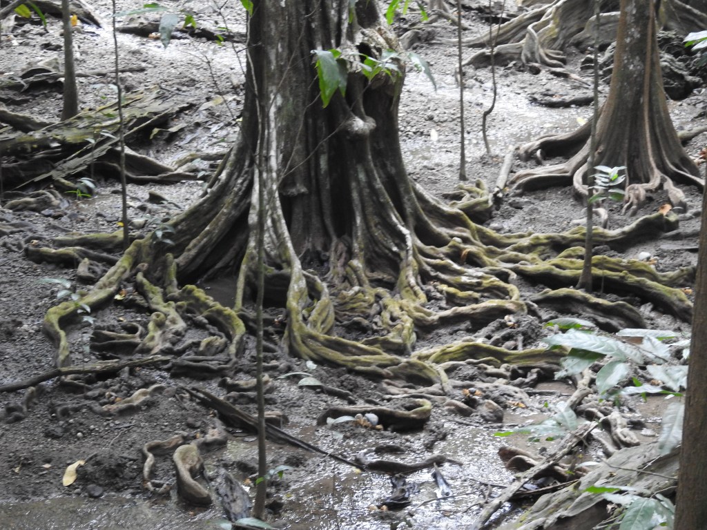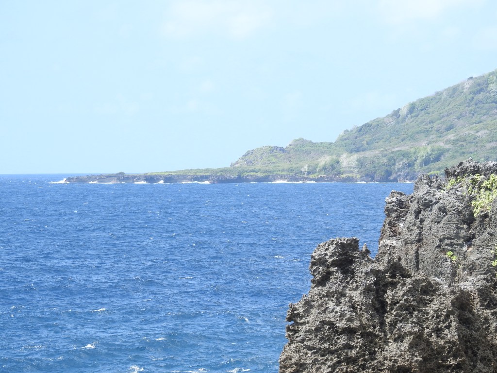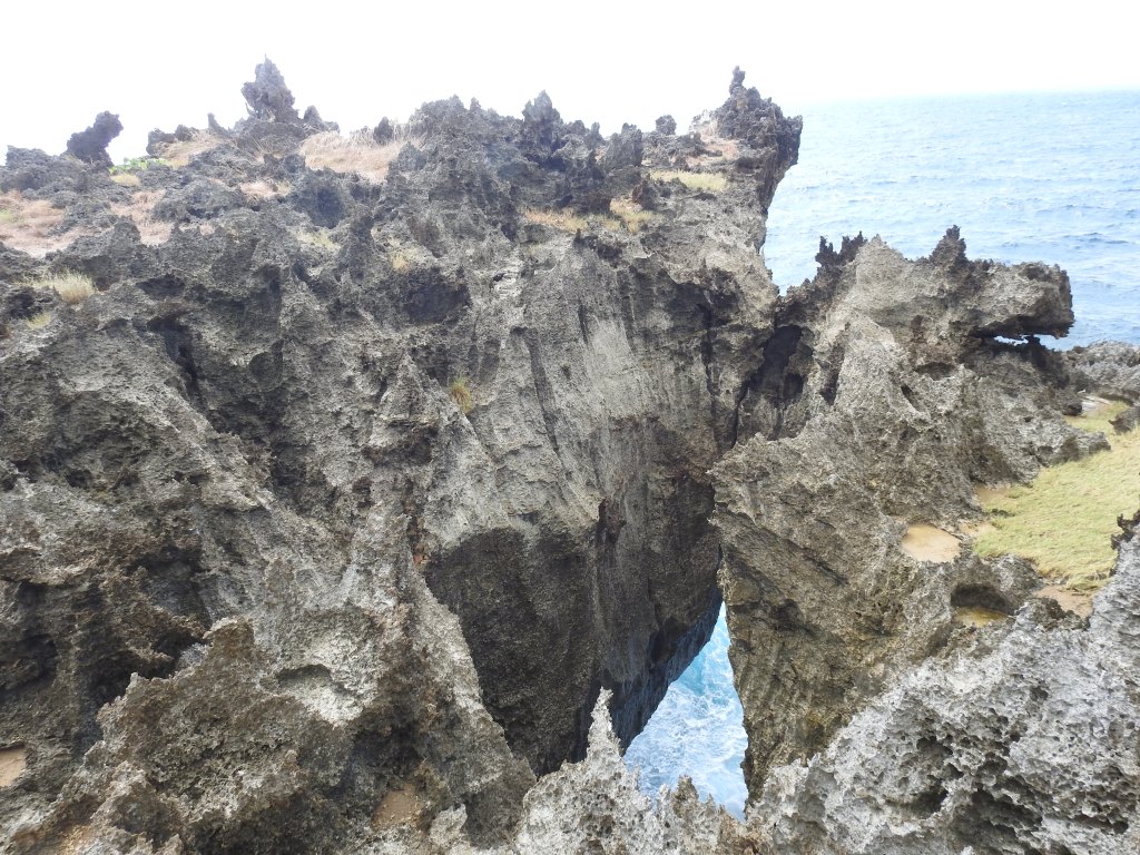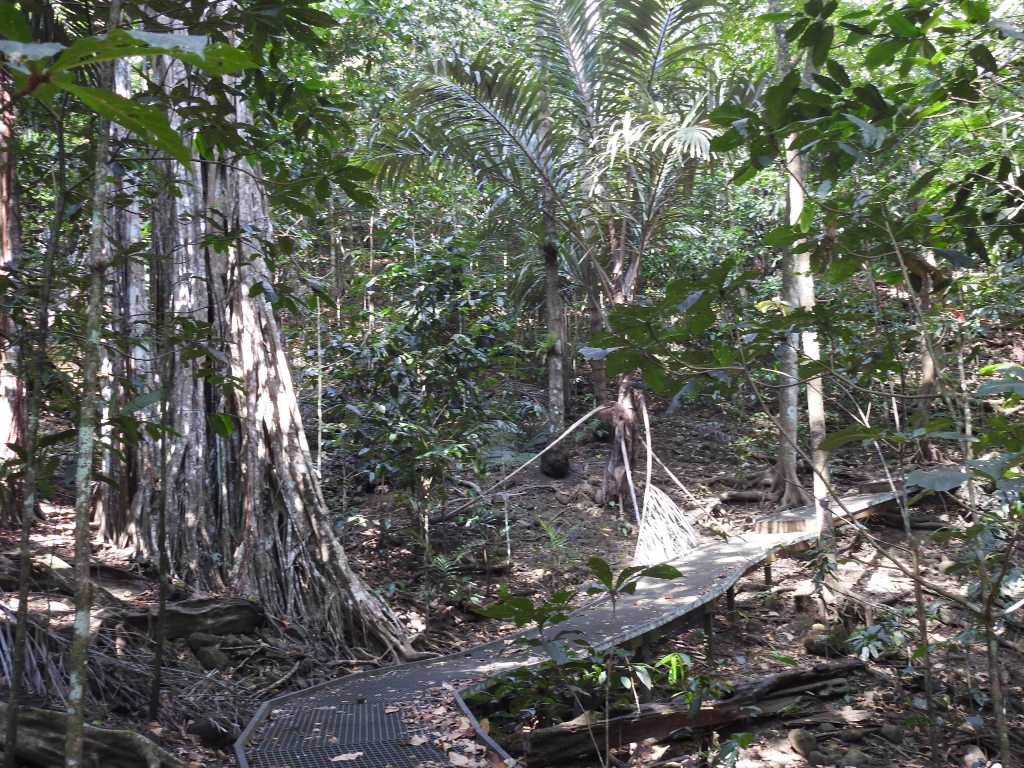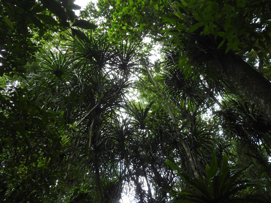 We then drive off down a narrow dirt track in the jungle through a canopy of lush rainforest. In one place we come into a sea of fishbone ferns, an old phosphate mine site that has not been rehabilitated & the weeds have taken over. There are giant pandanus trees with very long strappy leaves. We drop down off the escarpment down a long steep scree slope with the limestone formations changing as we get to the bottom. The forest vegetation looks amazing. All too soon we break back out onto the main road & stop at the Crab Bridge, designed so that the migrating red crabs can climb up & over the road. The edges of the road have high metal strips that guide the crabs along the roadside then over the bridge.