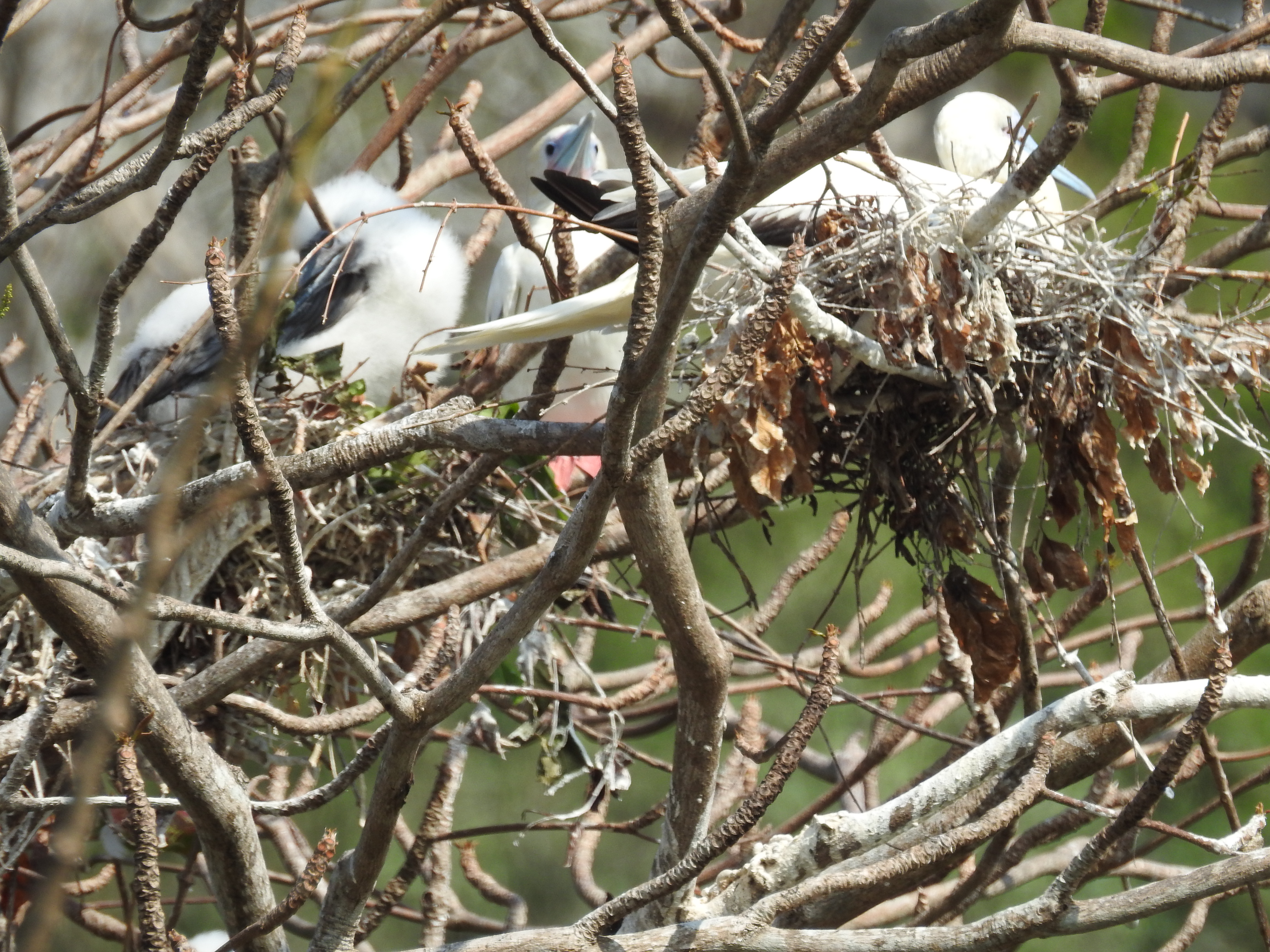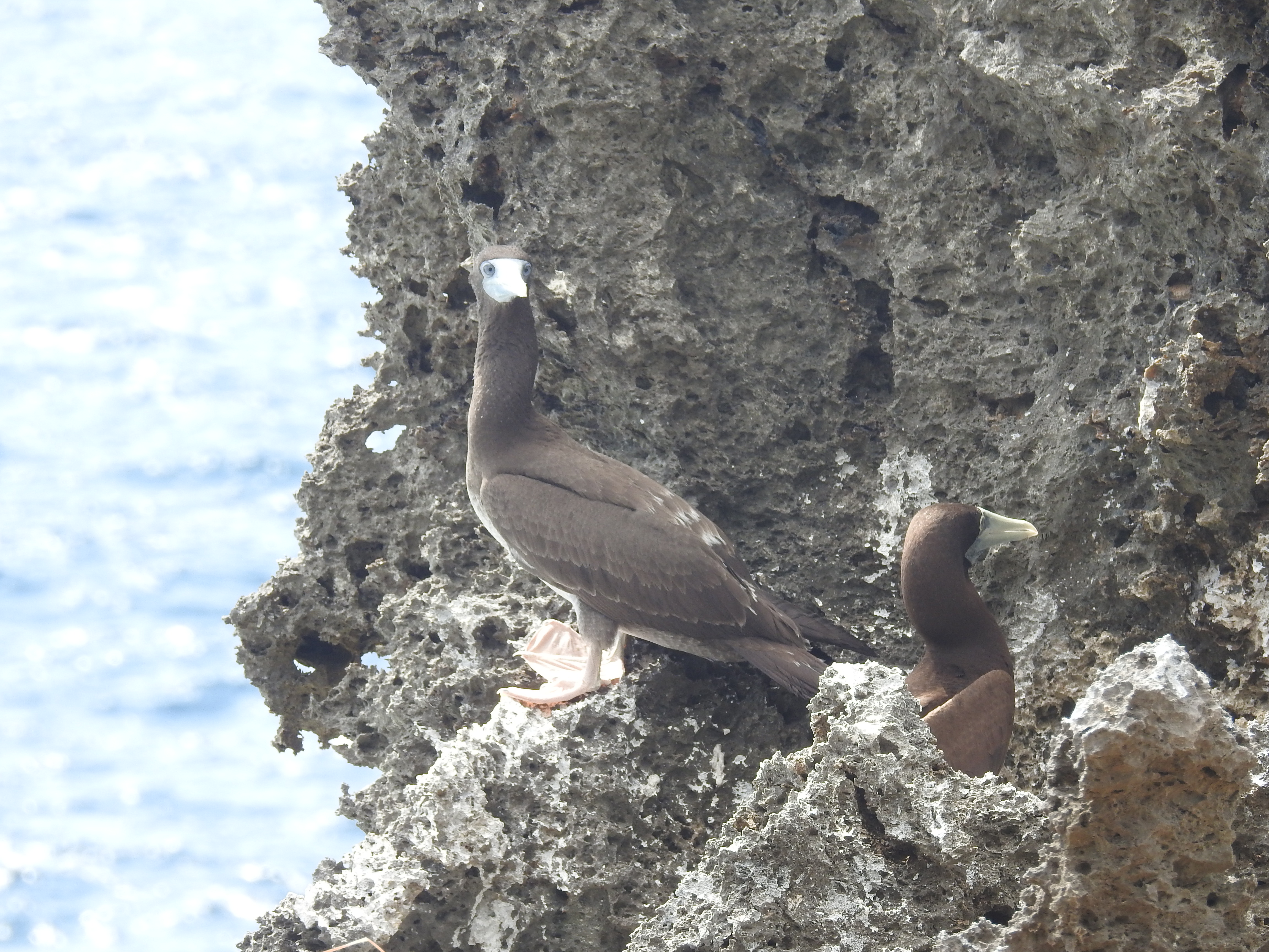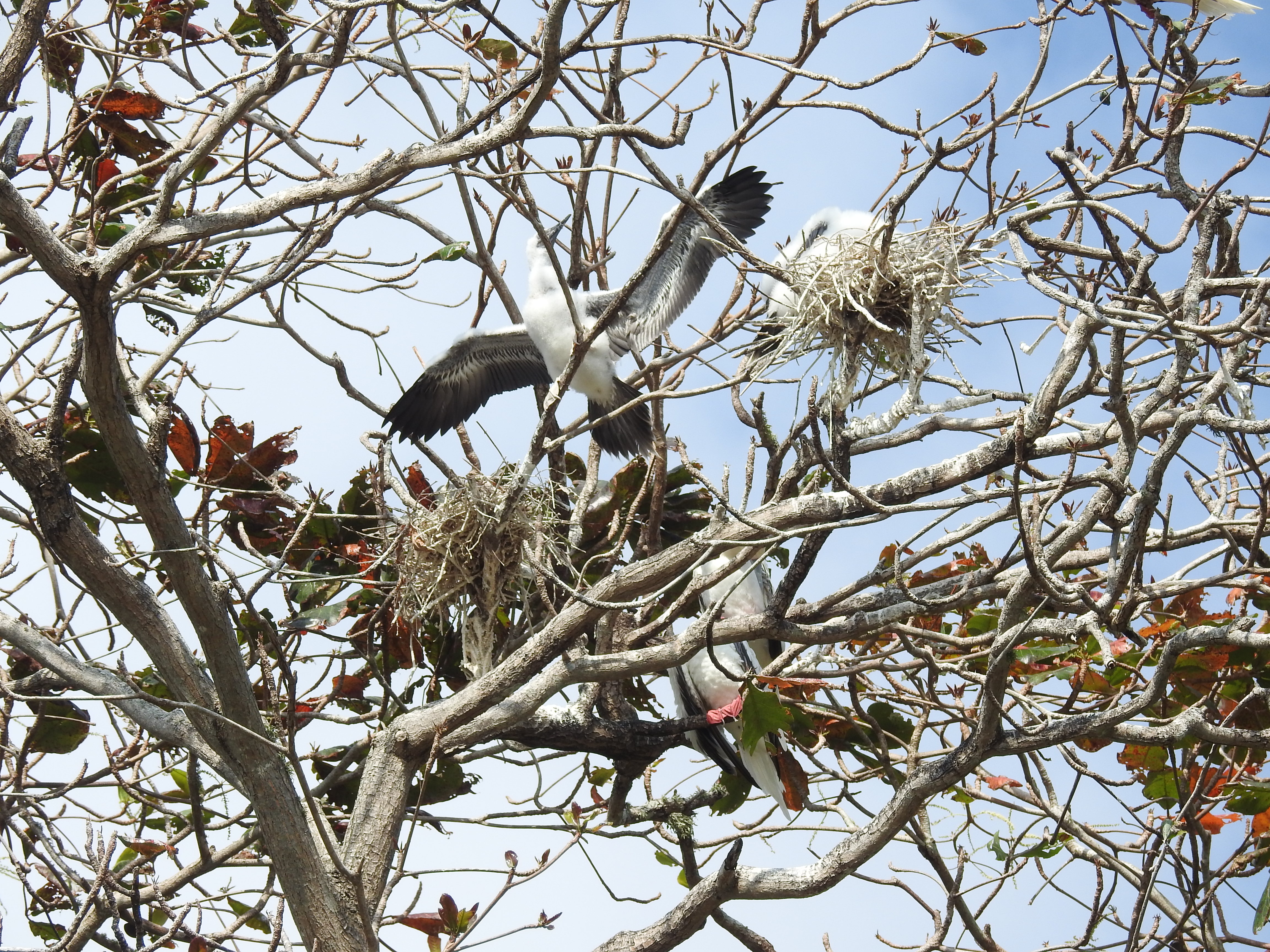 Another early start with breakfast again at the Golden Bosun where we chat with a few different travellers. A Nankeen Kestrel is sitting on the radio tower across the road also having breakfast. Our first stop with our guide, David James, is at the Golf Course, it looks beautiful with coconut palms lining the course & looking out over the ocean. Dave walks us around the course to the various nests of Frigate birds & red-footed boobys, there are chicks at all various stages of growth & there are lots of sea birds flying overhead. Dave explains the geology of the island, it started out as an active volcano & over 80 million years the island has sunk below & re-emerged from the ocean with coral growing on top that has been compacted to limestone, some as deep as 250 metres. The various cliff terraces indicate heights of the sea level at various times.